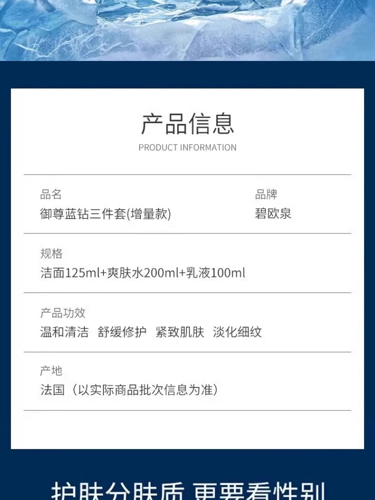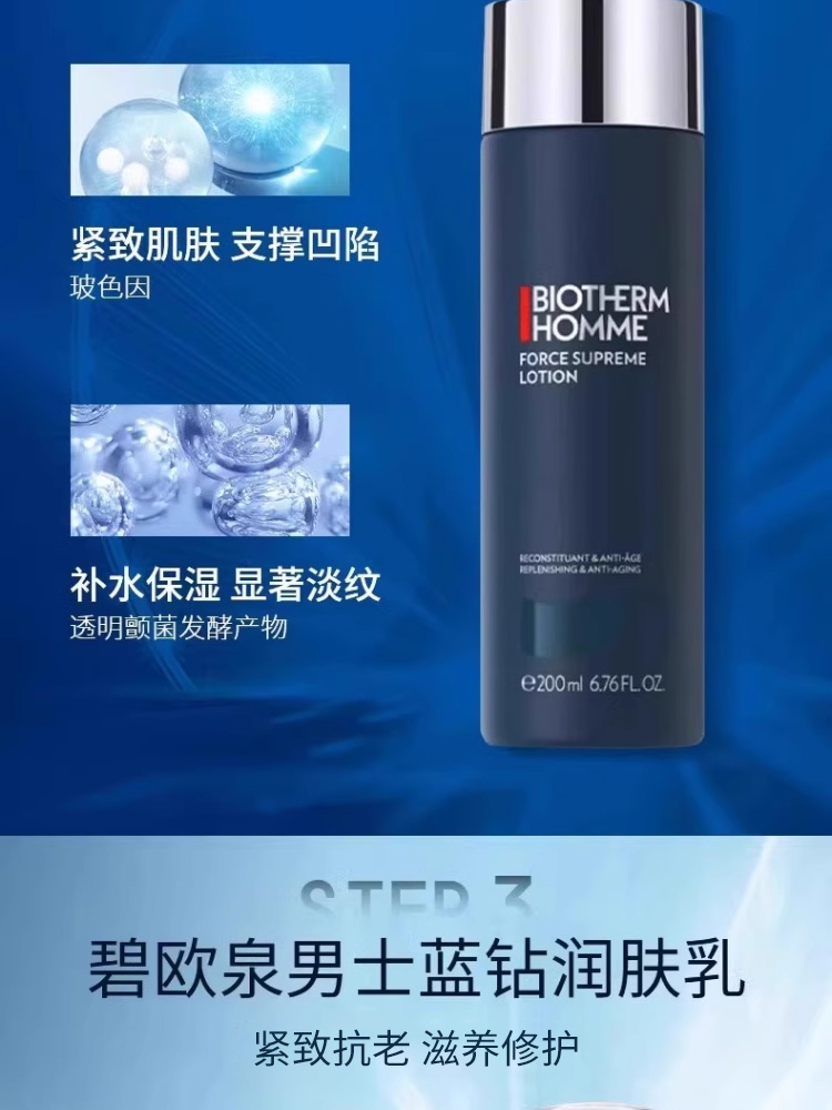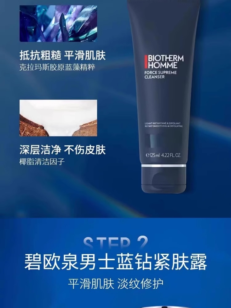 【保税仓】Biotherm Homme 碧欧泉 男士御尊蓝钻三件套(洁面125ml+水200ml+乳100ml)