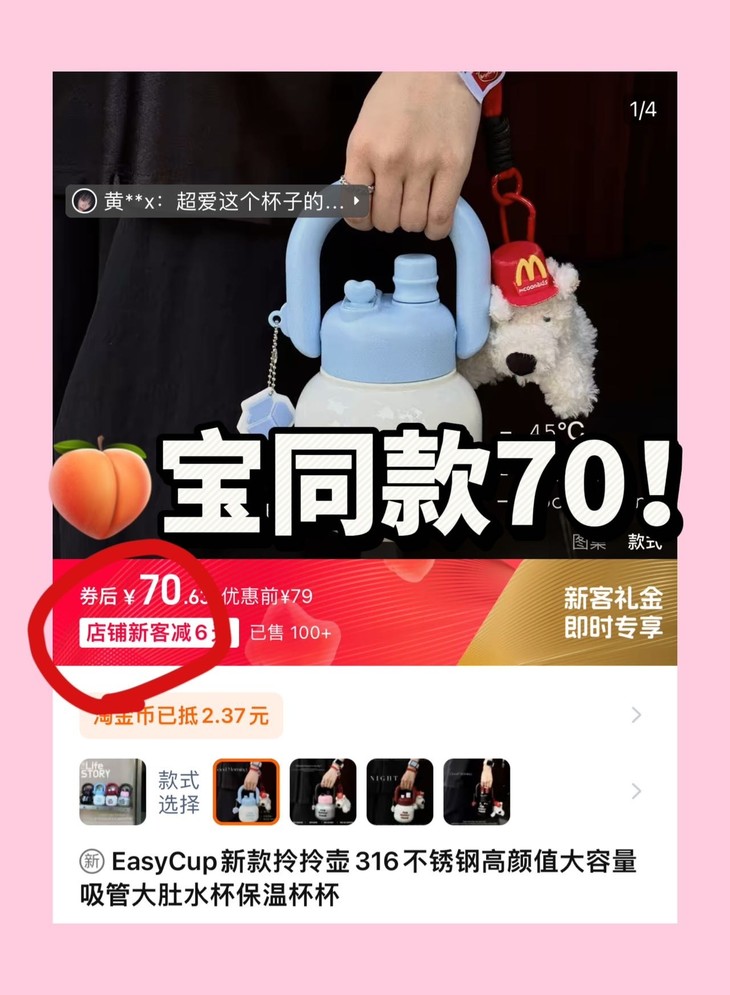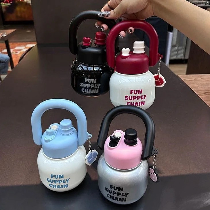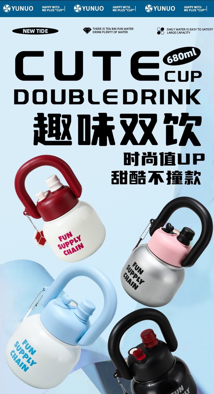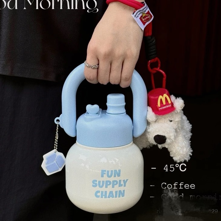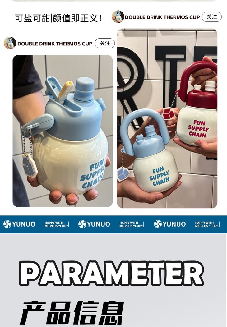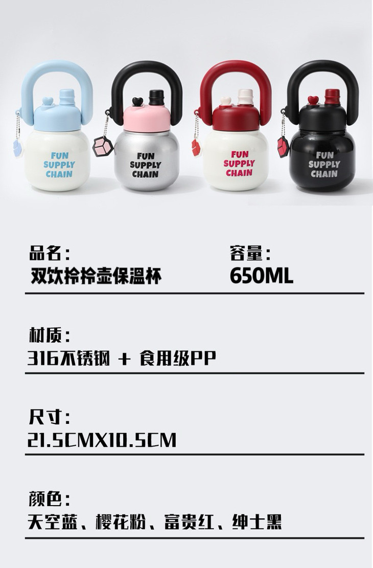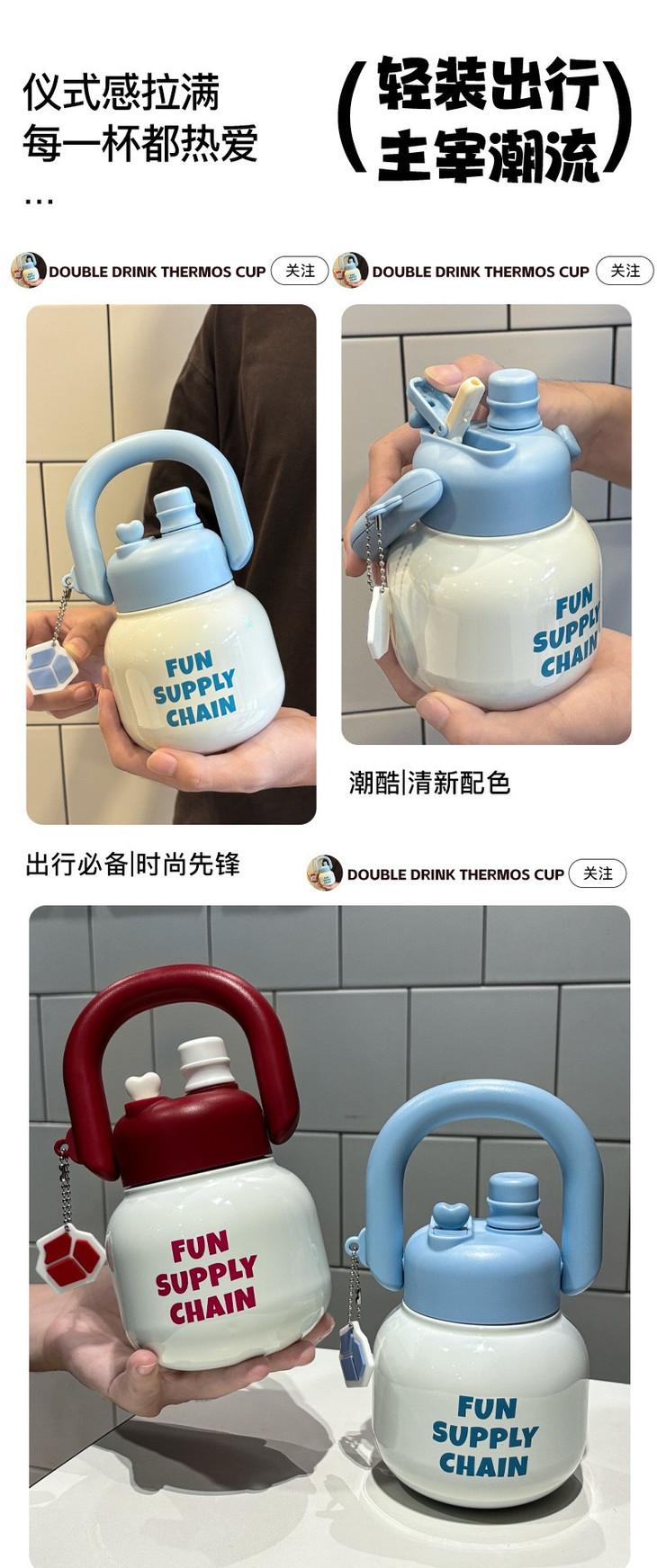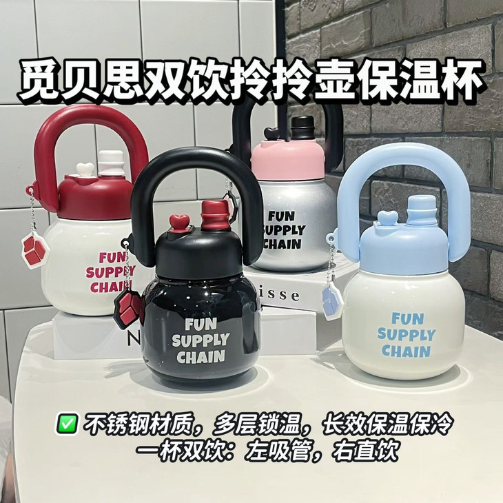 ⏰有了它一天喝两升水‼拎着走的保温杯~可爱到可以当摆件‼觅贝思 双饮拎拎壶保温杯