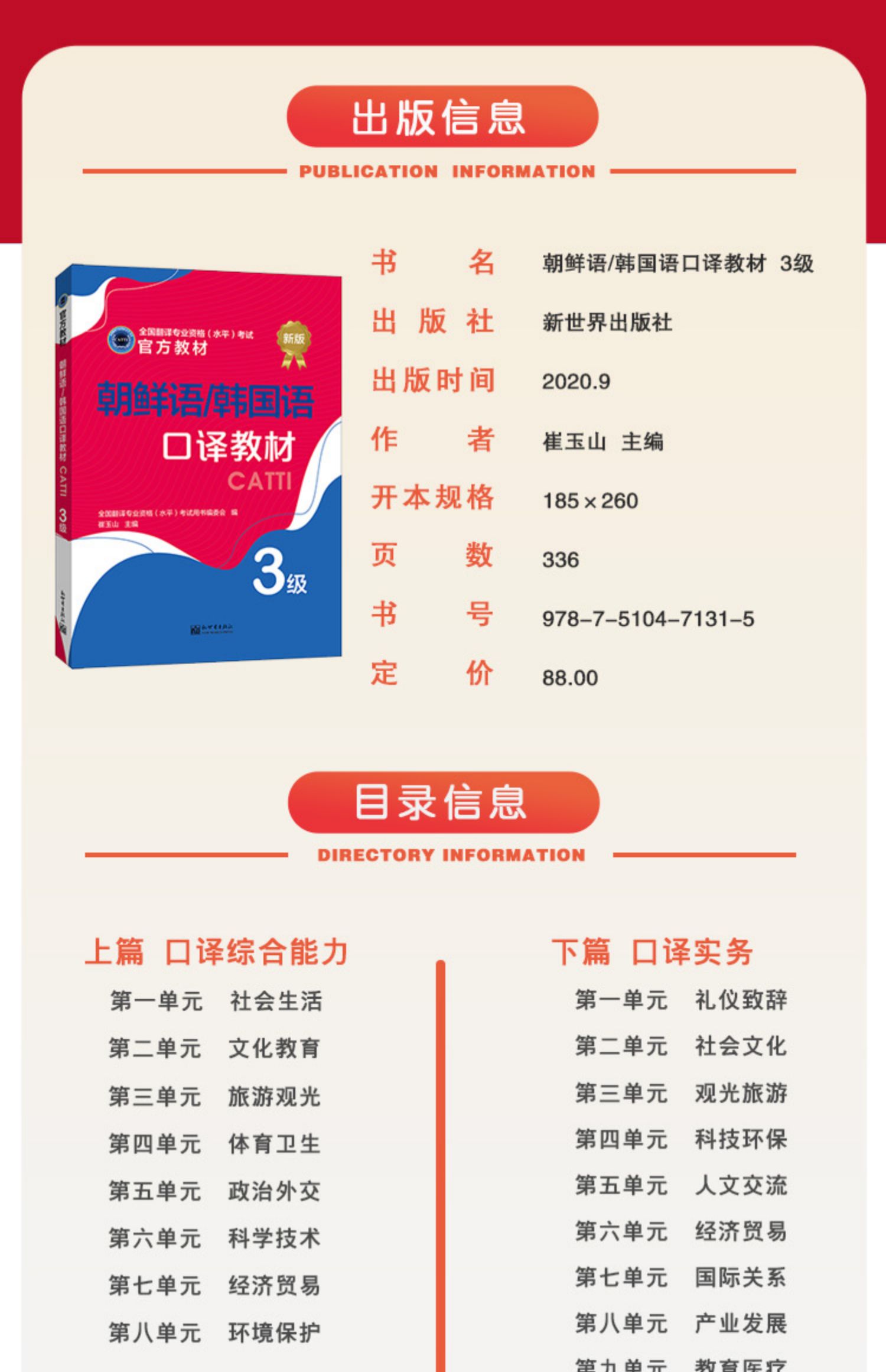 2026朝鲜语/韩国语三级口译教材 3级 CATTI全国翻译专业资格考试书籍
