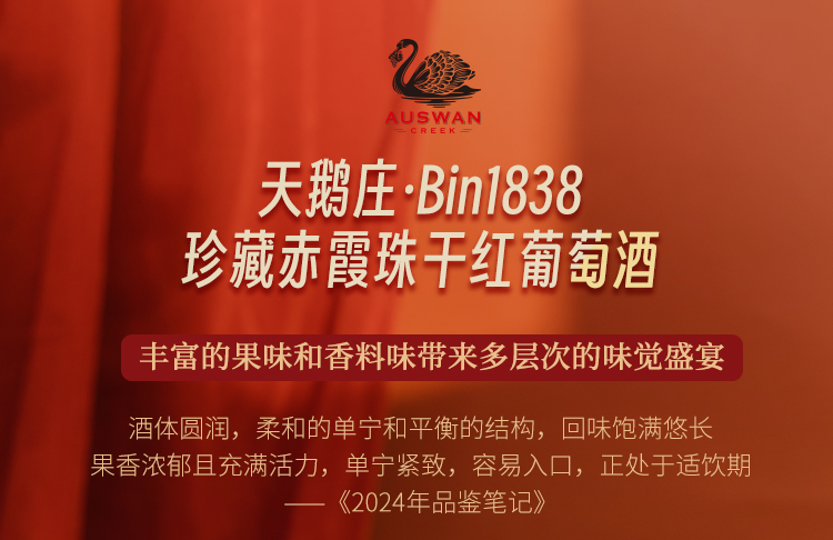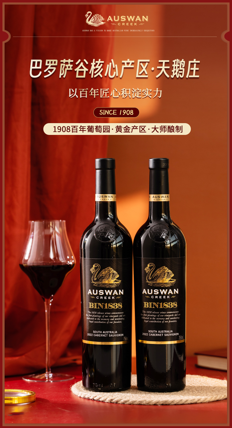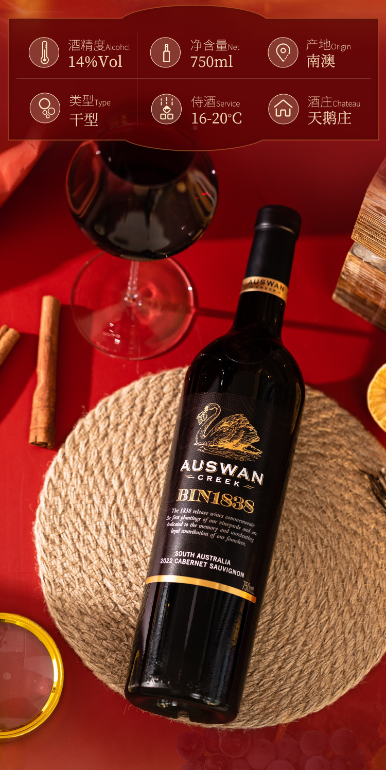 【天鹅酿酒集团旗下天鹅庄出品】天鹅庄·Bin1838珍藏赤霞珠干红葡萄酒 南澳巴罗萨谷产区 14%vol