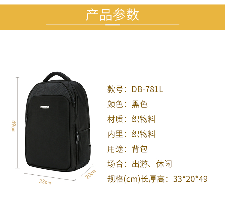 Diplomat外交官DB-781L黑色商务双肩背包商场款