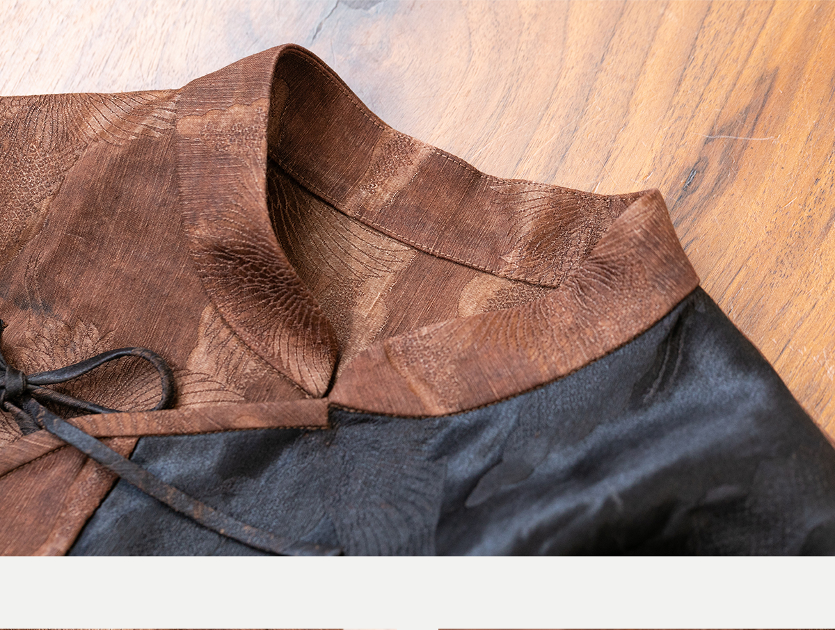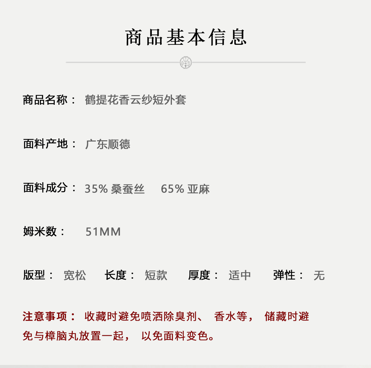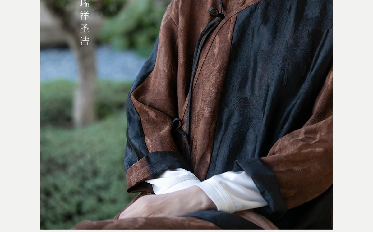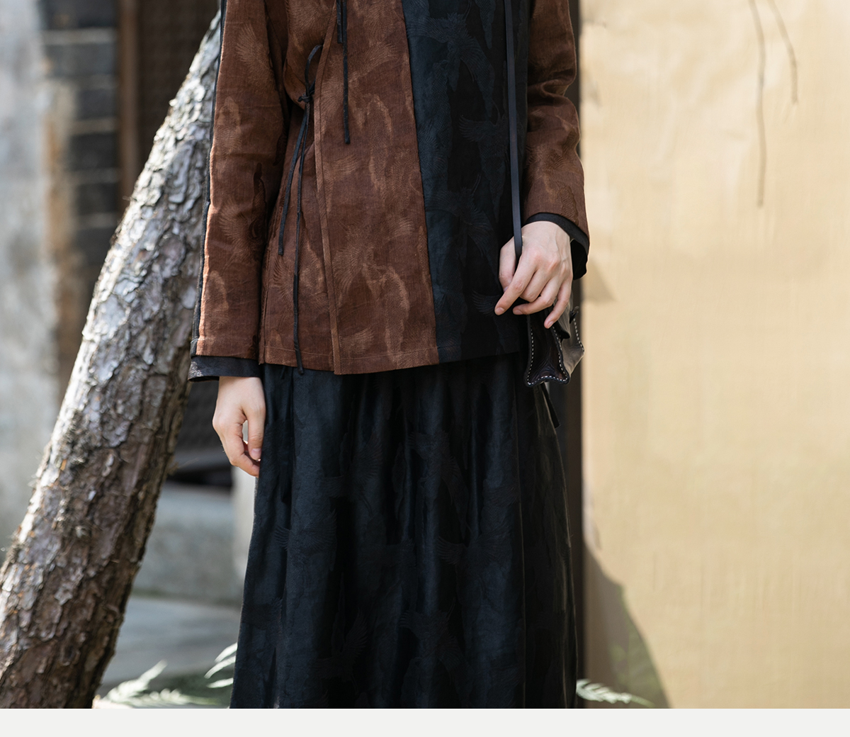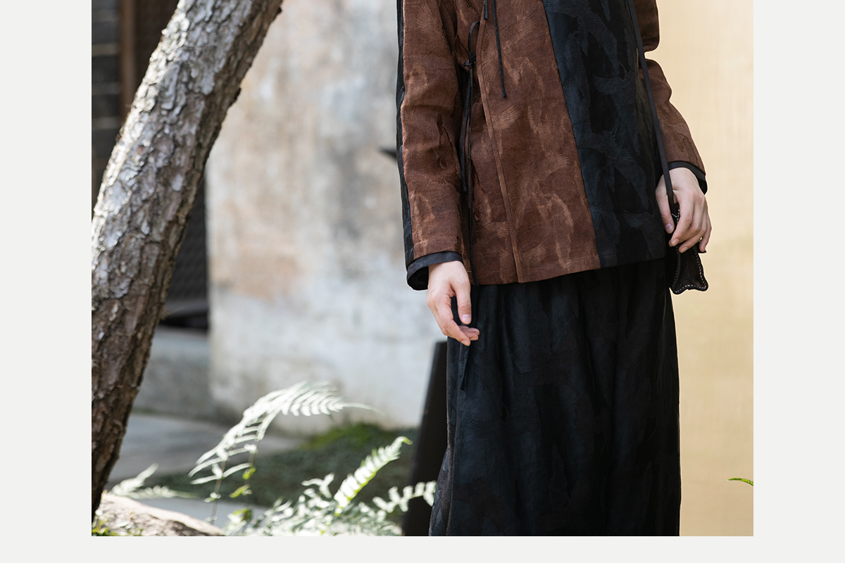 牧衣游原创 重磅鹤提花香云纱短外套拼接高端禅意复古开衫 木兰诗