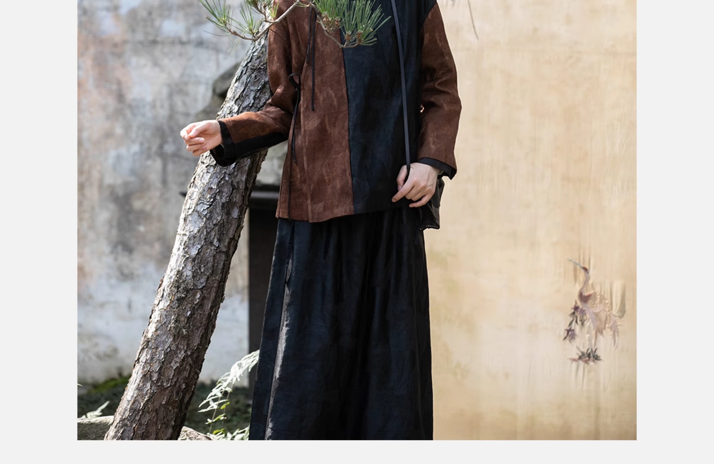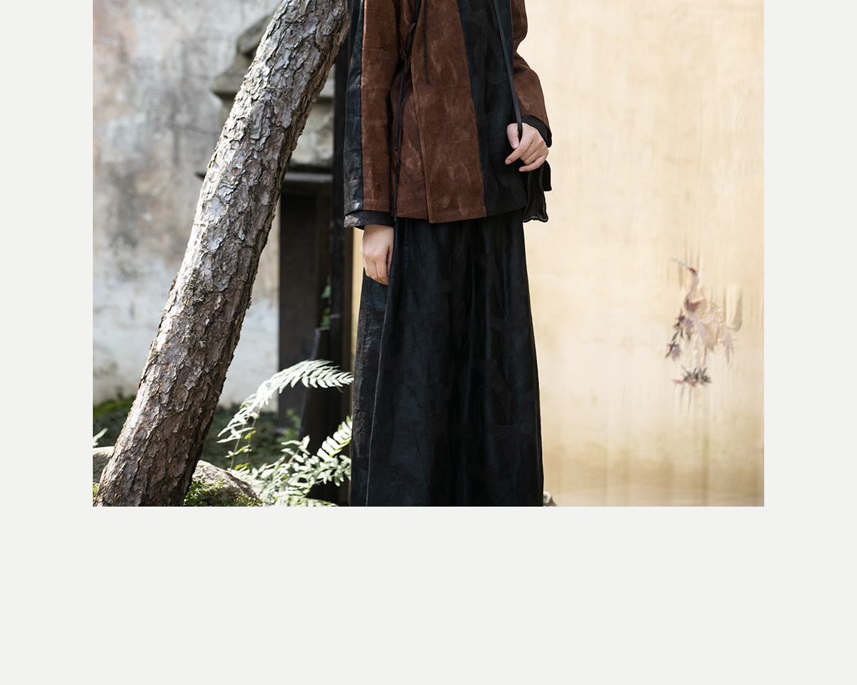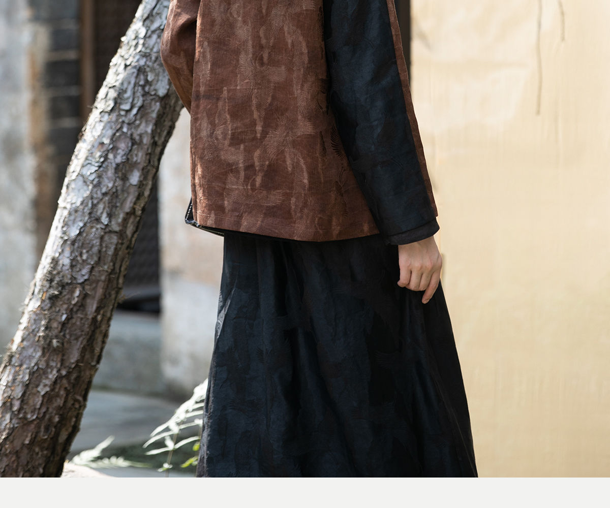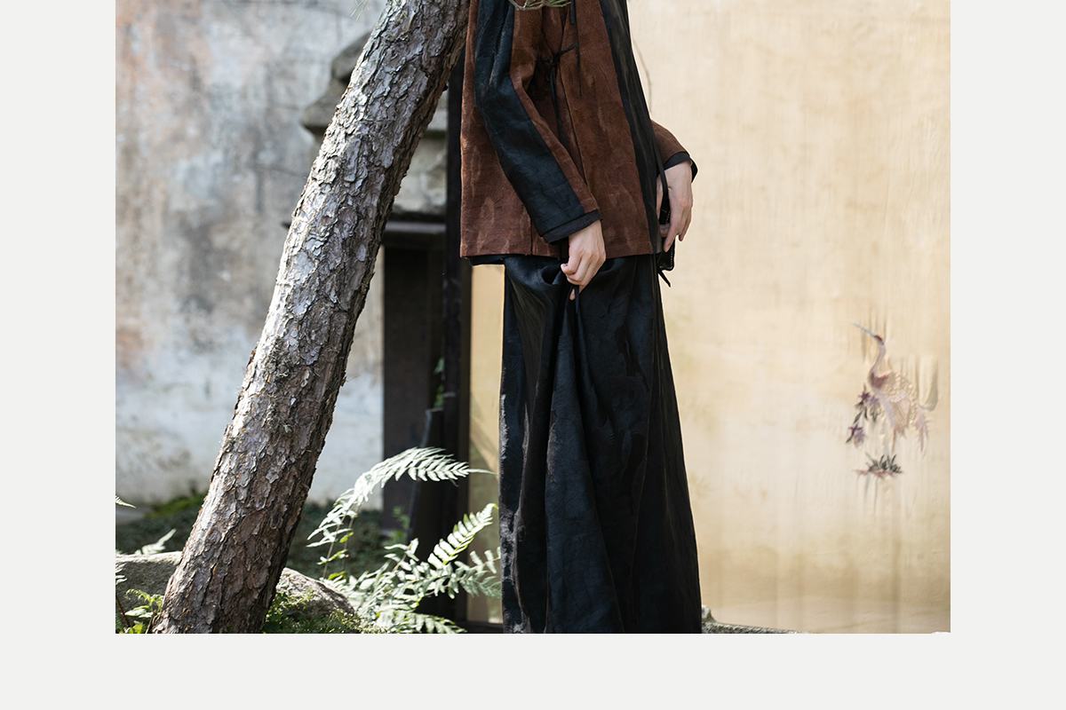 牧衣游原创 重磅鹤提花香云纱短外套拼接高端禅意复古开衫 木兰诗