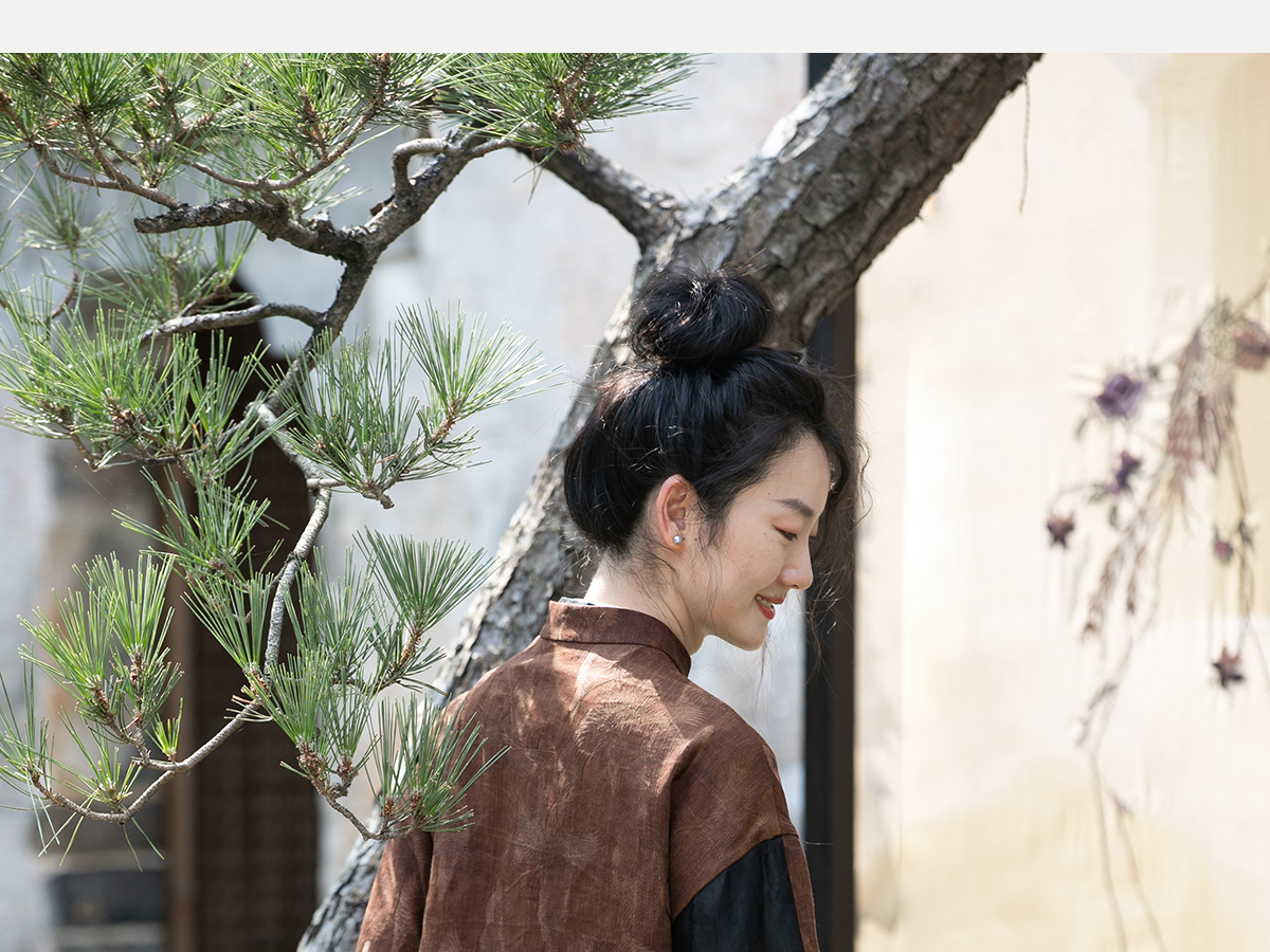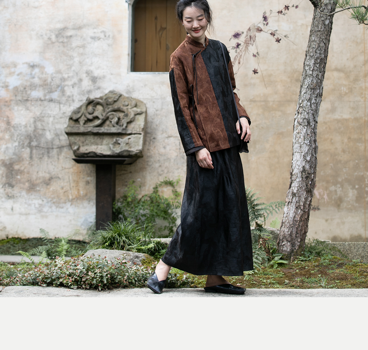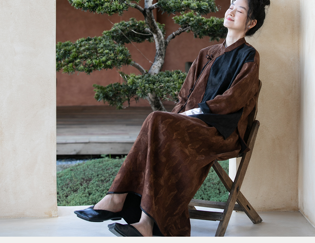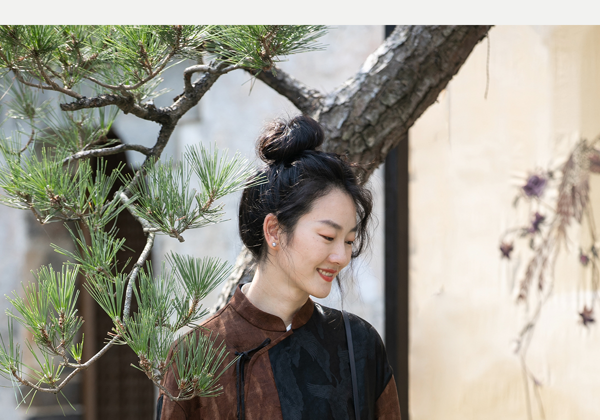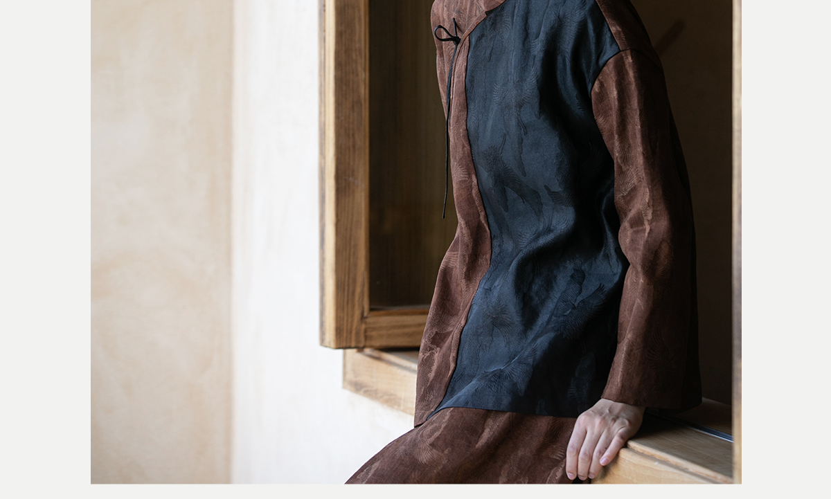 牧衣游原创 重磅鹤提花香云纱短外套拼接高端禅意复古开衫 木兰诗