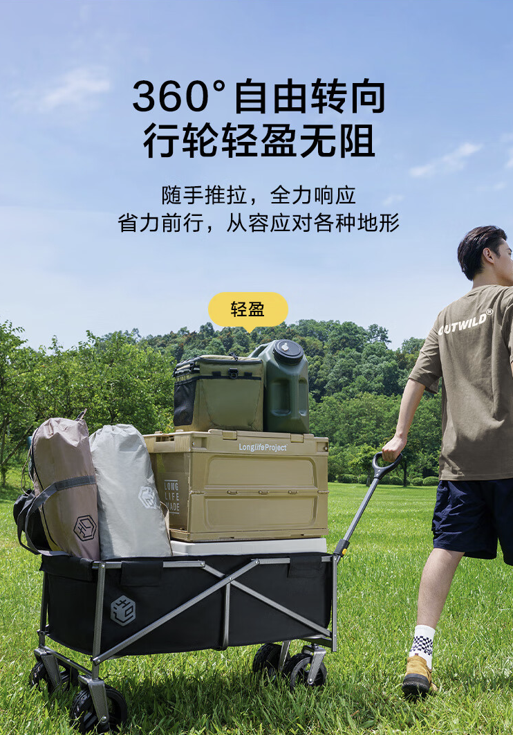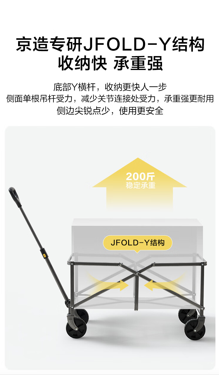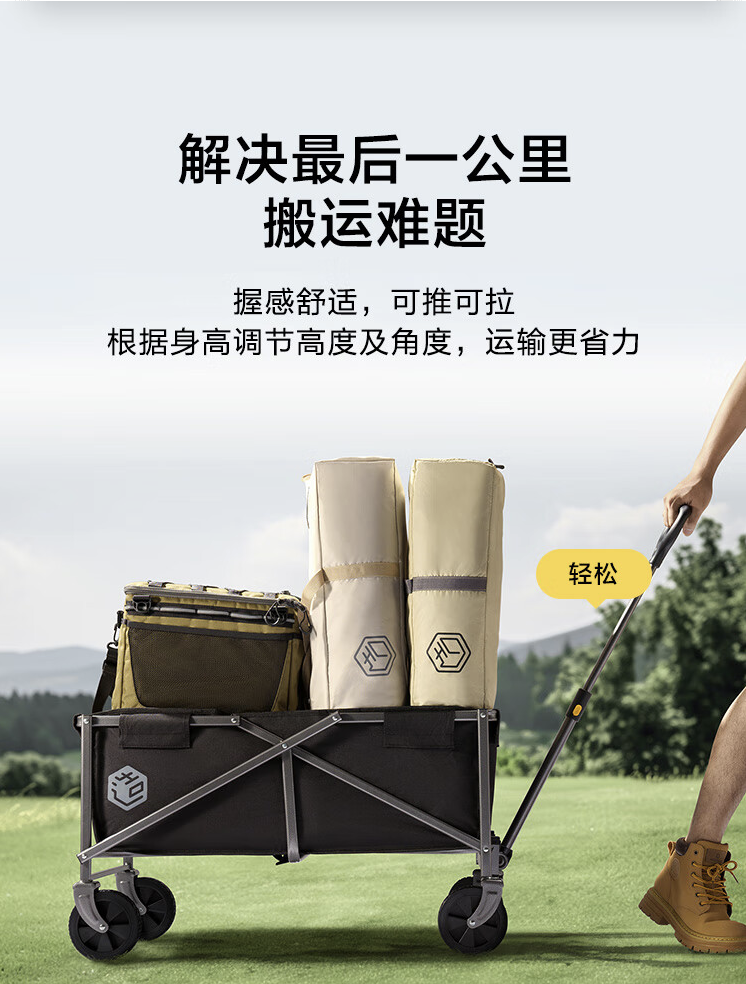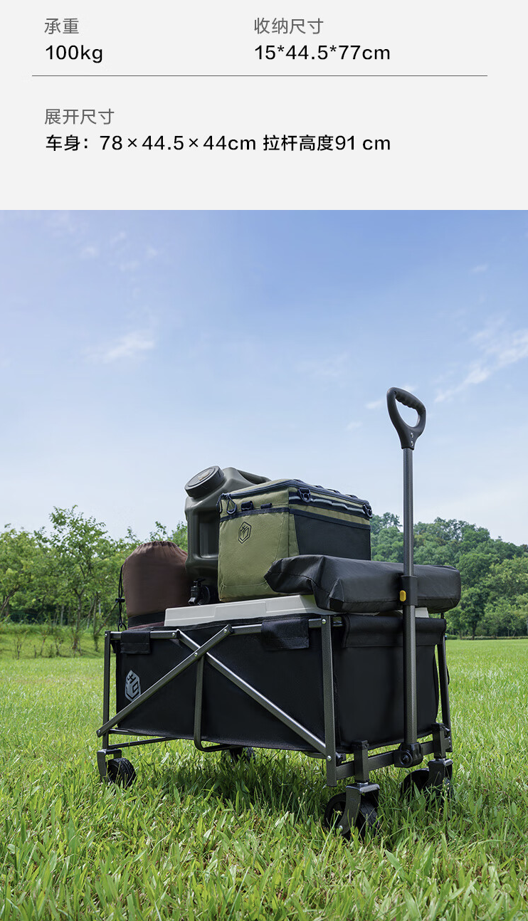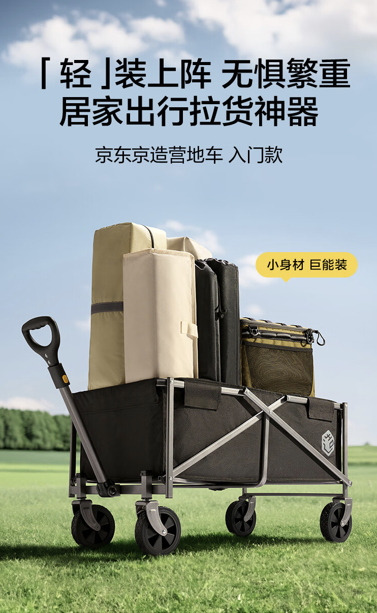 京东京造 户外露营车两向折叠宽轮营地折叠小推车野餐出行装备加宽轴承轮