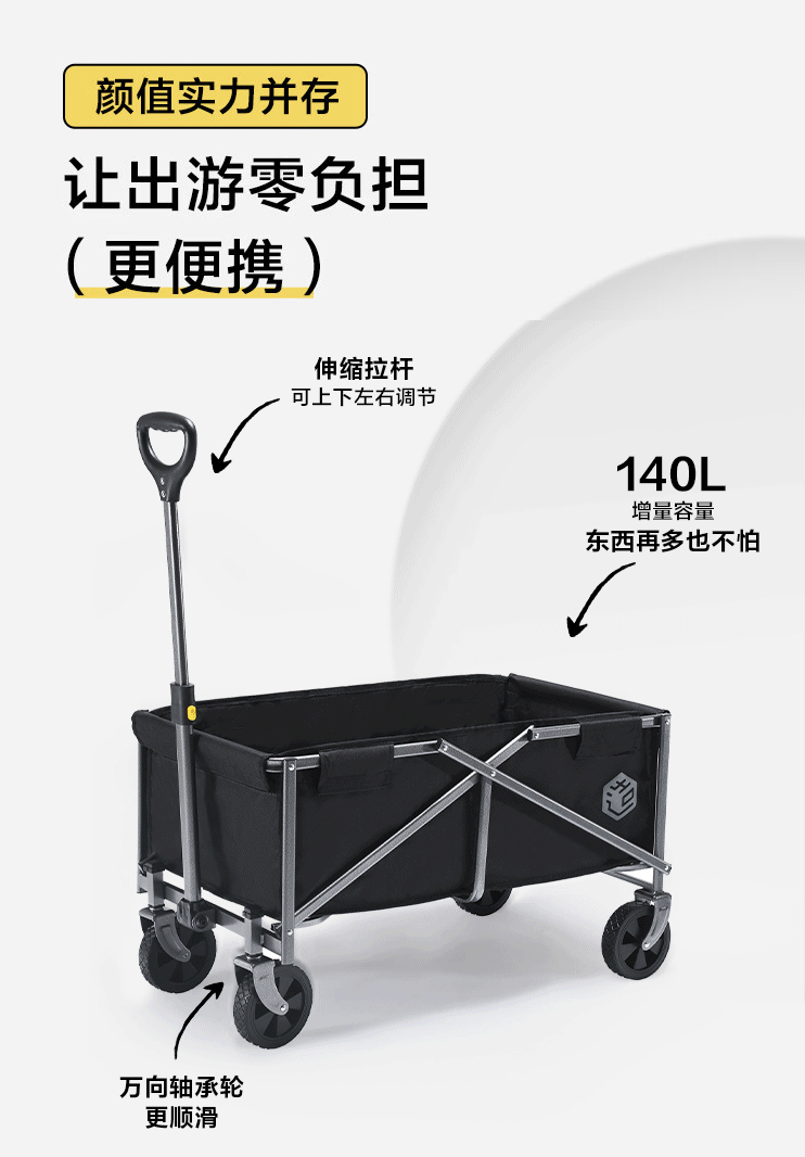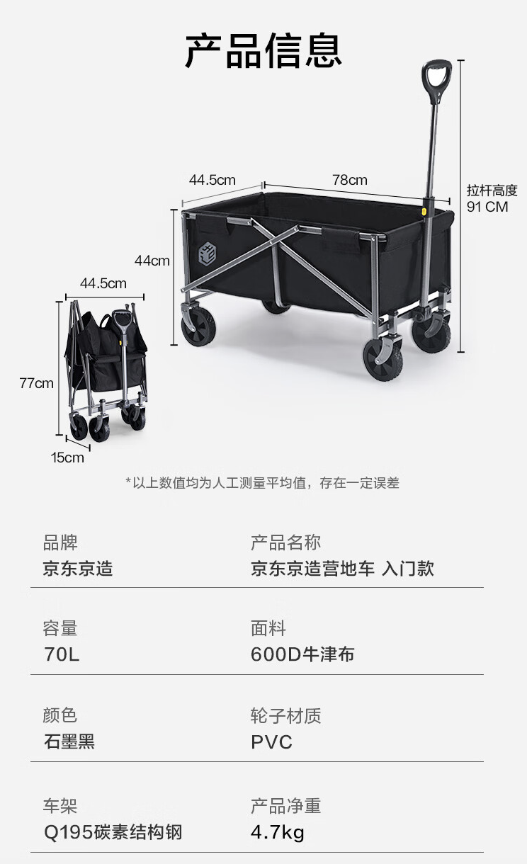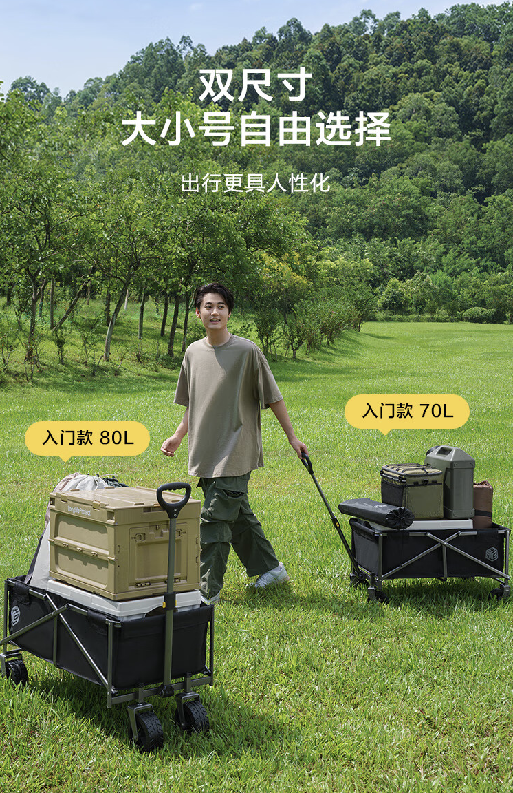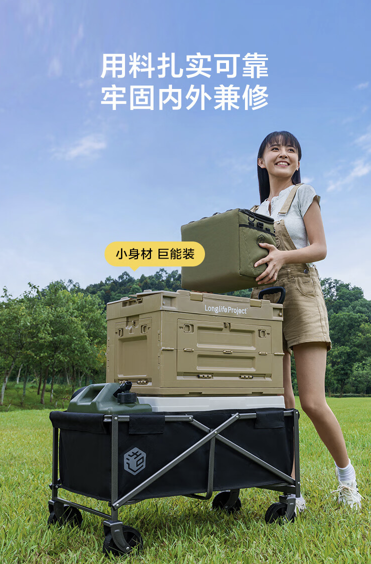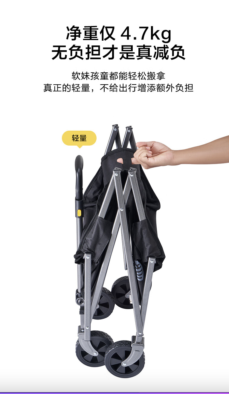 京东京造 户外露营车两向折叠宽轮营地折叠小推车野餐出行装备加宽轴承轮