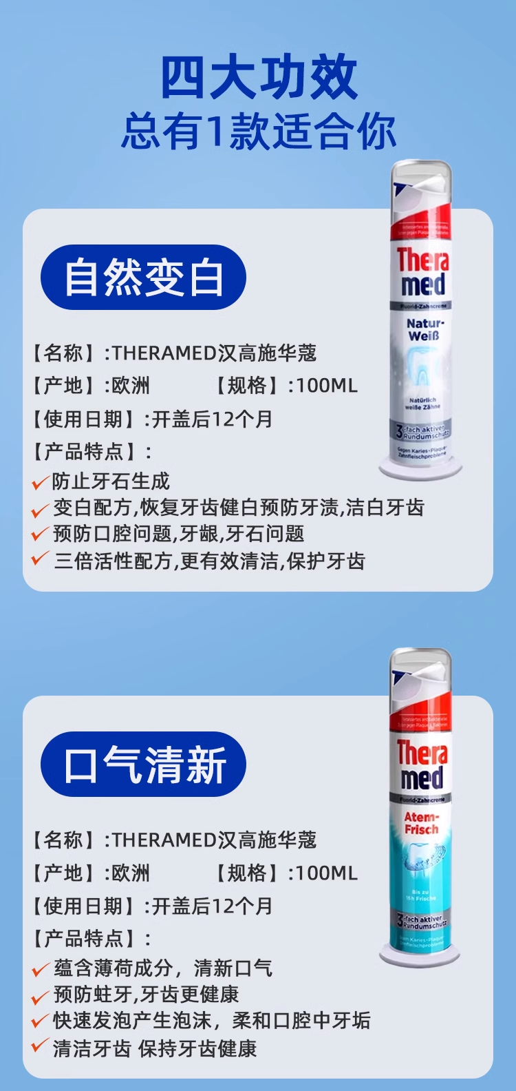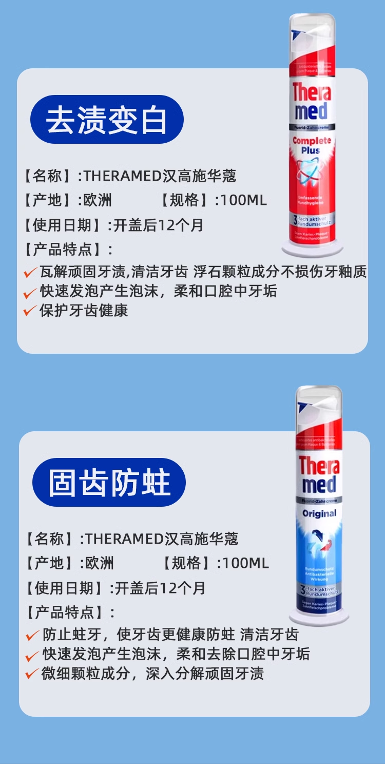 Theramed汉高施华蔻按压式牙膏成人德国进牙膏100ml*2支