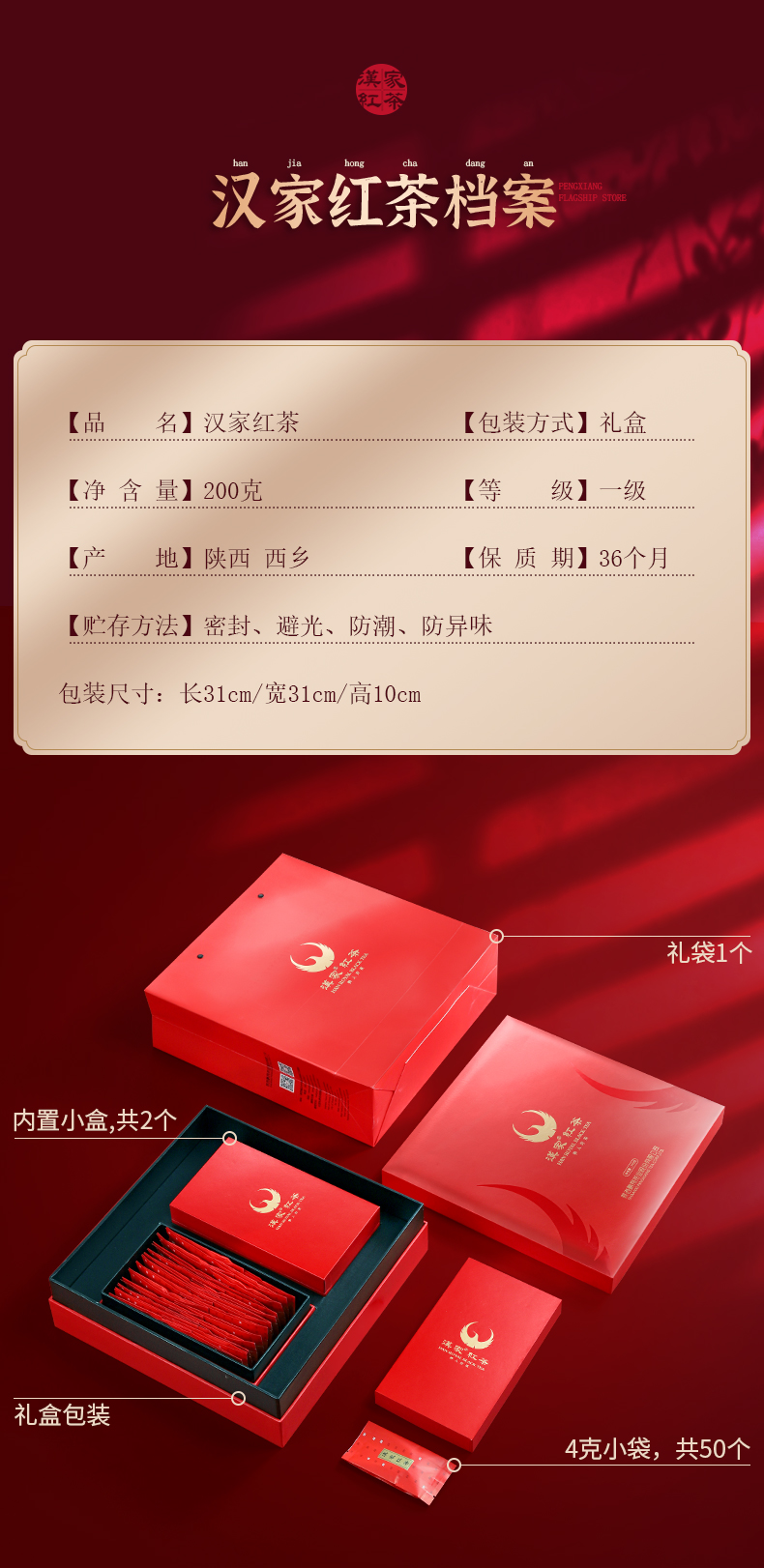 【推荐】鹏翔 汉家红茶200克礼盒 挚交