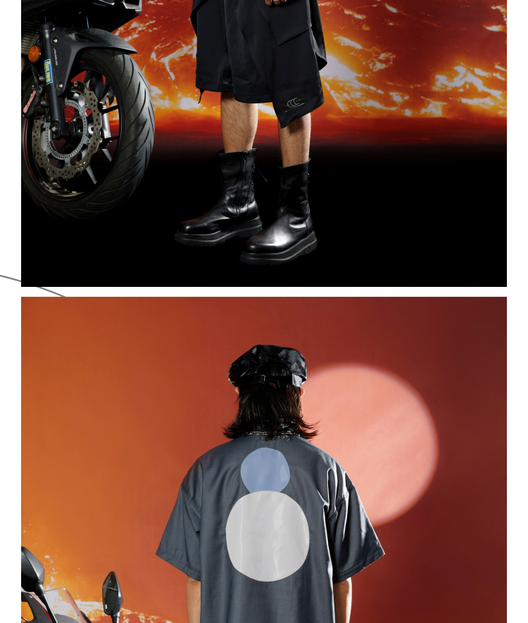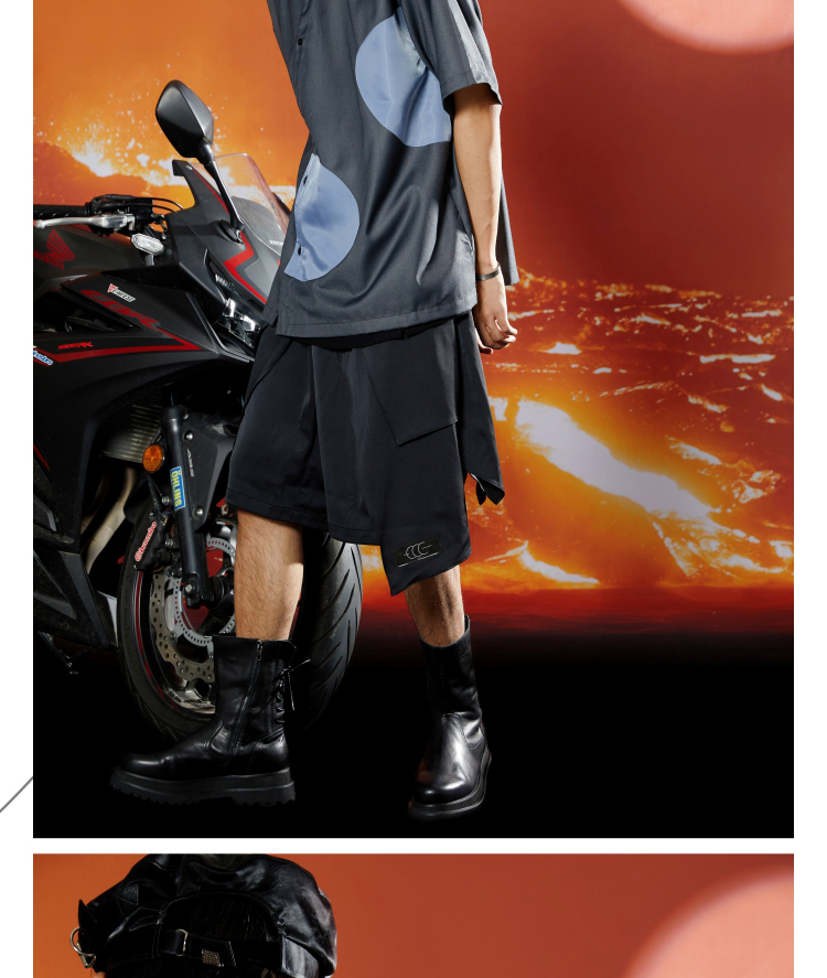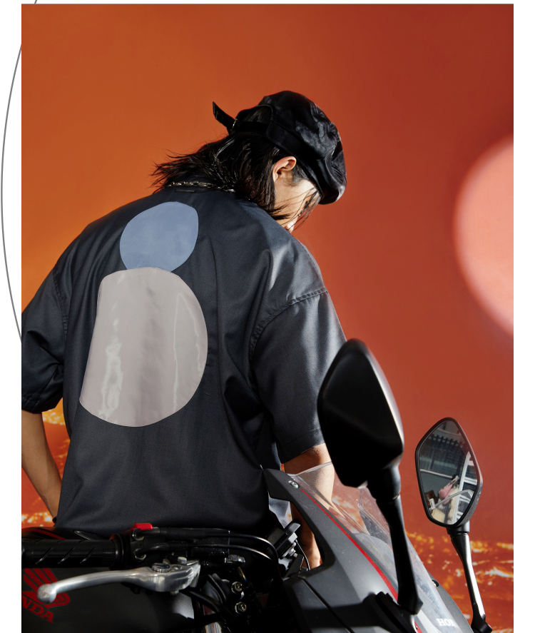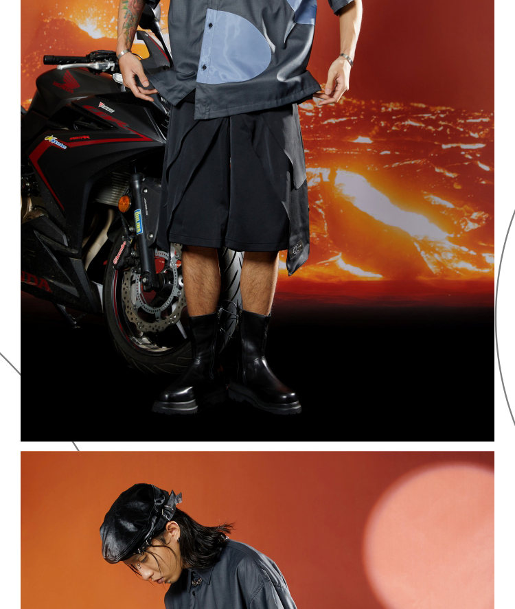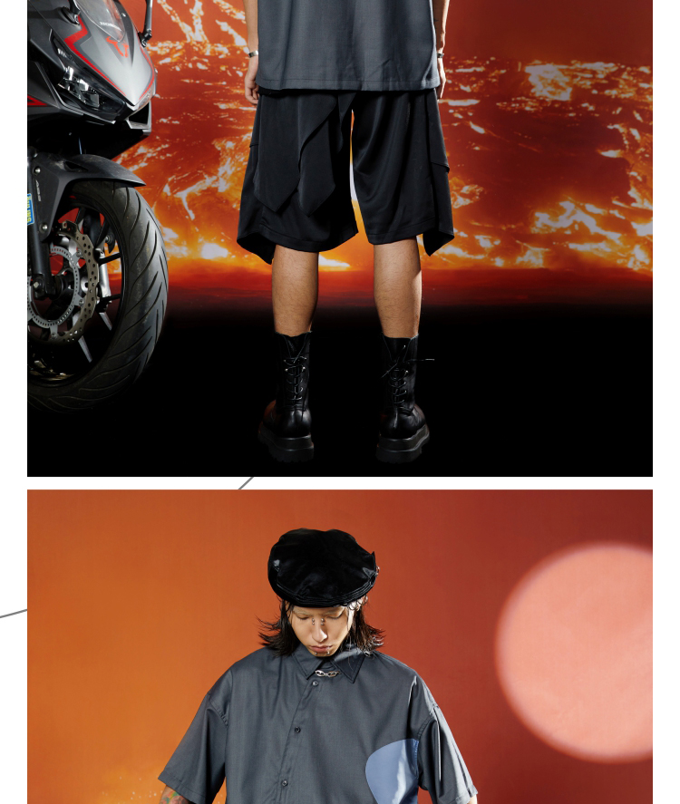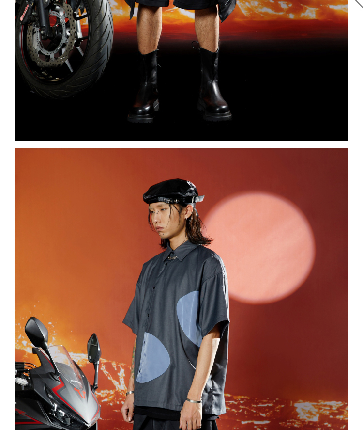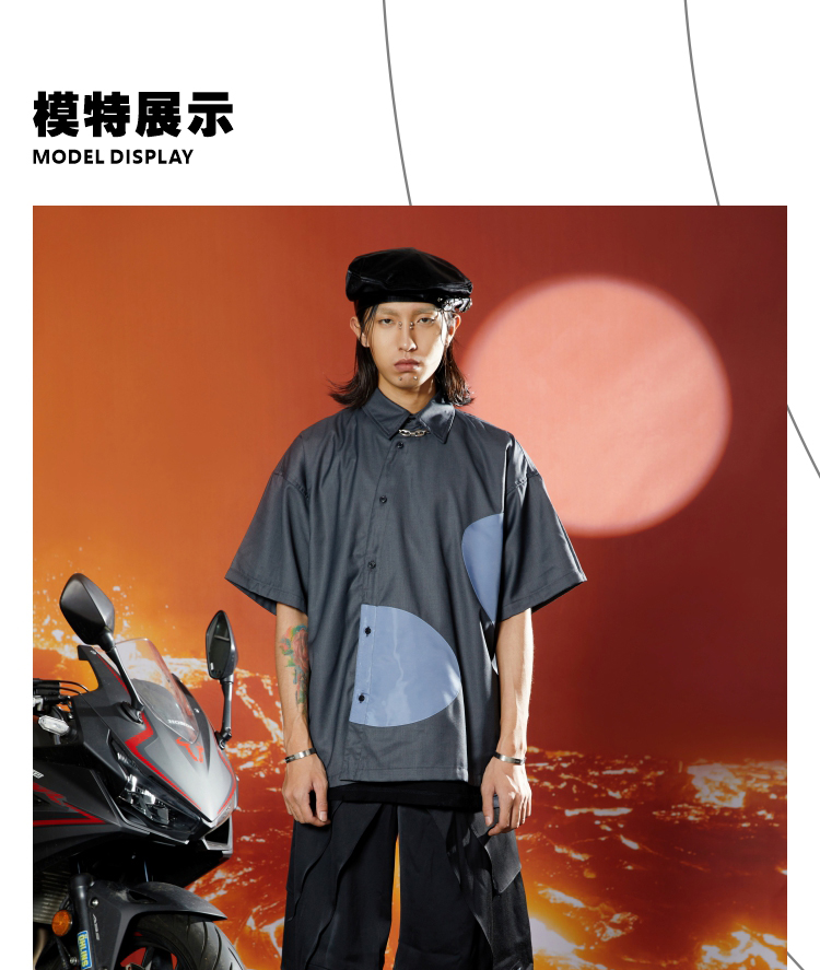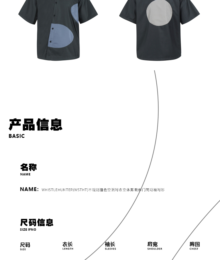 WHISTLEHUNTER(WSTHT)不规则撞色空洞衬衣立体剪裁斜门筒短袖衬衫