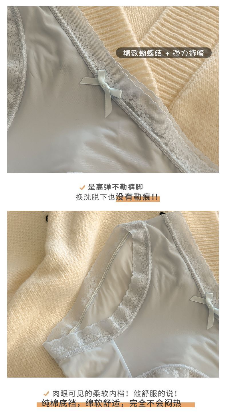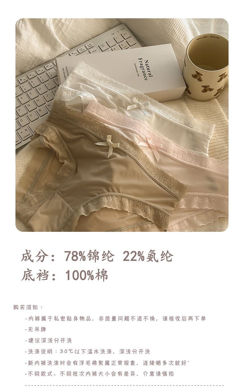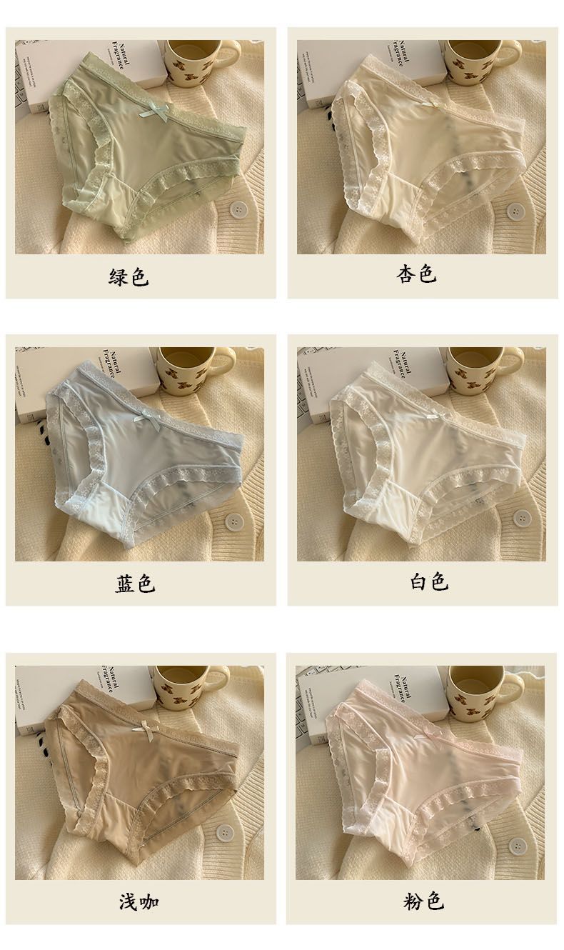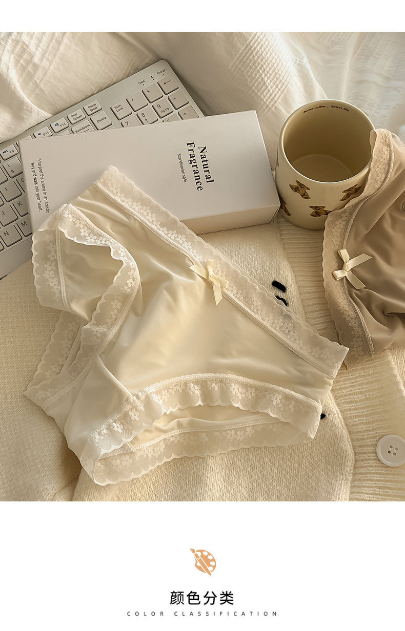 “奶油少女”【屁屁面膜裤】春夏色冰丝内裤女生中腰速干蕾丝边