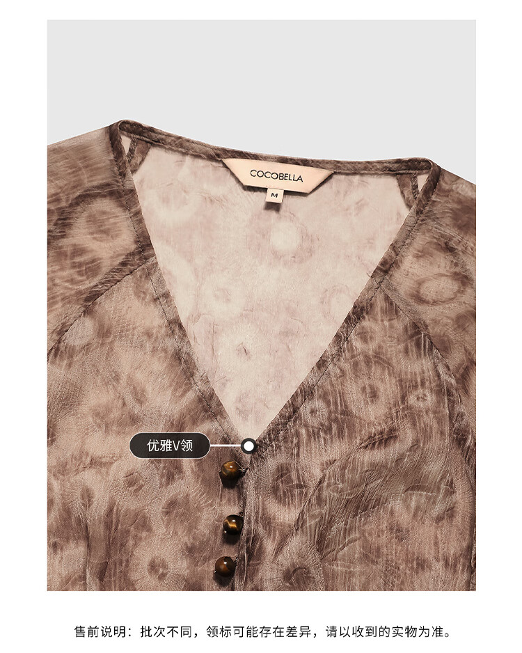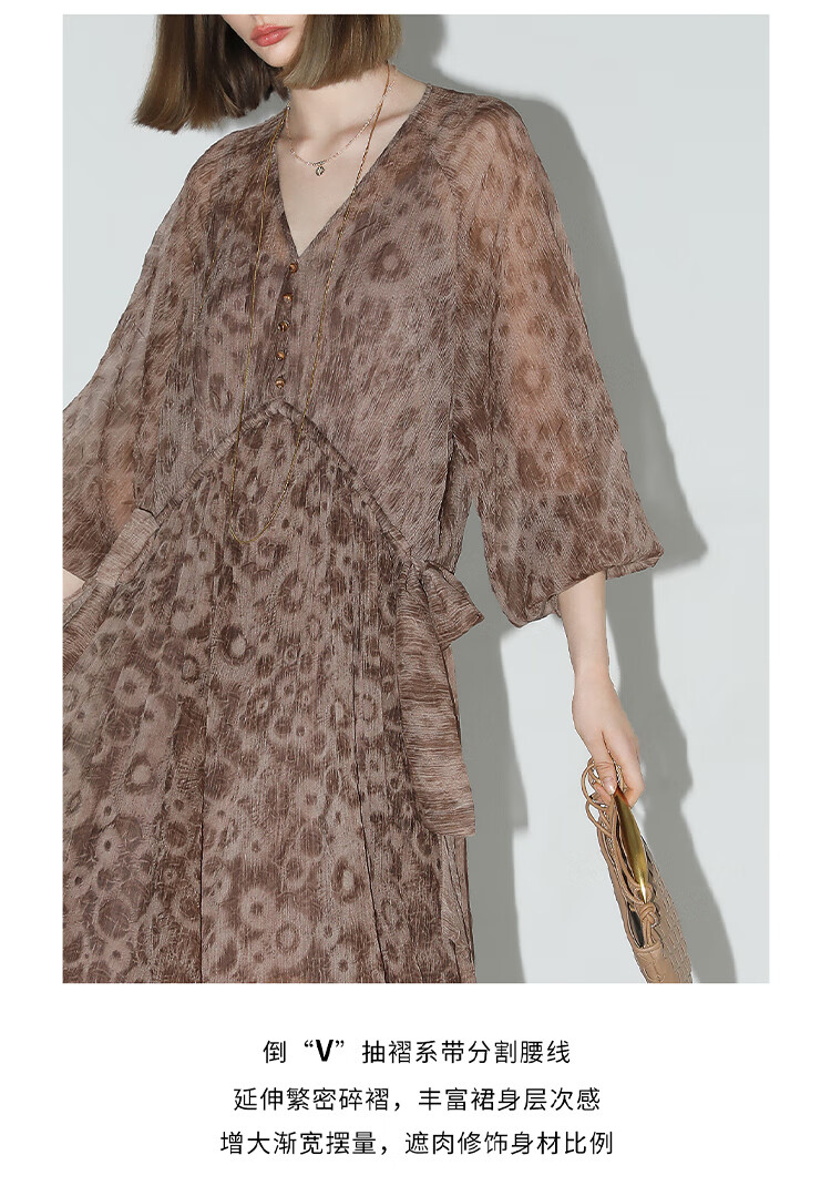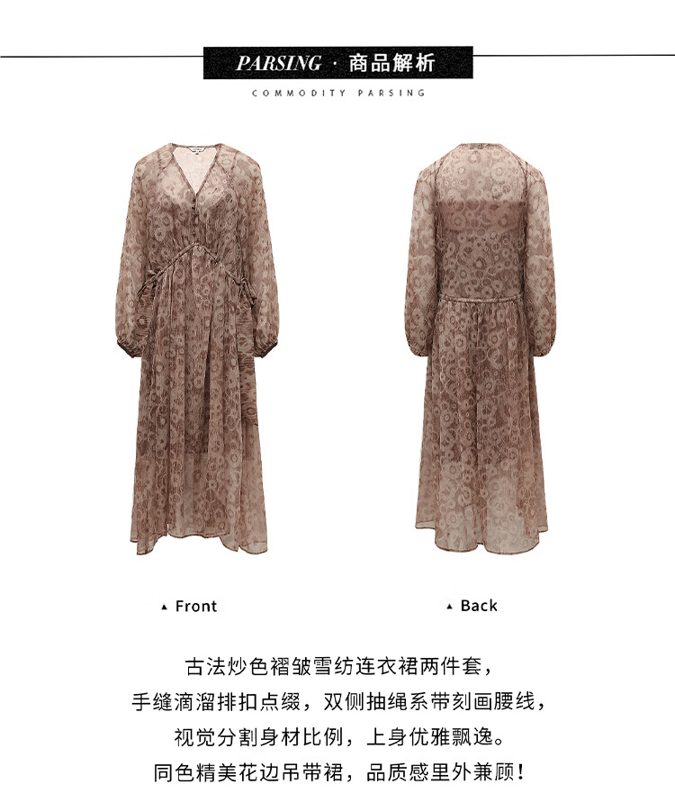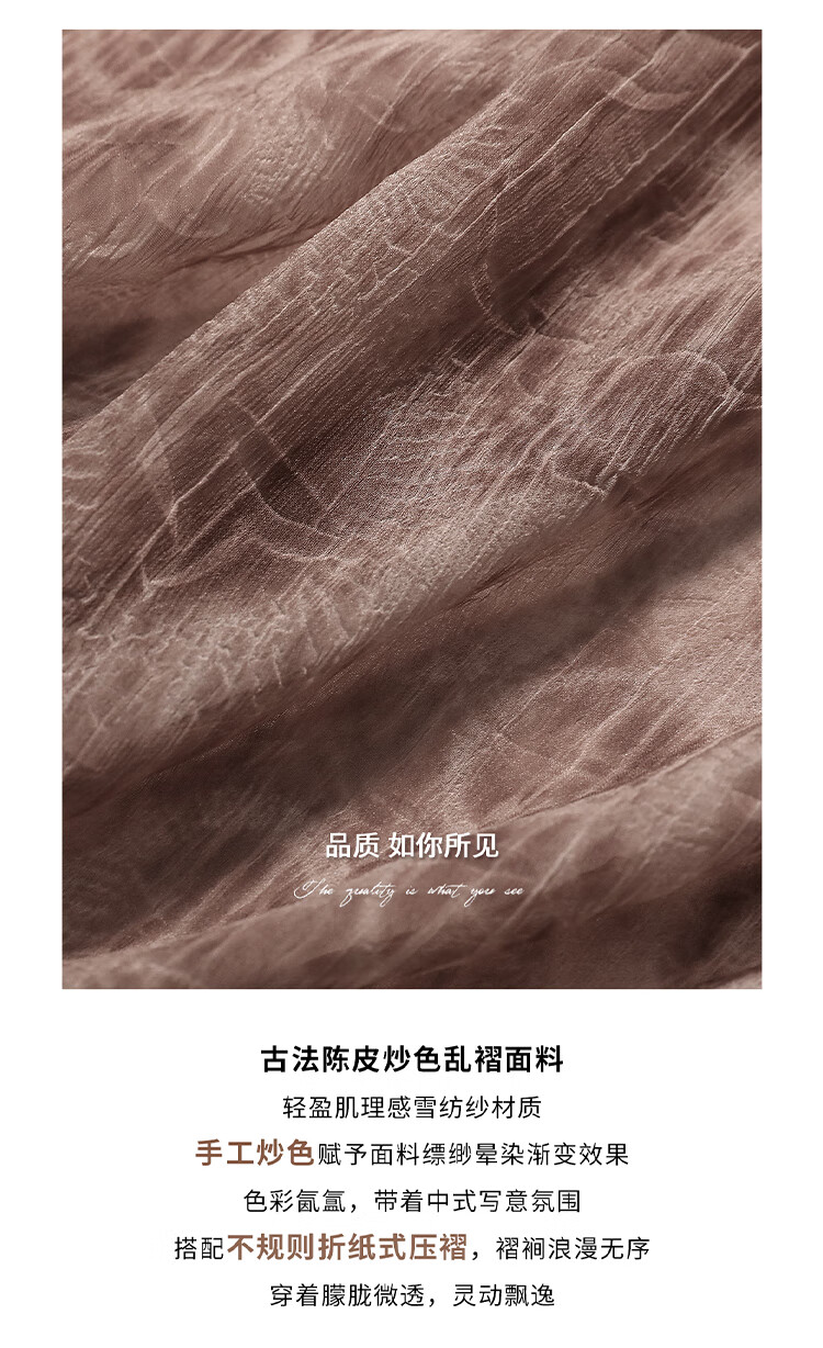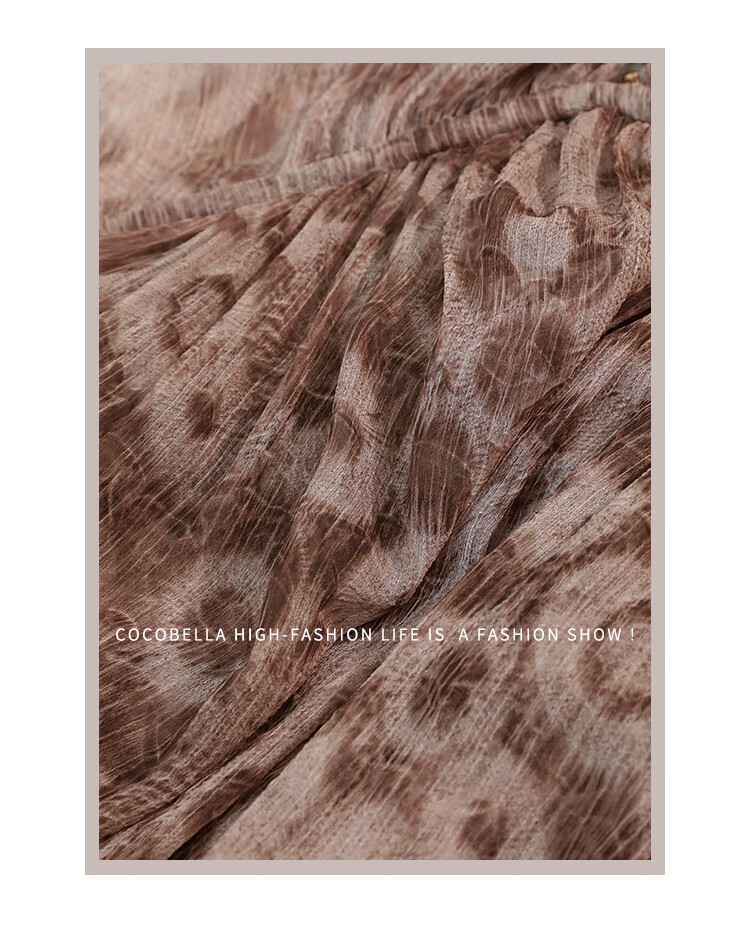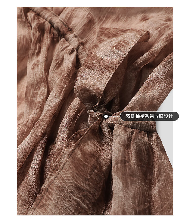 COCOBELLA古法炒色褶皱连衣裙雪纺抽绳度假裙附吊带裙FR7065