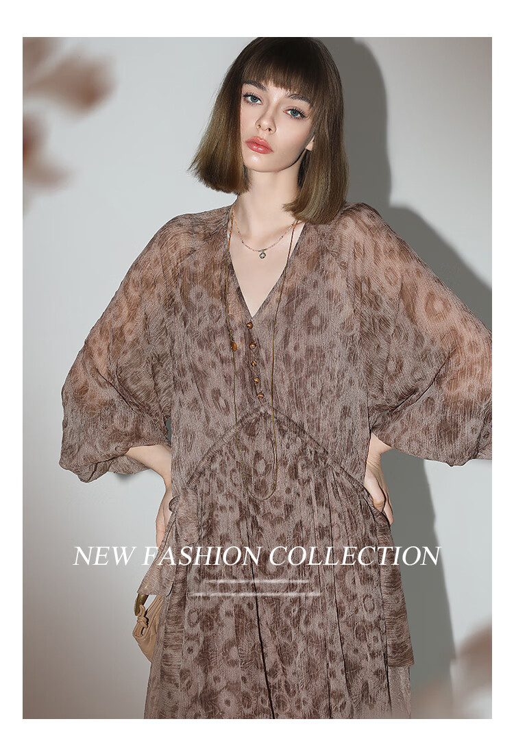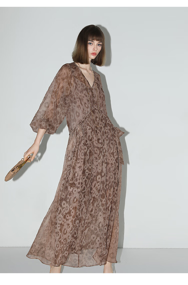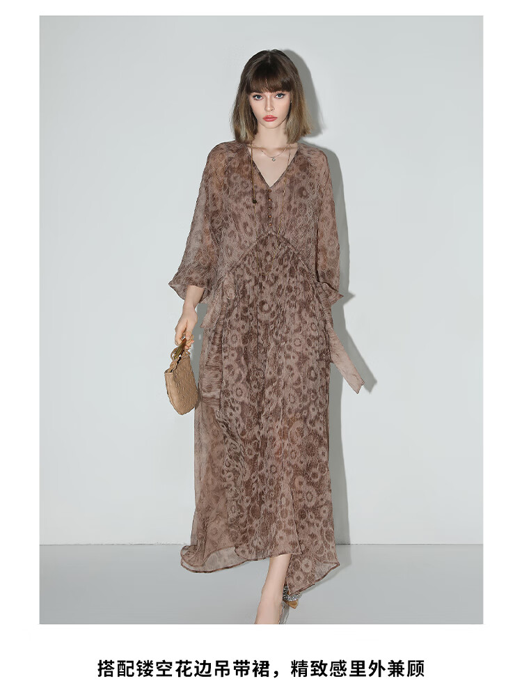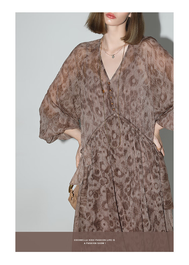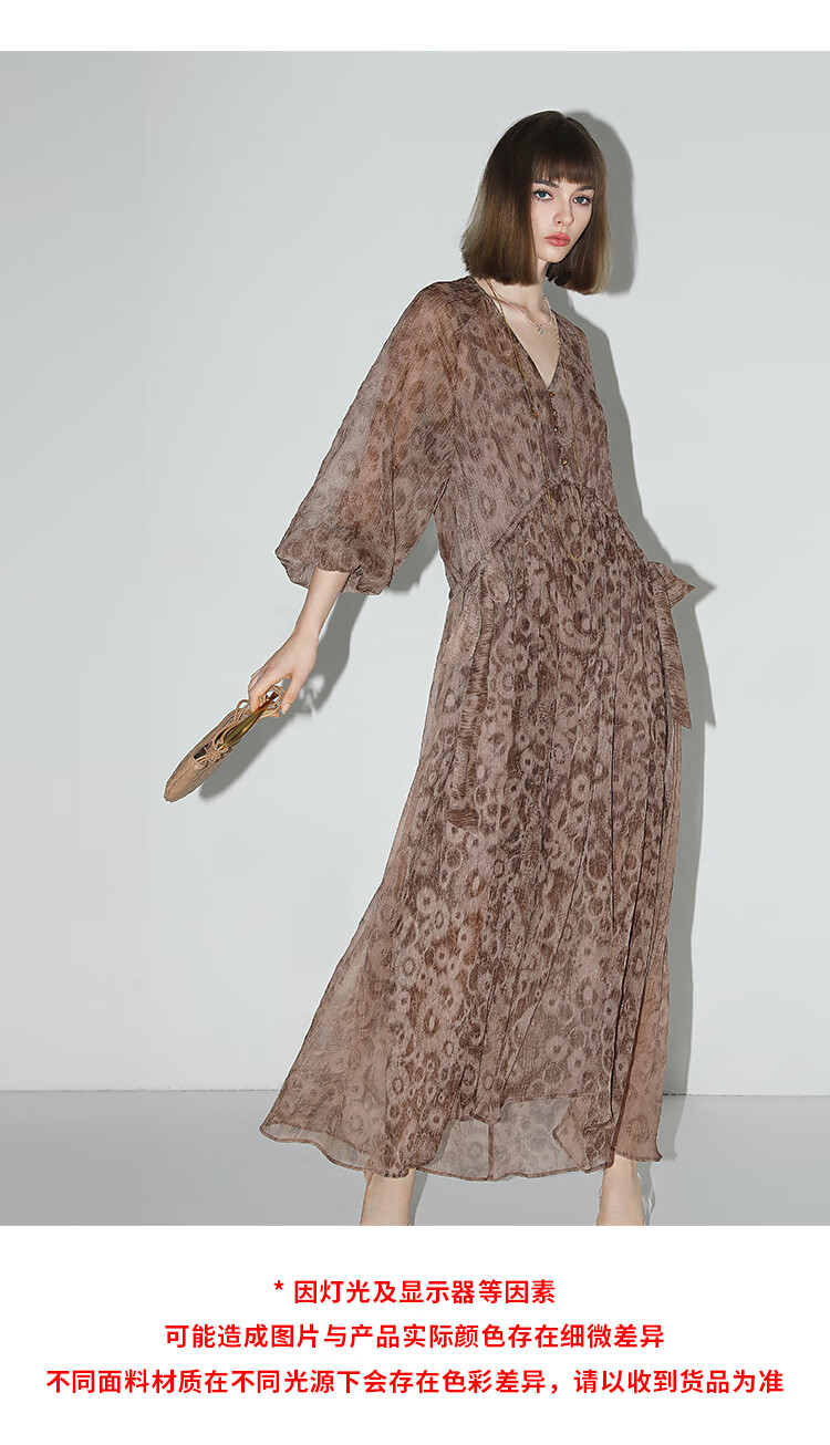 COCOBELLA古法炒色褶皱连衣裙雪纺抽绳度假裙附吊带裙FR7065