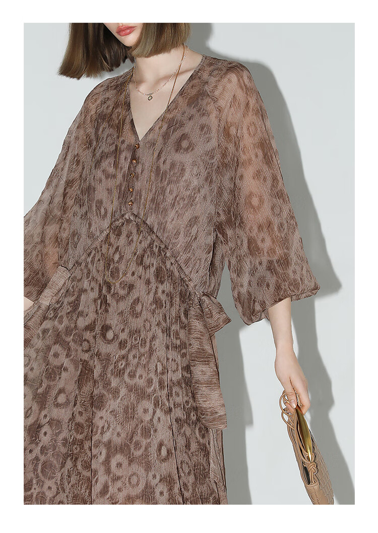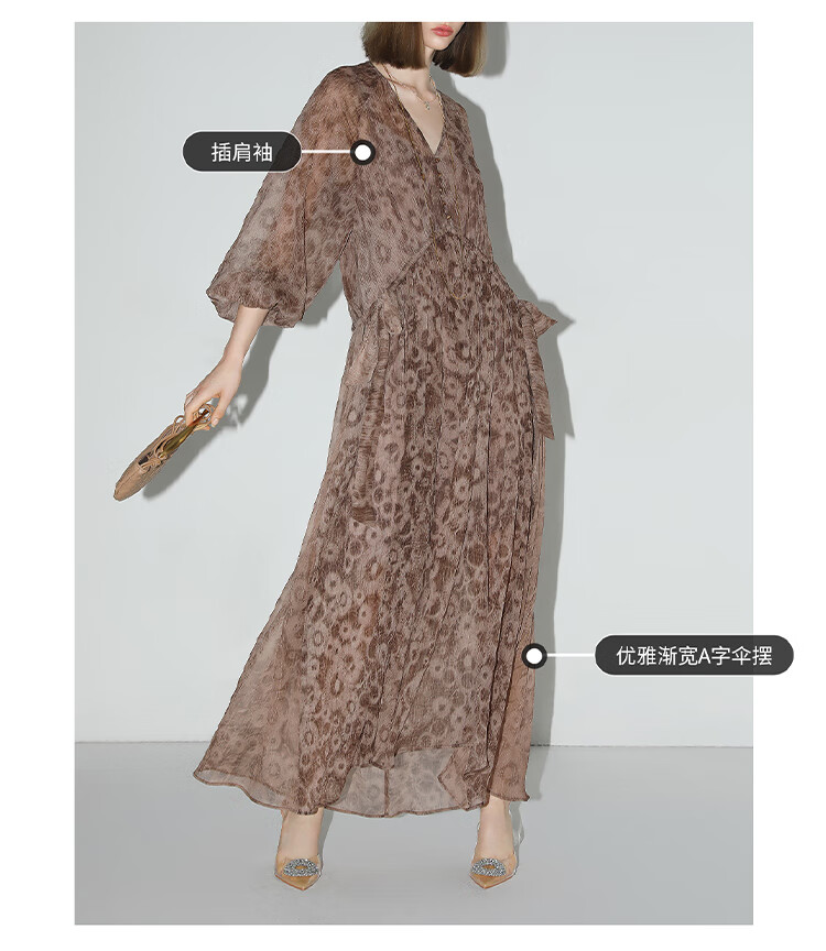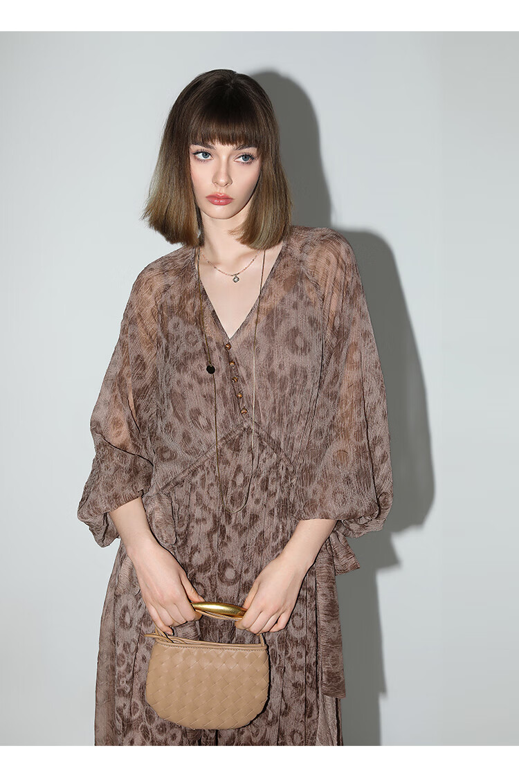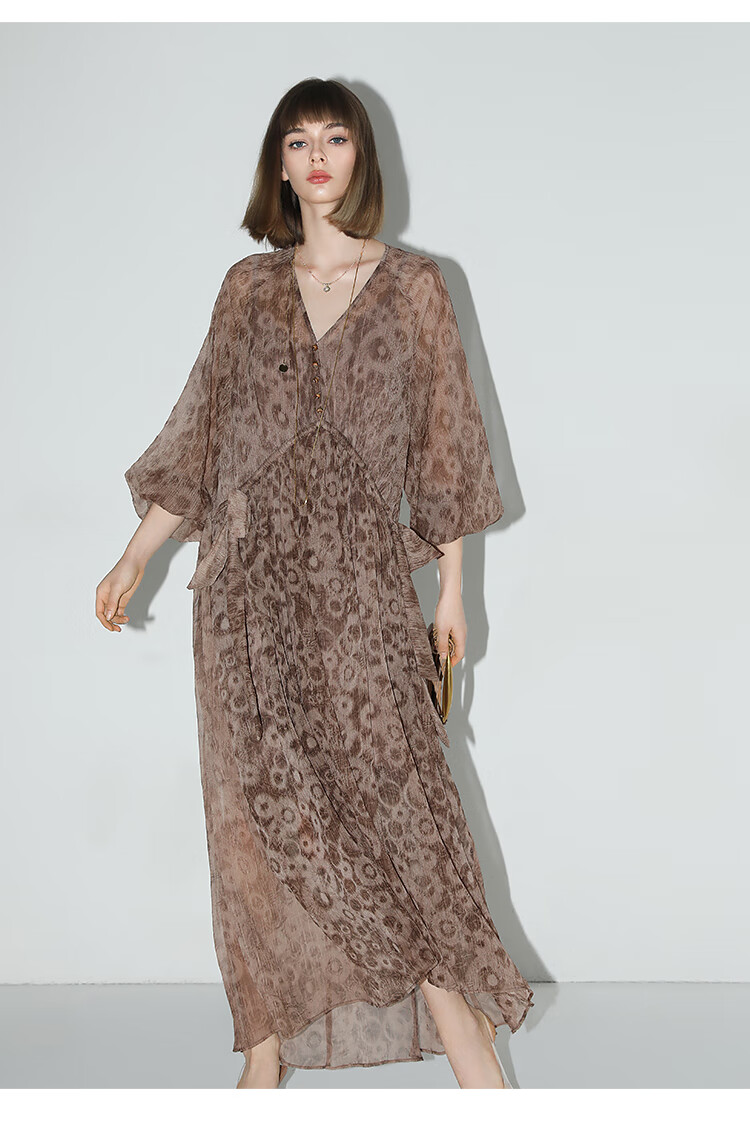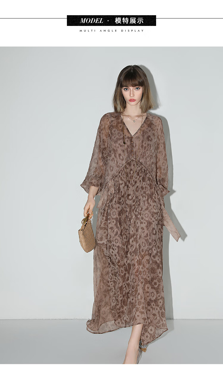COCOBELLA古法炒色褶皱连衣裙雪纺抽绳度假裙附吊带裙FR7065