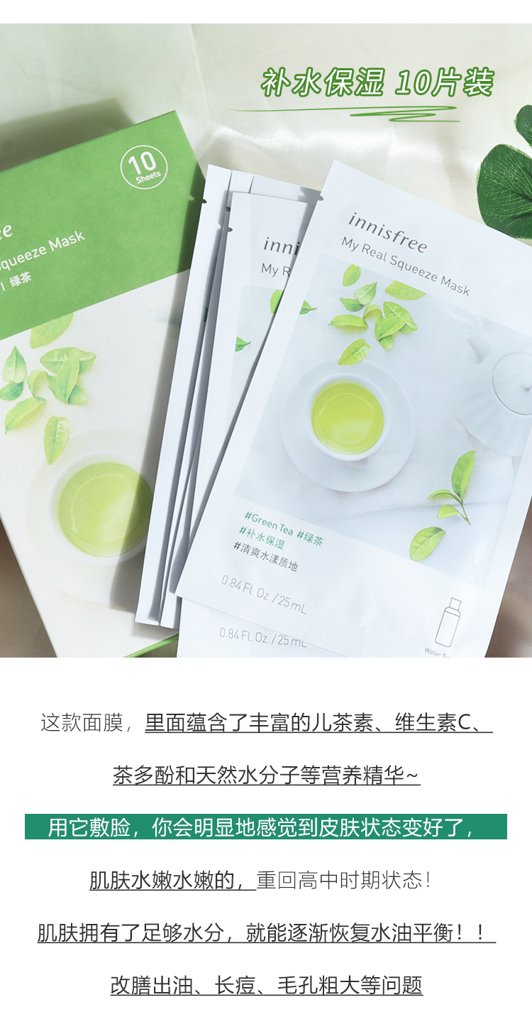 商品名称:悦诗风吟绿茶面膜25ml*10片