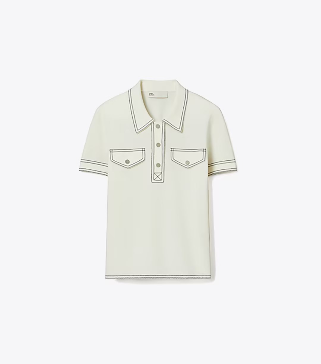这款羊毛 Polo 衫,融合撞色明线与贴袋等实用主义设计元素,呈现几何视觉美感。搭配同系列半身裙,打造休闲与精致兼具的利落造型。
