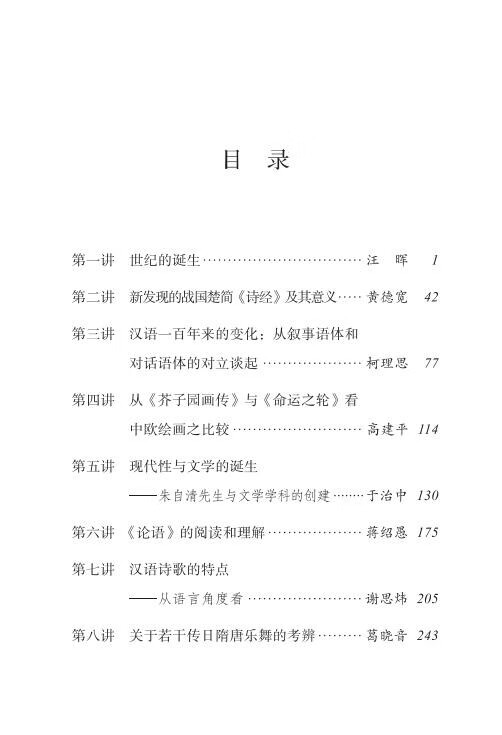 本书是2018年9—11月清华大学中文系“纪念朱自清先生诞辰120周年系列学术讲座”的讲稿汇编。共收录汪晖、黄德宽、柯理思、蒋绍愚、葛晓音等8位老师的8篇讲座文字稿,内容涉及历史、语言、文学、艺术等多个方面。