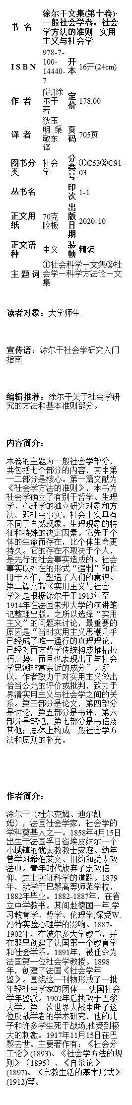 涂尔干文集(第十卷)·一般社会学卷:社会学方法的准则 实用主义与社会学 商务印书馆