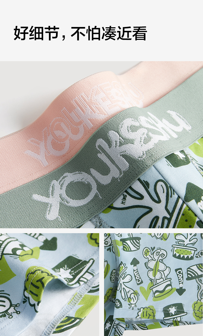 有棵树印花纯棉抗菌男士内裤3条装-U1164