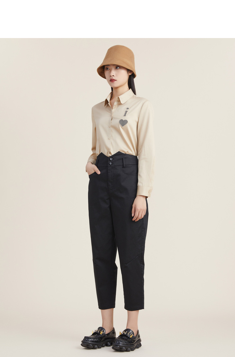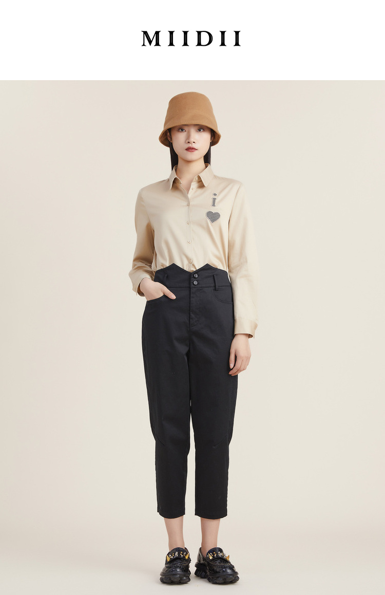 谜底绣花牛仔裤女士2023冬季新款复古合体萝卜裤九分裤234MK1544