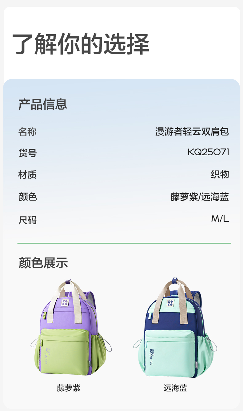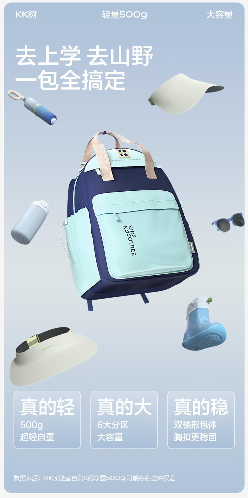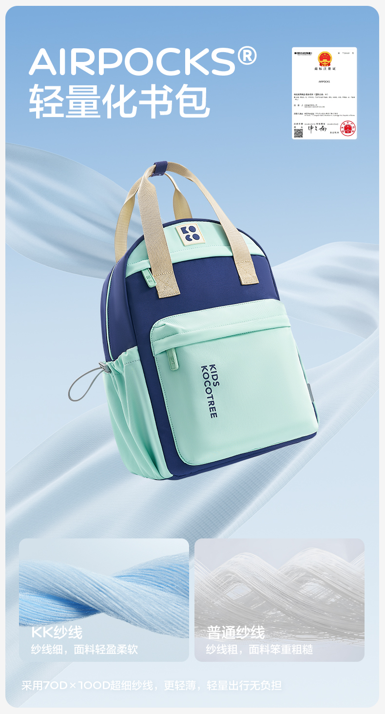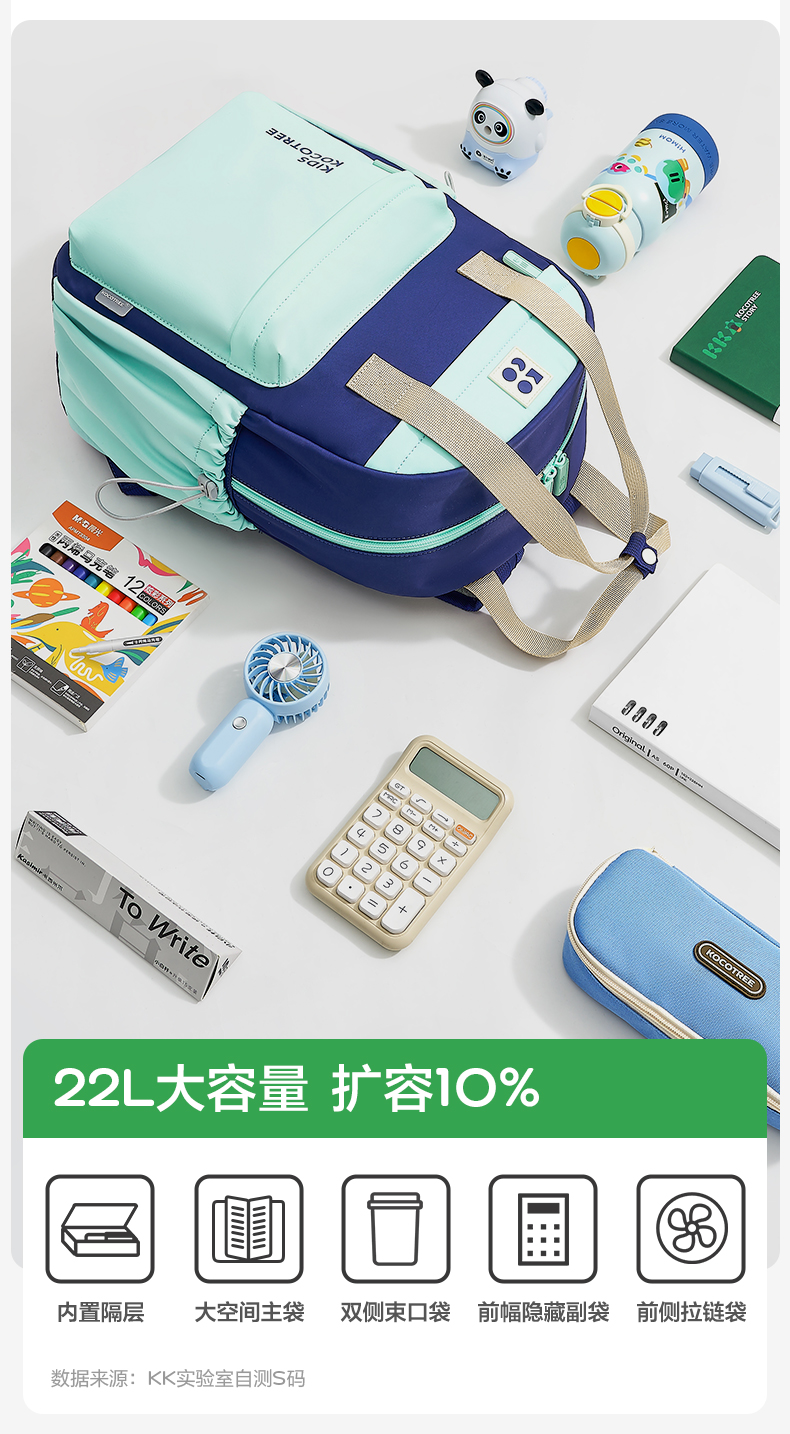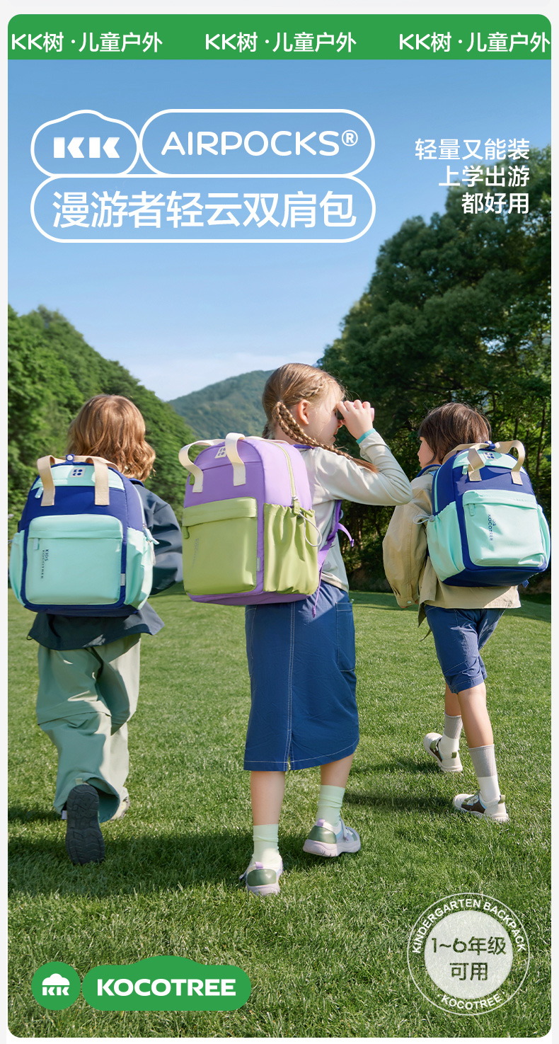 KK树儿童书包男小学生女孩一二三到六年级轻便减负护脊大容量新款漫游者轻云双肩包
