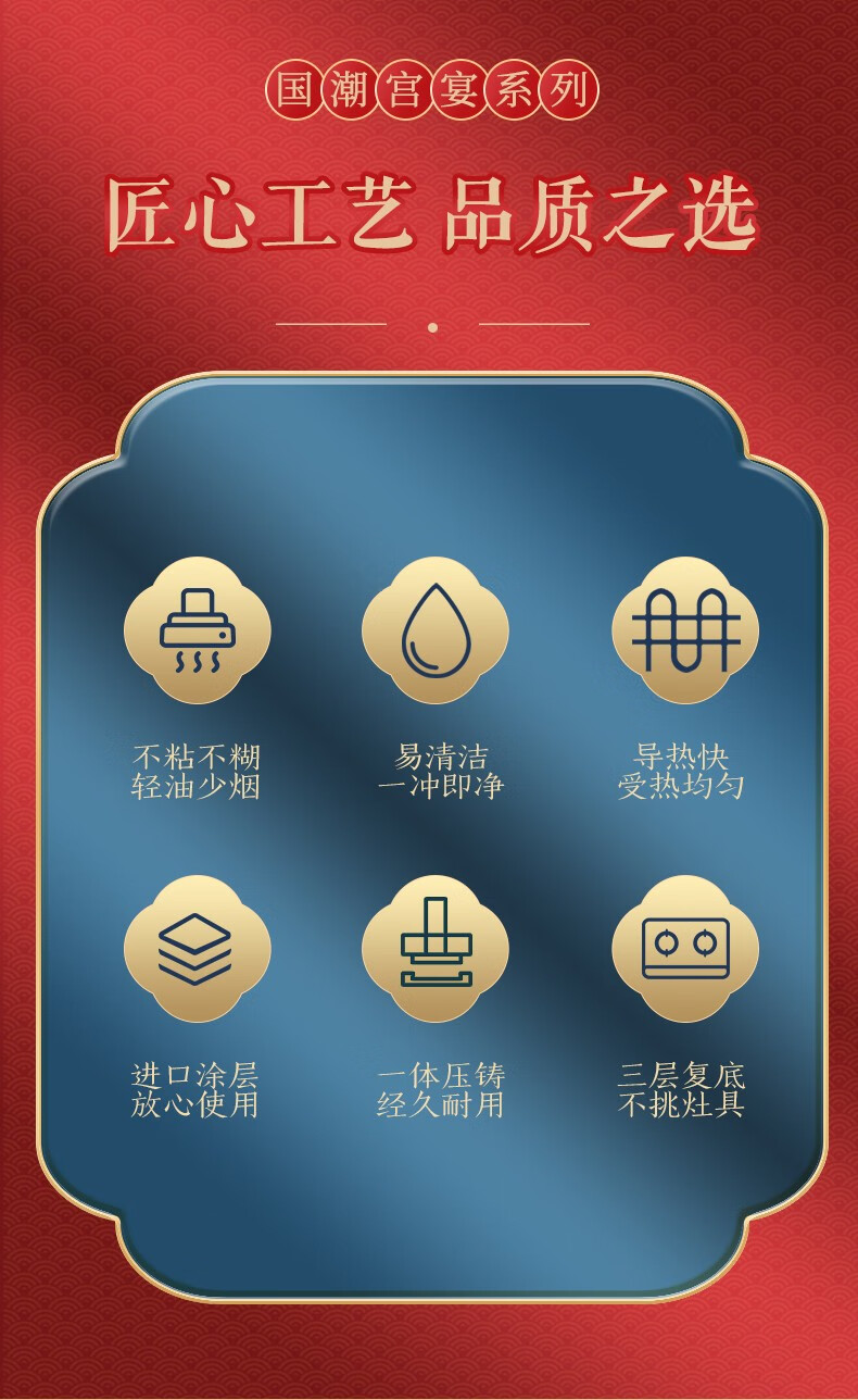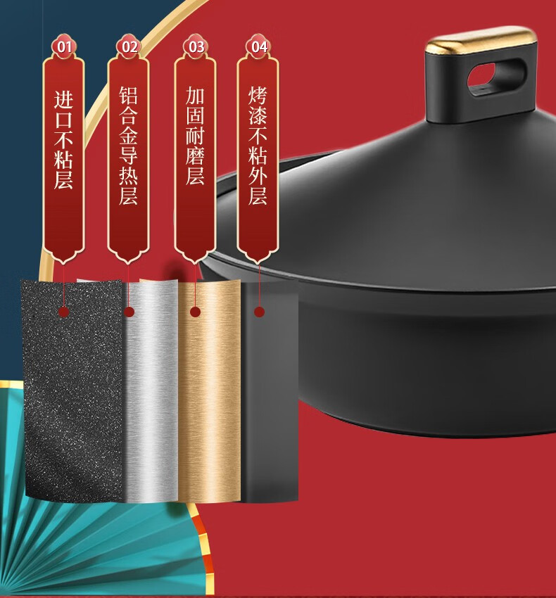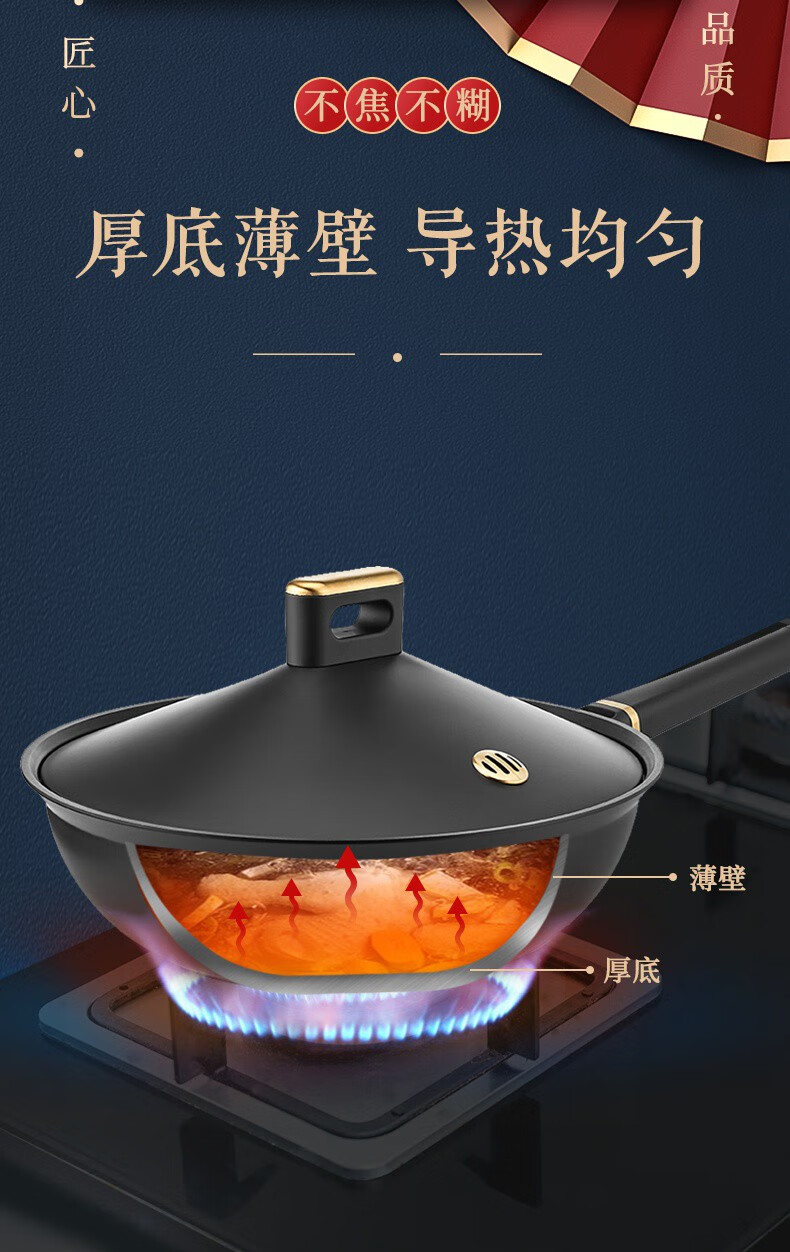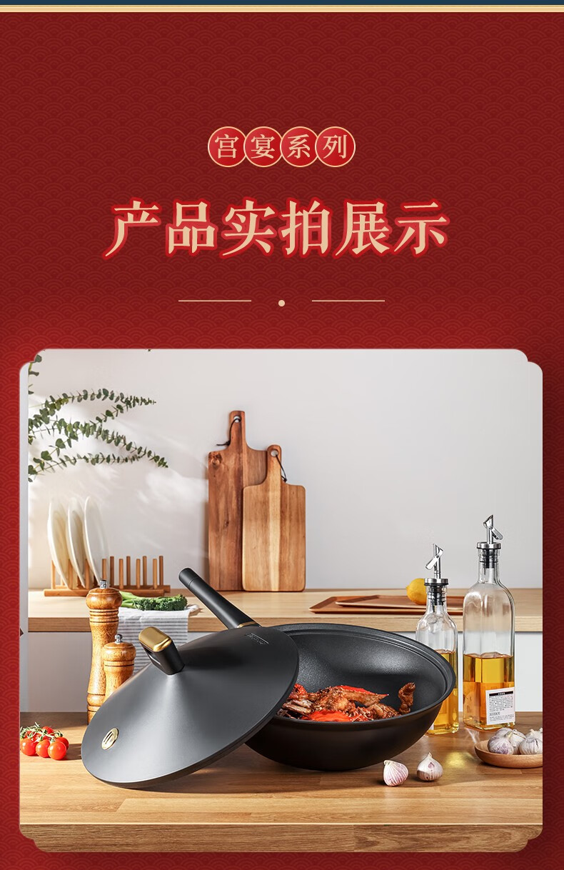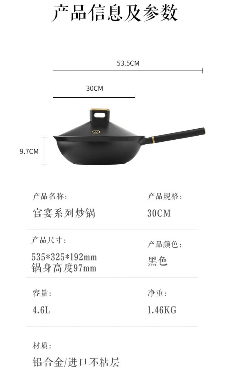 【小家电】Revere 宫宴系列30cm不粘炒锅铝合金不粘锅少油烟烹饪锅具不挑灶具WS-GT30C/YK HF