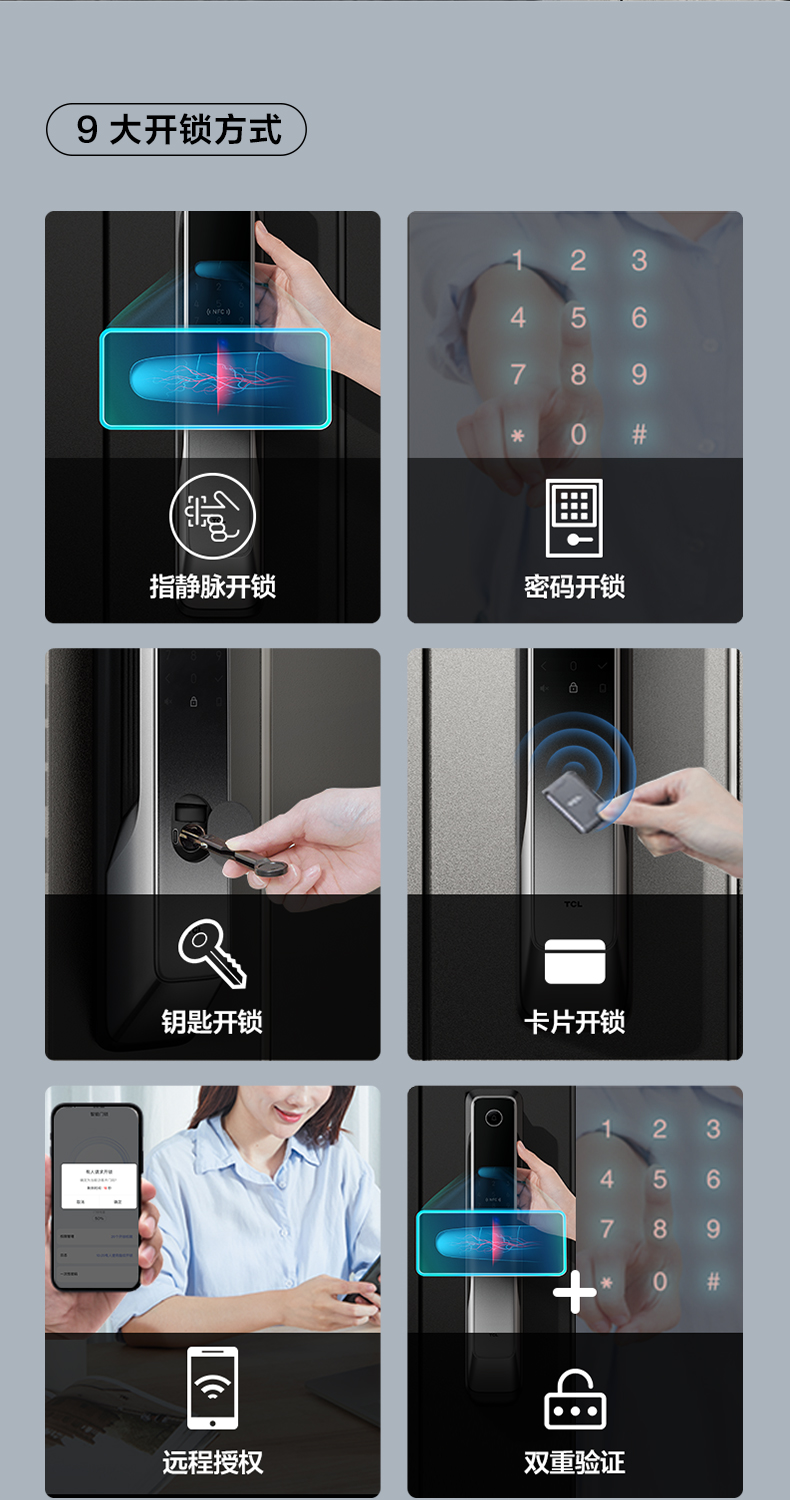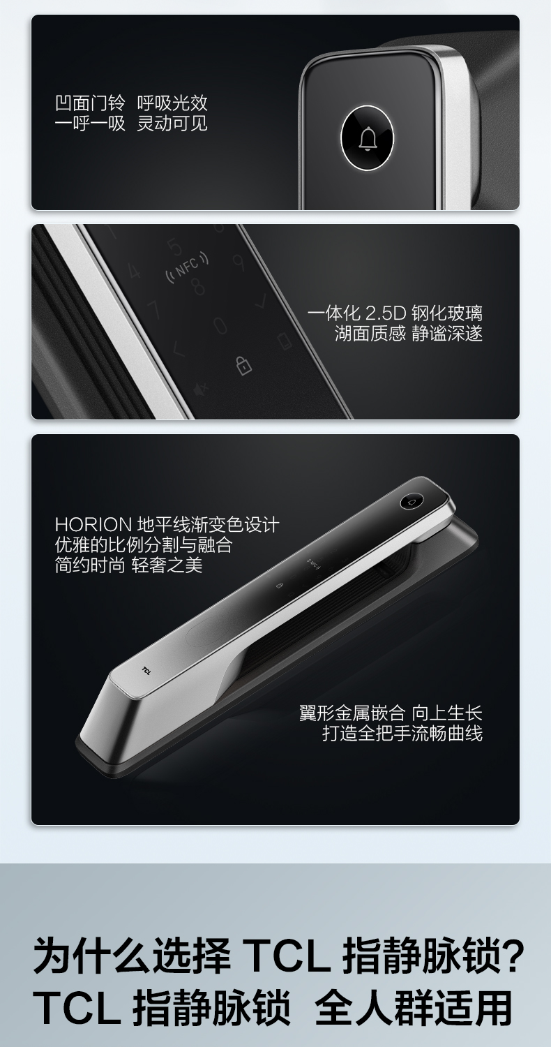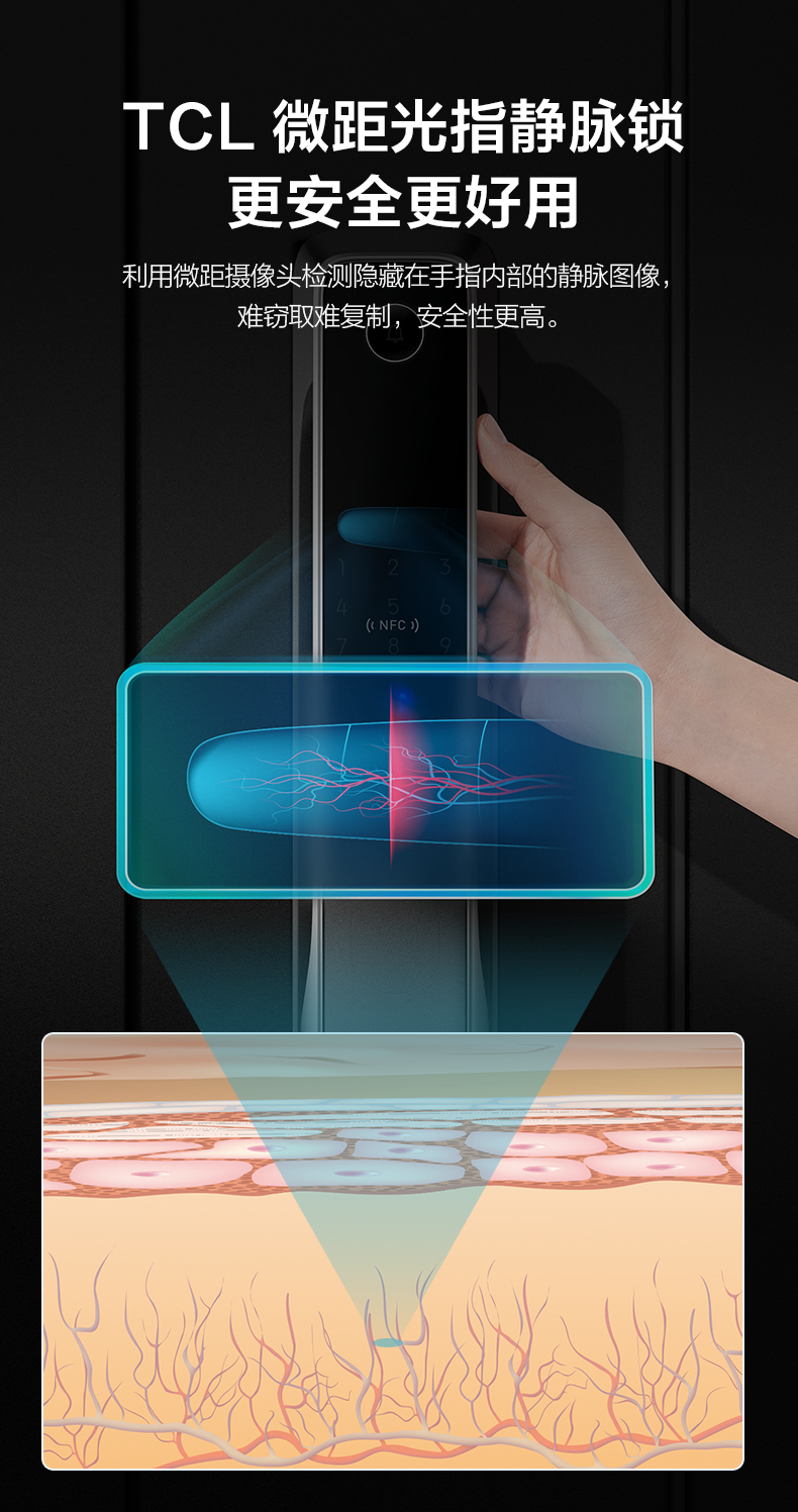 【员工内购专享】TCL指纹锁指静脉识别智能锁NFC密码锁防盗门锁全自动智能门锁推拉款家用安全防盗锁电子锁 指静脉识别P10