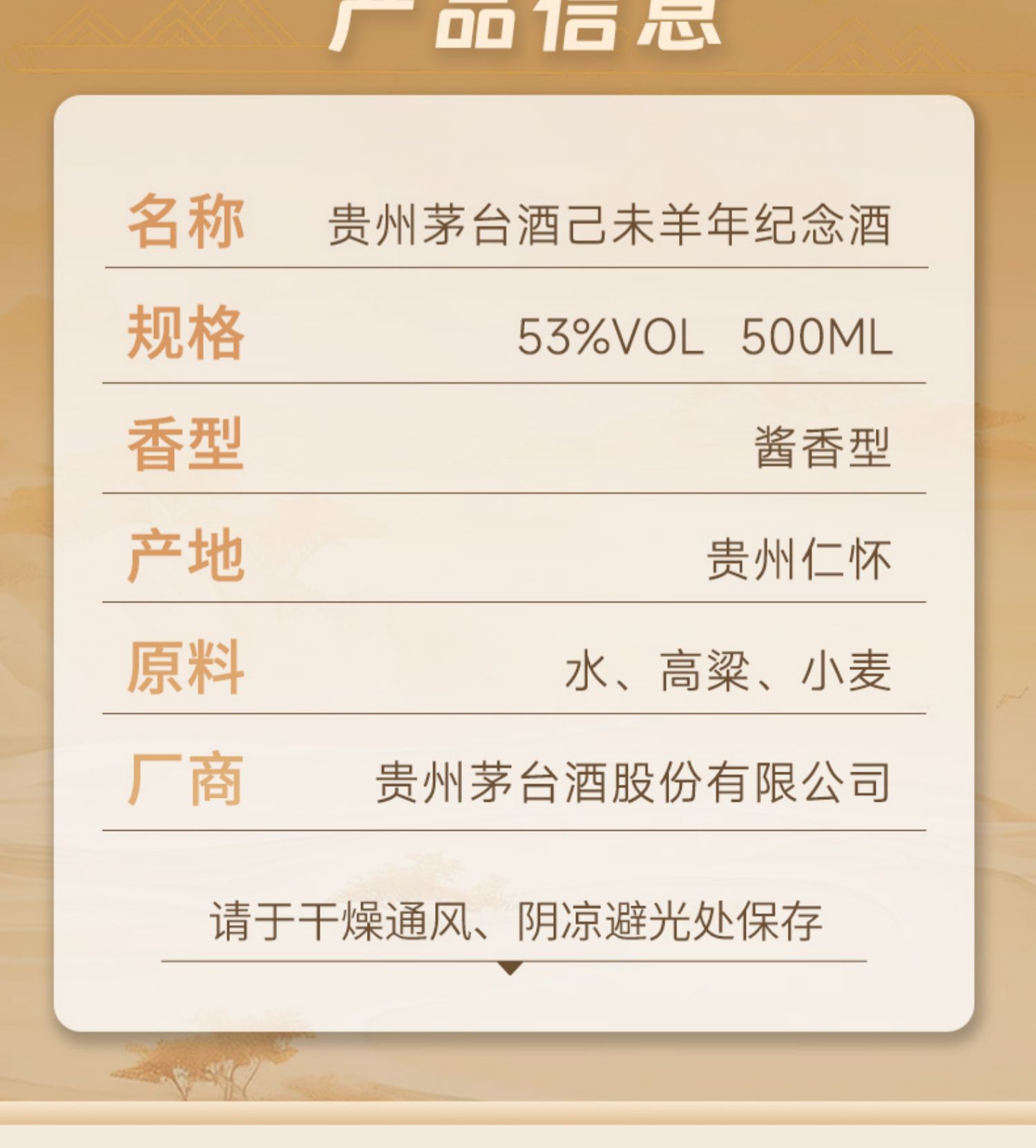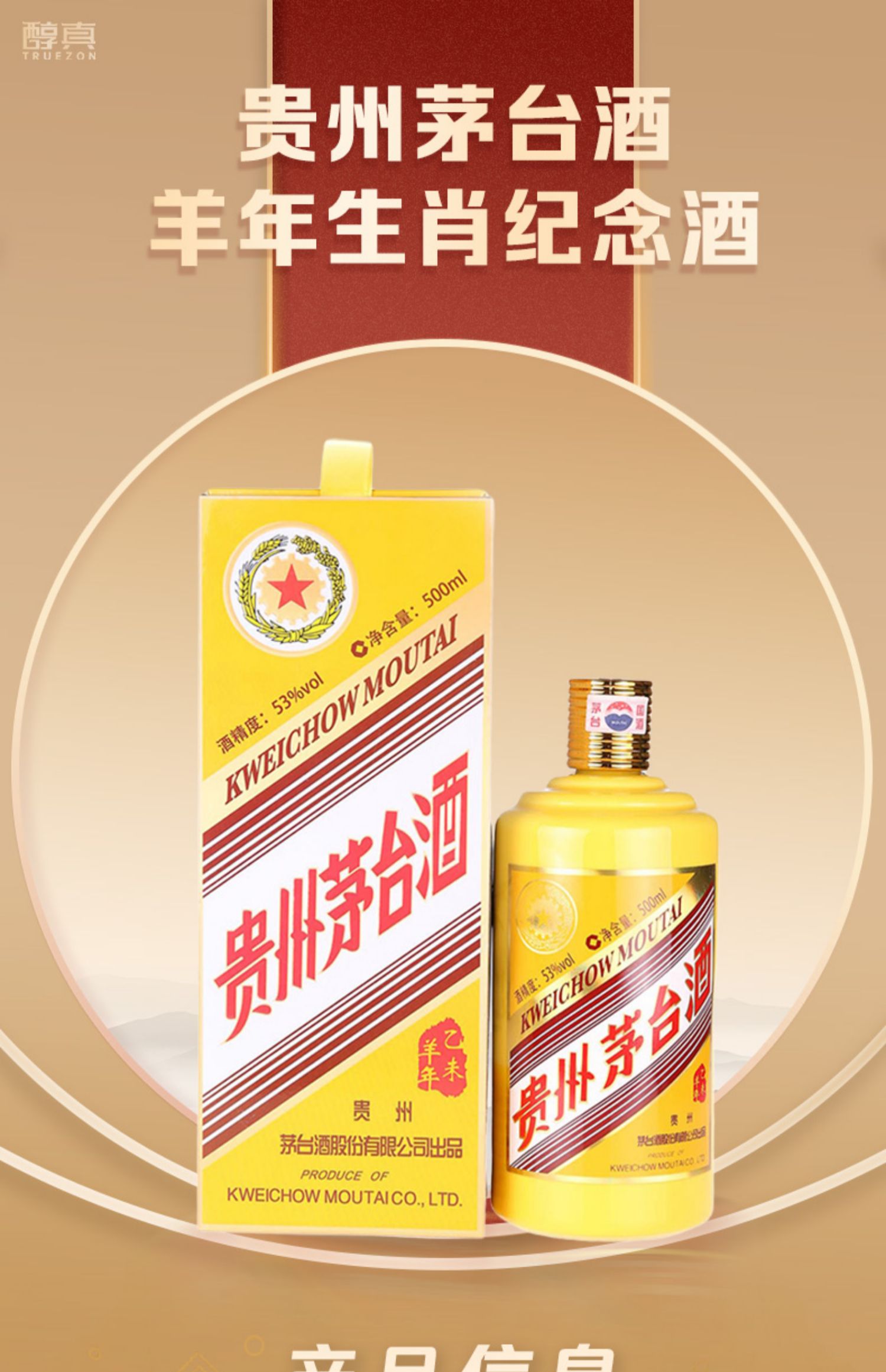茅台(MOUTAI)生肖纪念 乙未羊年 53度 500ml 单瓶装(整箱为6瓶)