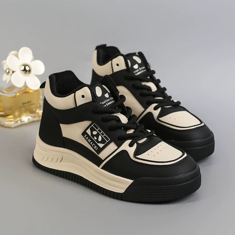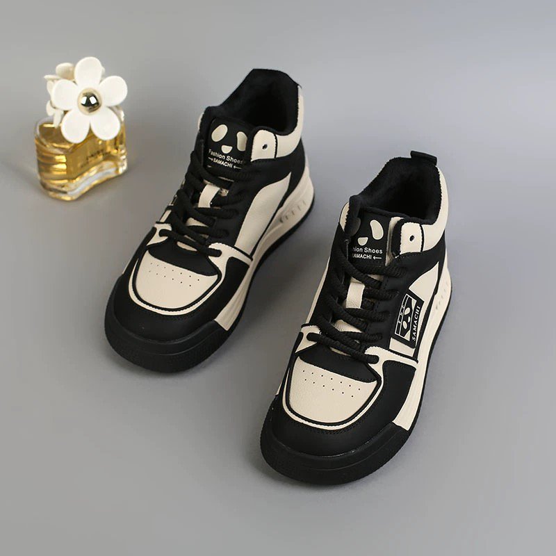康珊高帮女鞋冬季加绒保暖厚底真皮青年黑白熊猫鞋女款休闲鞋