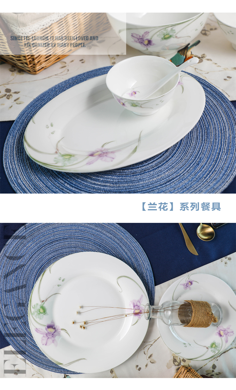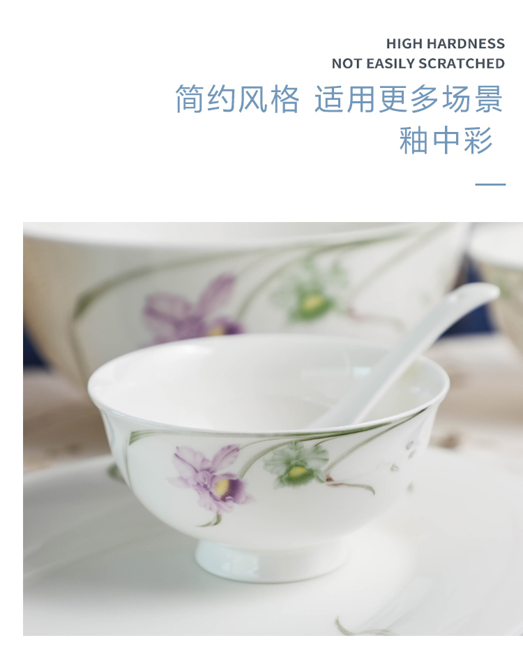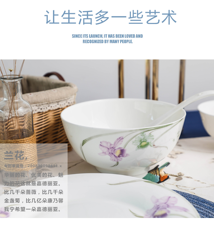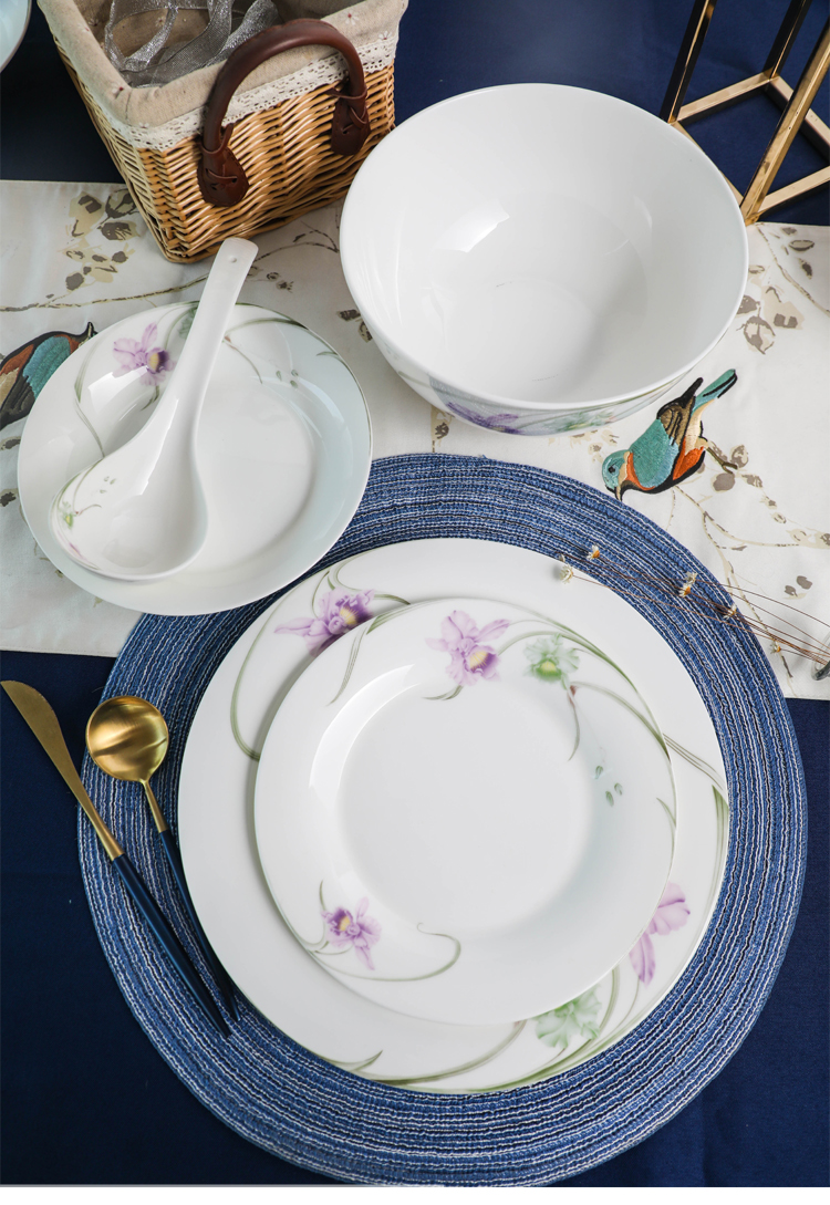 雷澳娜/REONE 骨瓷 兰花大汤碗沙拉碗面碗饭碗平盘菜盘家用碗碟组合自由搭配中式