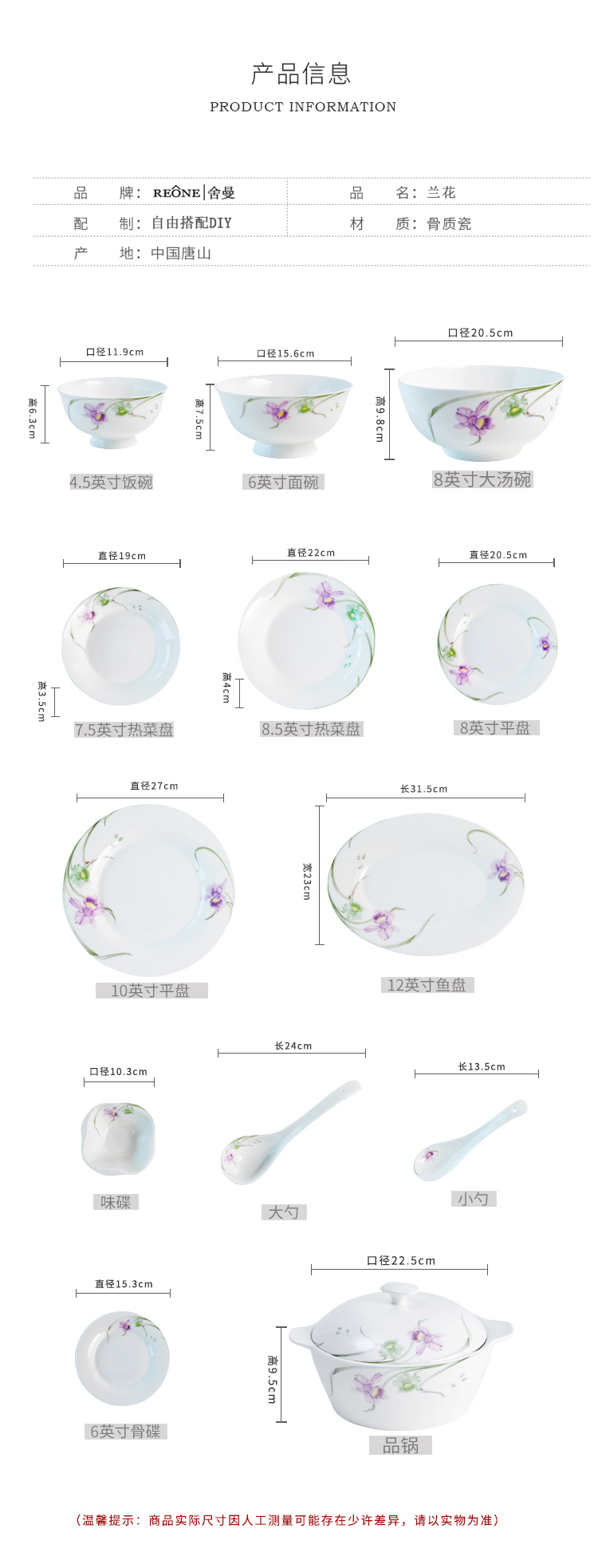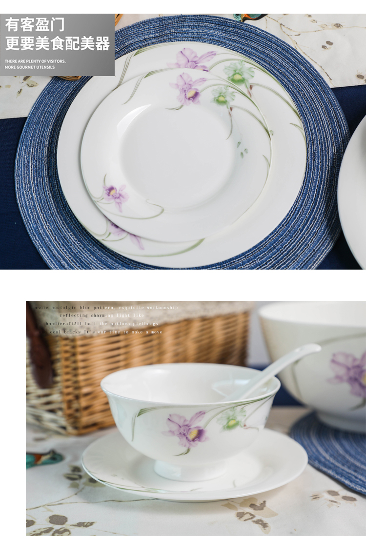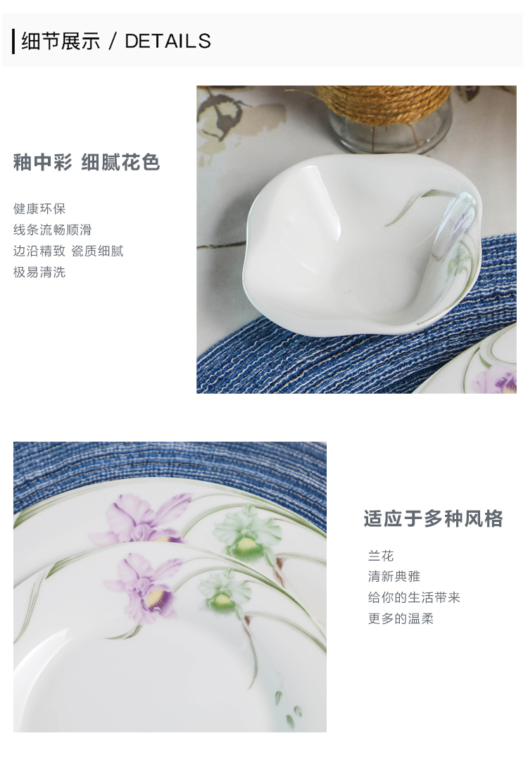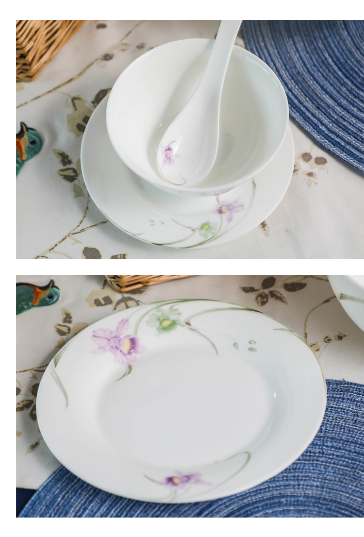雷澳娜/REONE 骨瓷 兰花大汤碗沙拉碗面碗饭碗平盘菜盘家用碗碟组合自由搭配中式