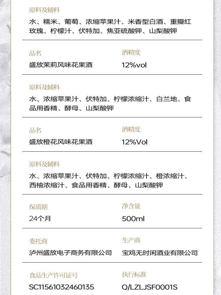 盛放花果酒500ml*6(四种口味任选) 泸州老窖官方旗舰店