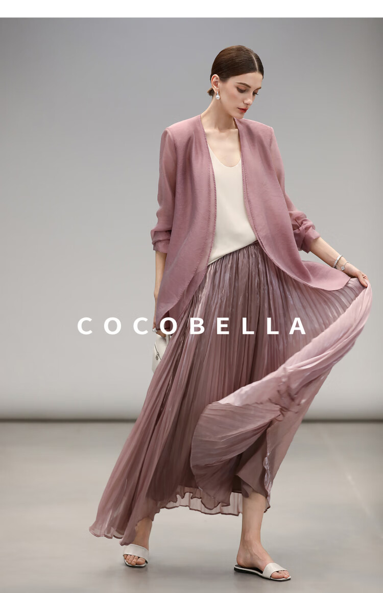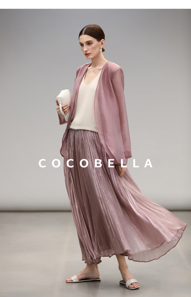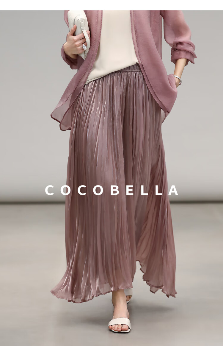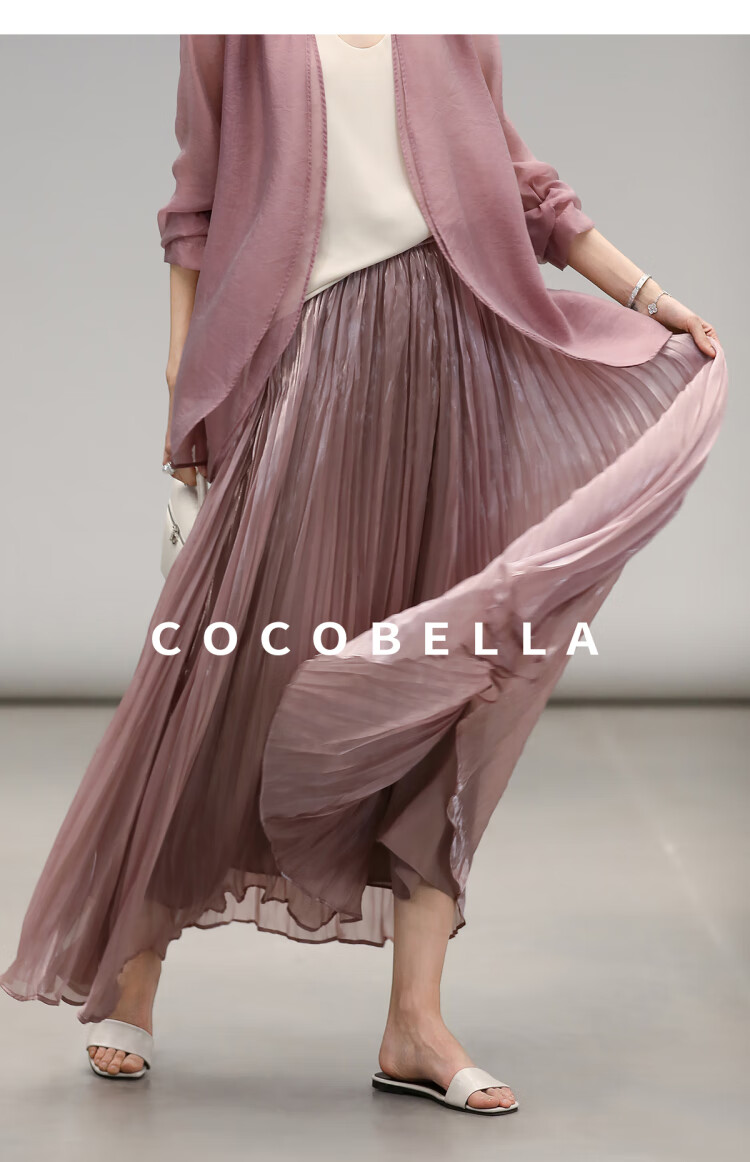 COCOBELLA光泽感重工压褶百褶裙女时尚优雅大摆半身裙HS7070