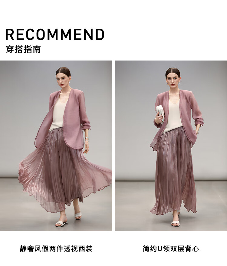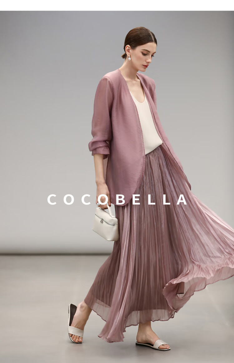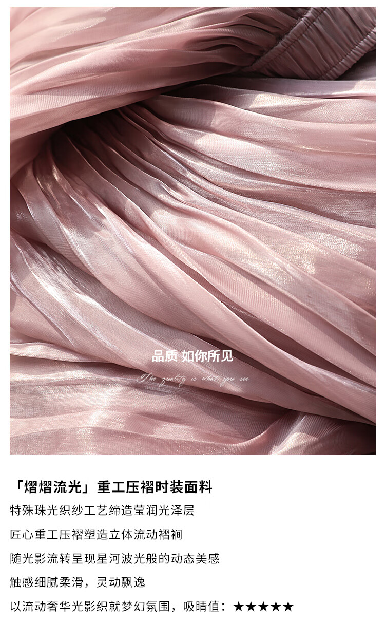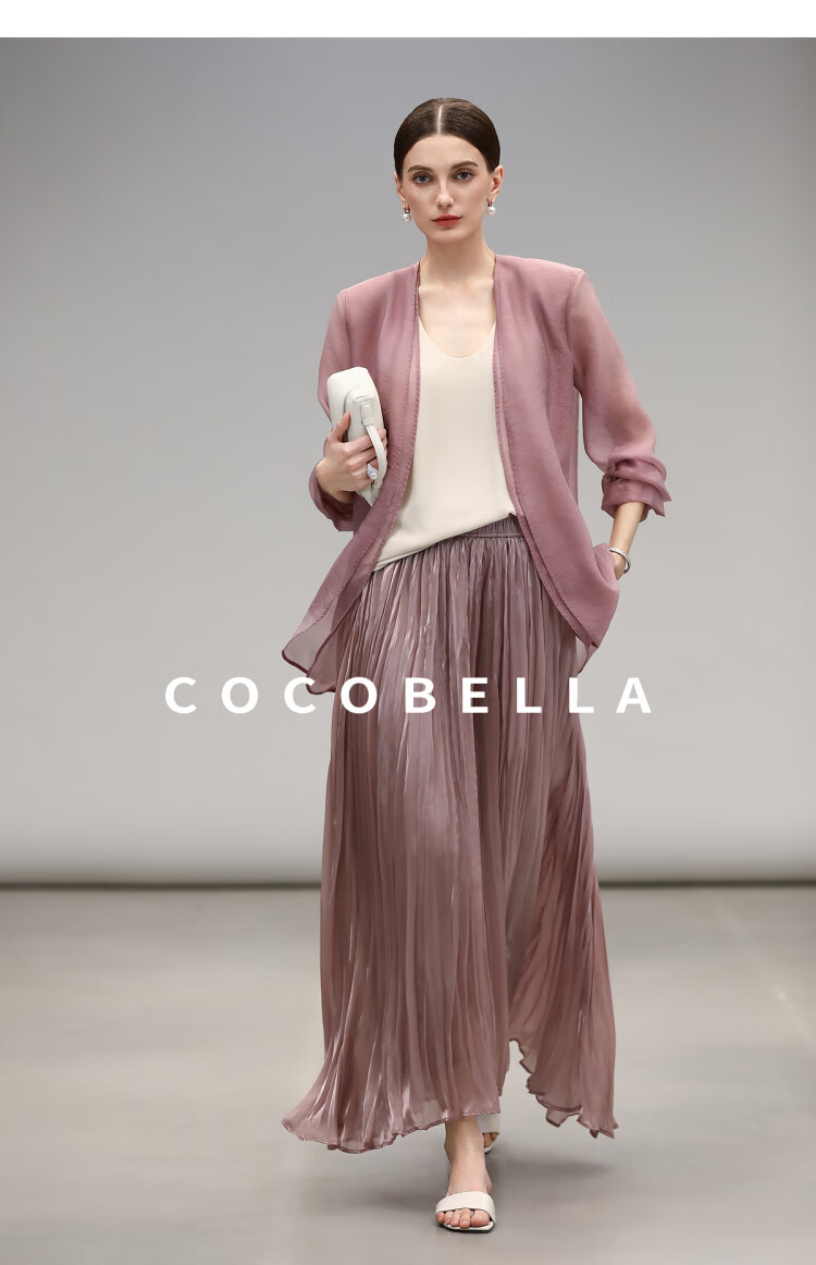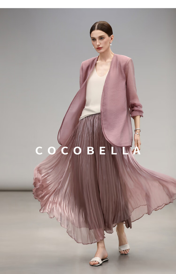 COCOBELLA光泽感重工压褶百褶裙女时尚优雅大摆半身裙HS7070