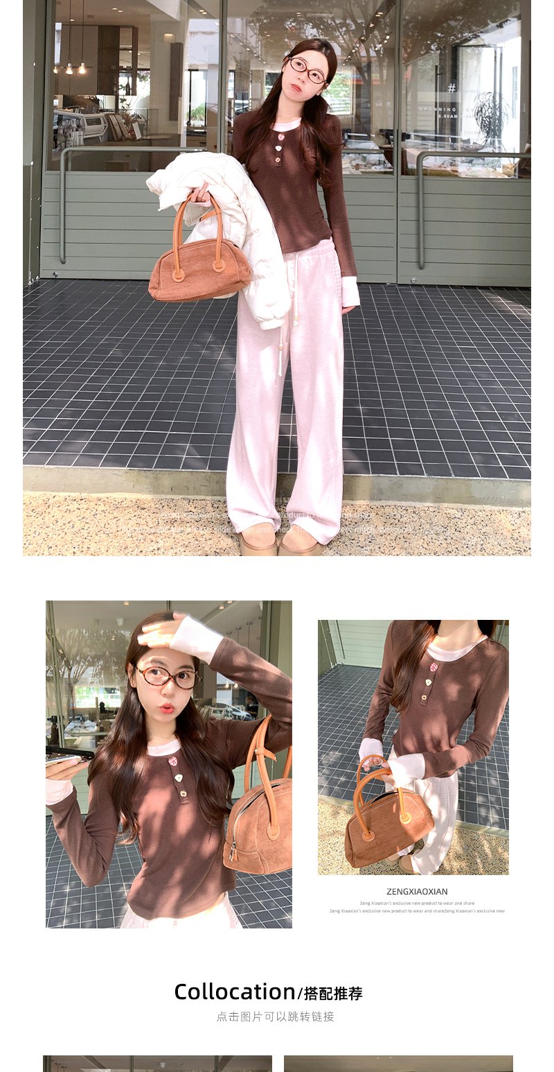 <曾小咸推荐> 现货秒杀!微信超特价!假两件棕色长袖t恤 日常129.99 立减70 秒杀59.99!