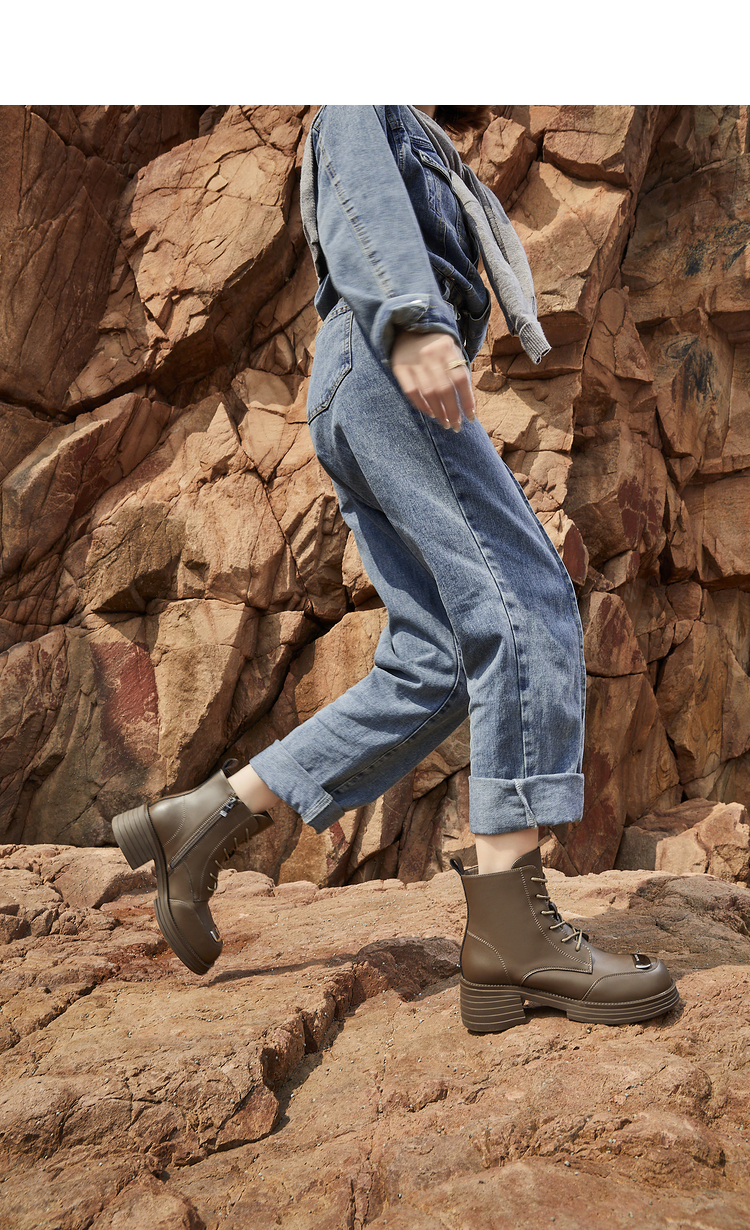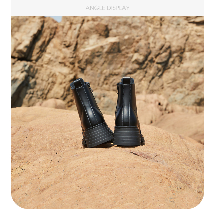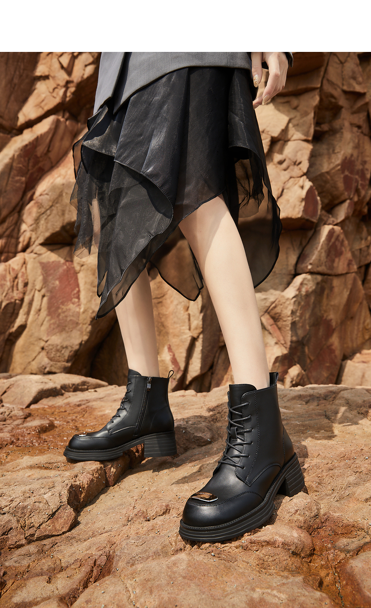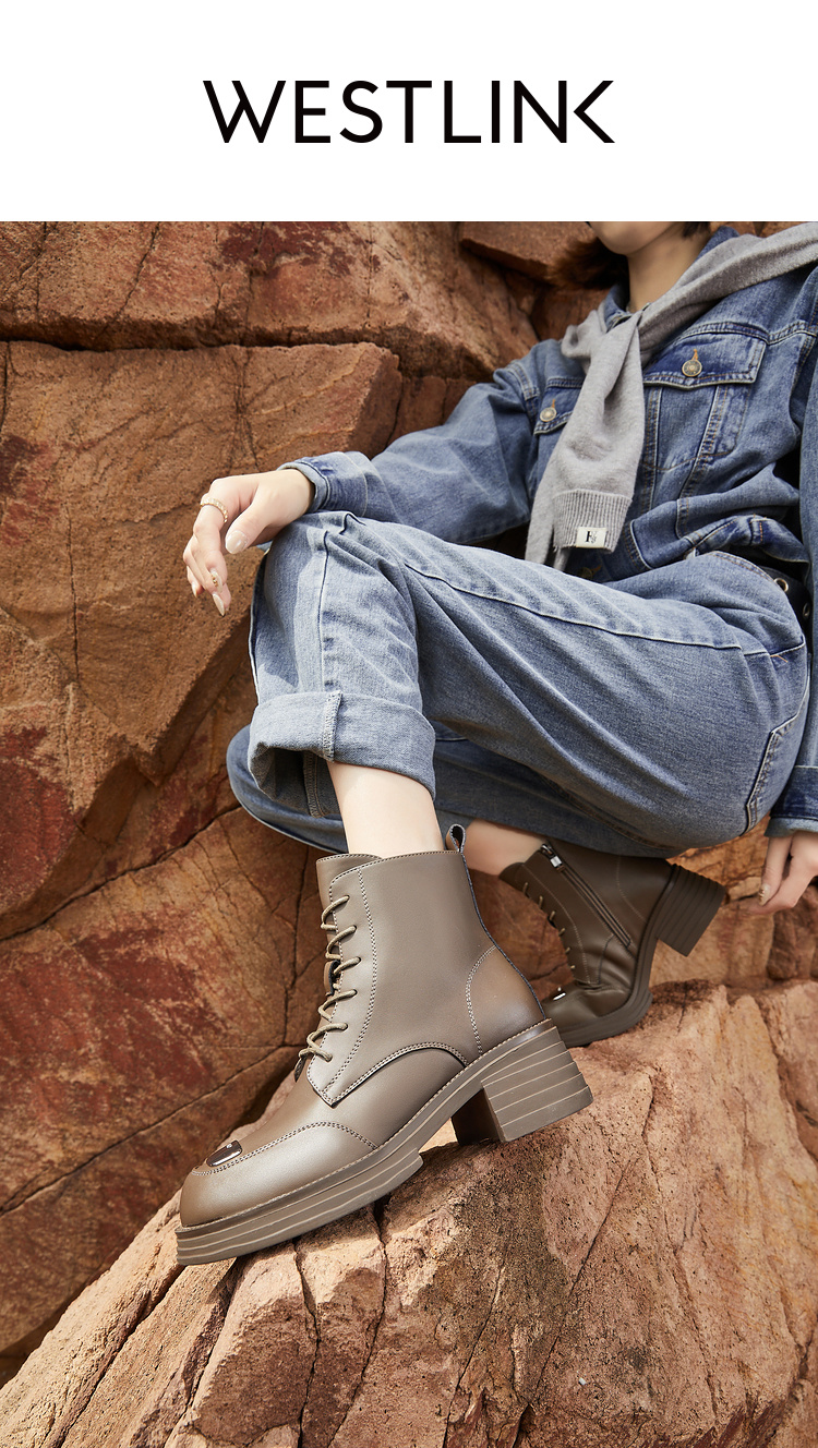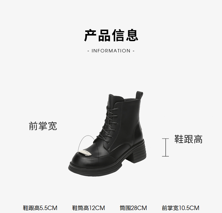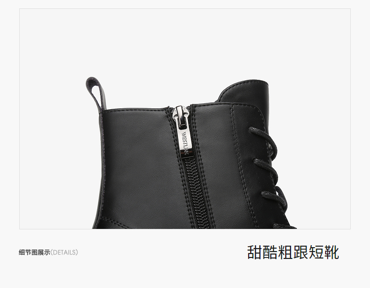 西遇厚底马丁靴女新款秋冬英伦风甜酷工装靴小个子粗跟短靴子20034376