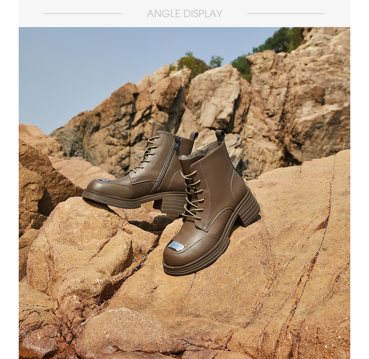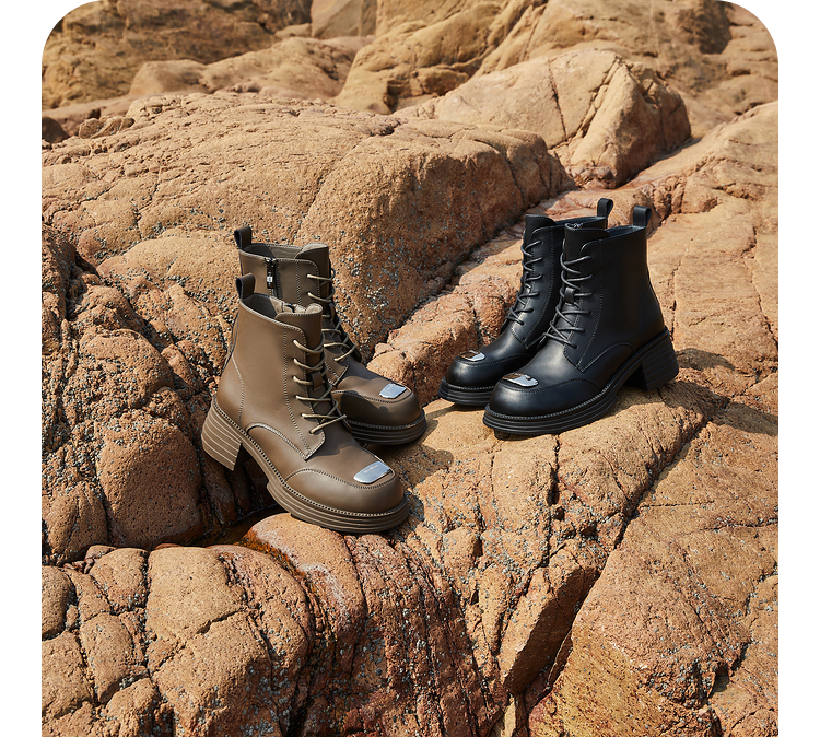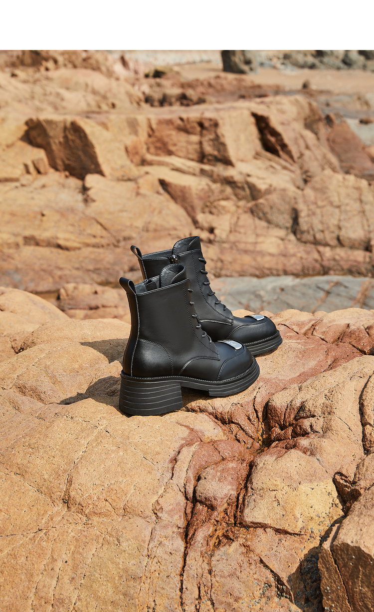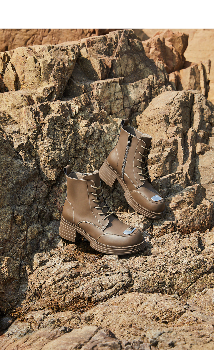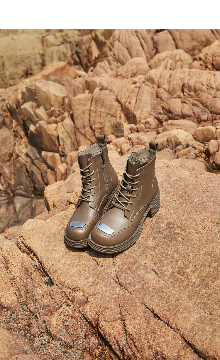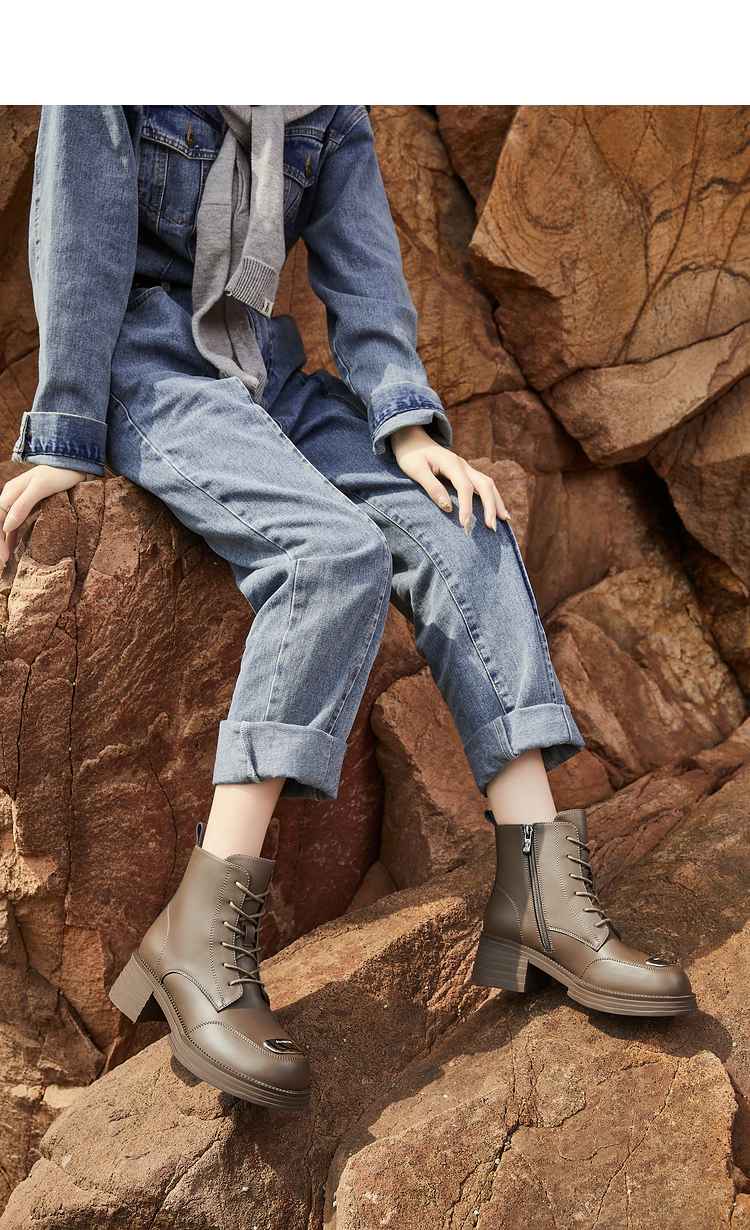 西遇厚底马丁靴女新款秋冬英伦风甜酷工装靴小个子粗跟短靴子20034376