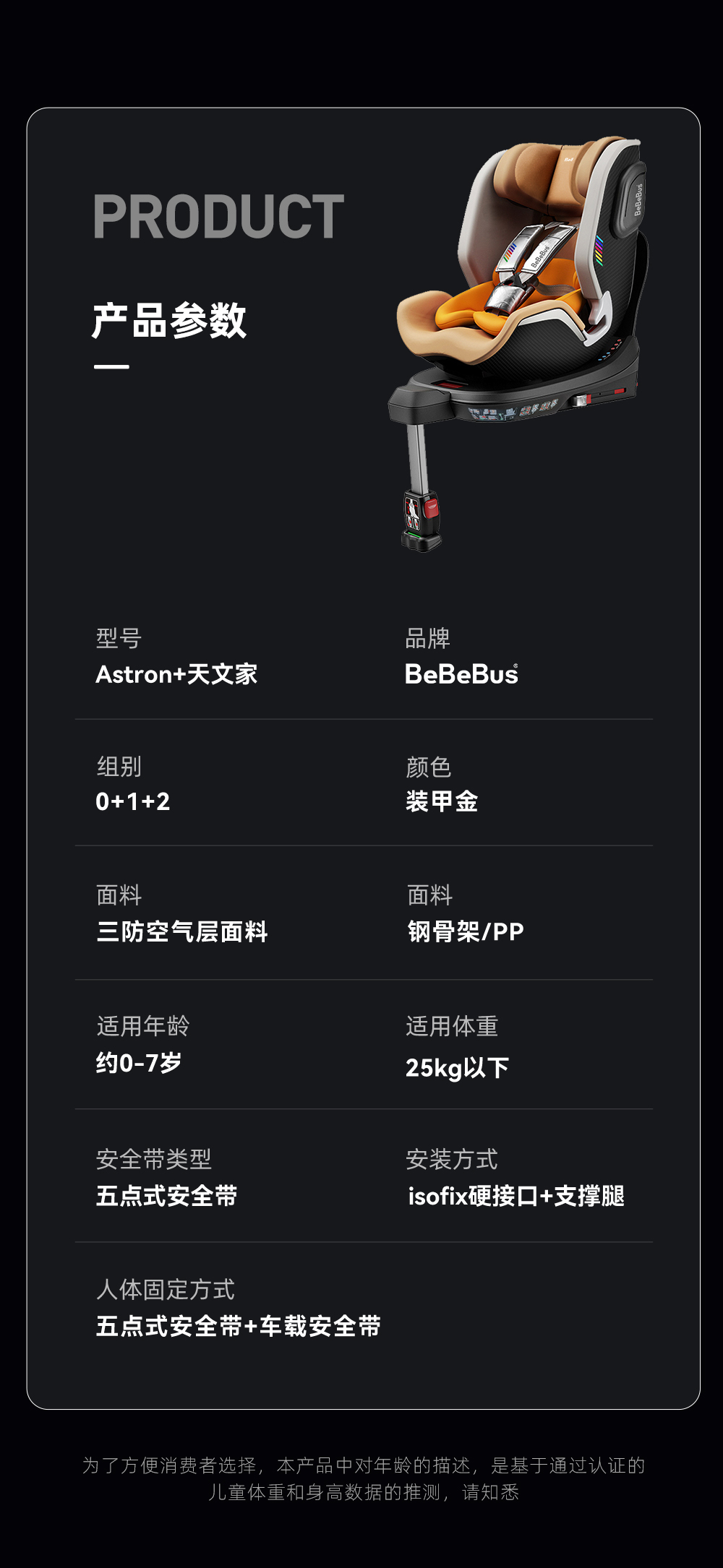 BeBeBus天文家pro智能 新生婴儿安全座椅车载通风(适用0~7岁)