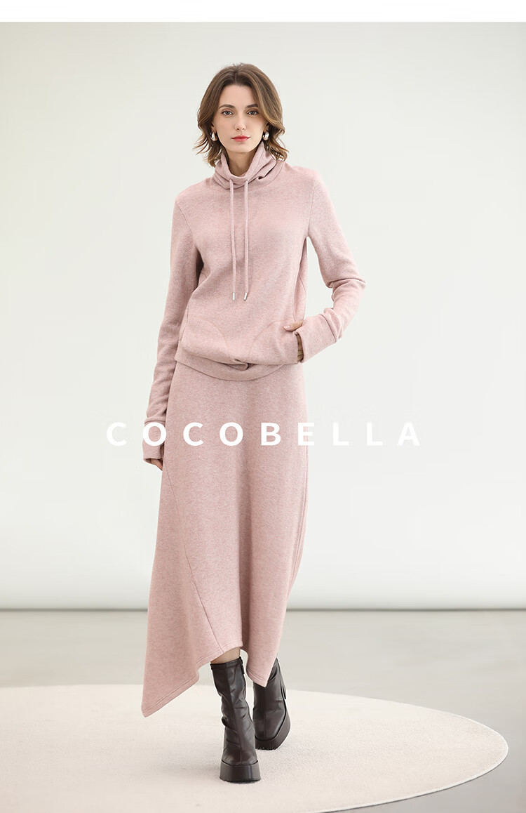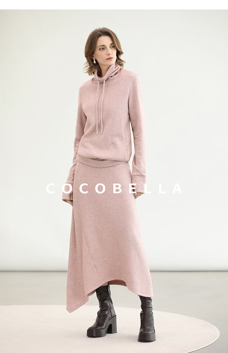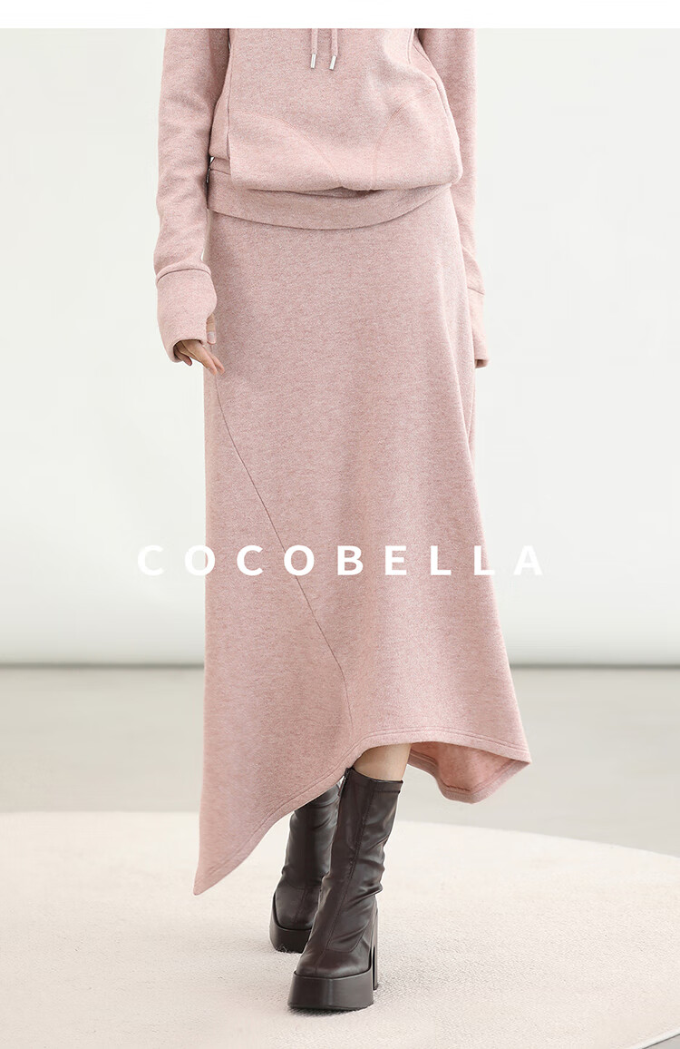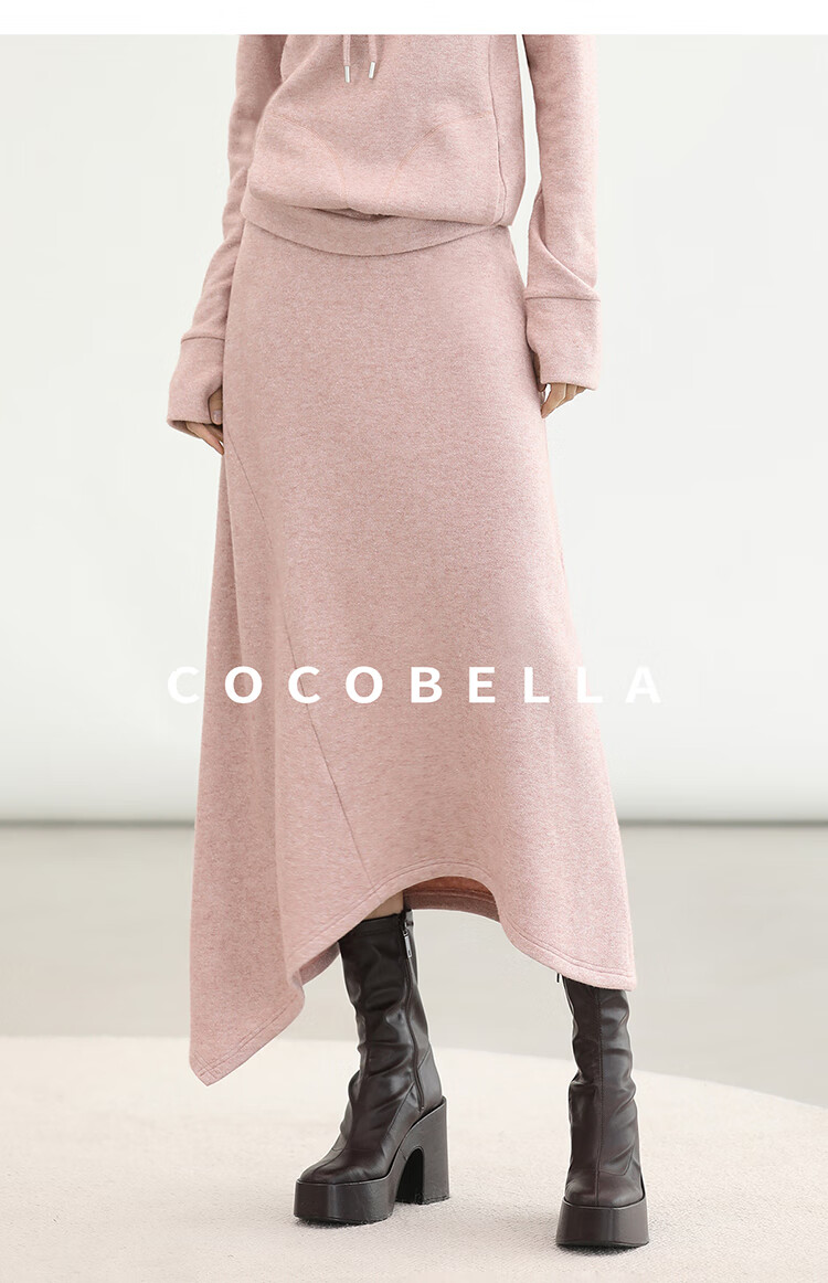COCOBELLA粉色休闲A字半身裙女弧形下摆25秋冬针织长裙HS3163