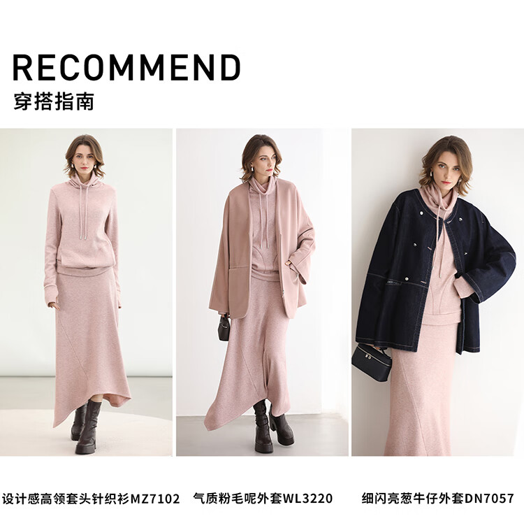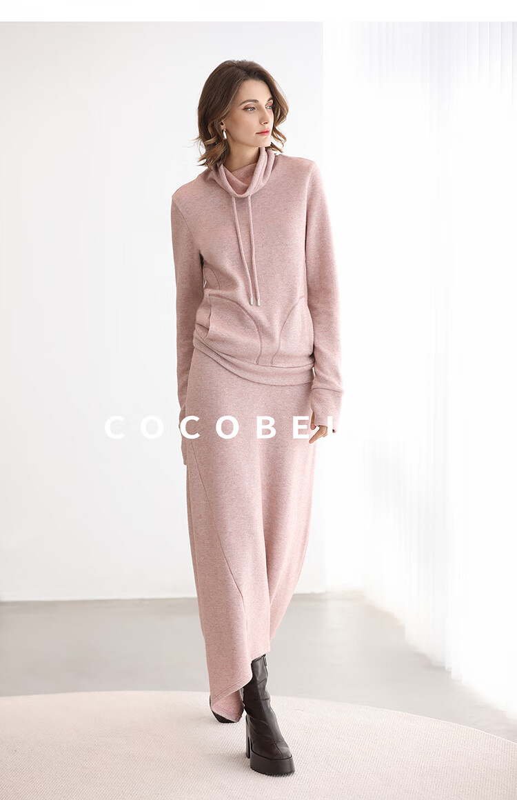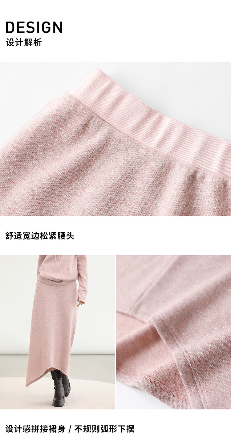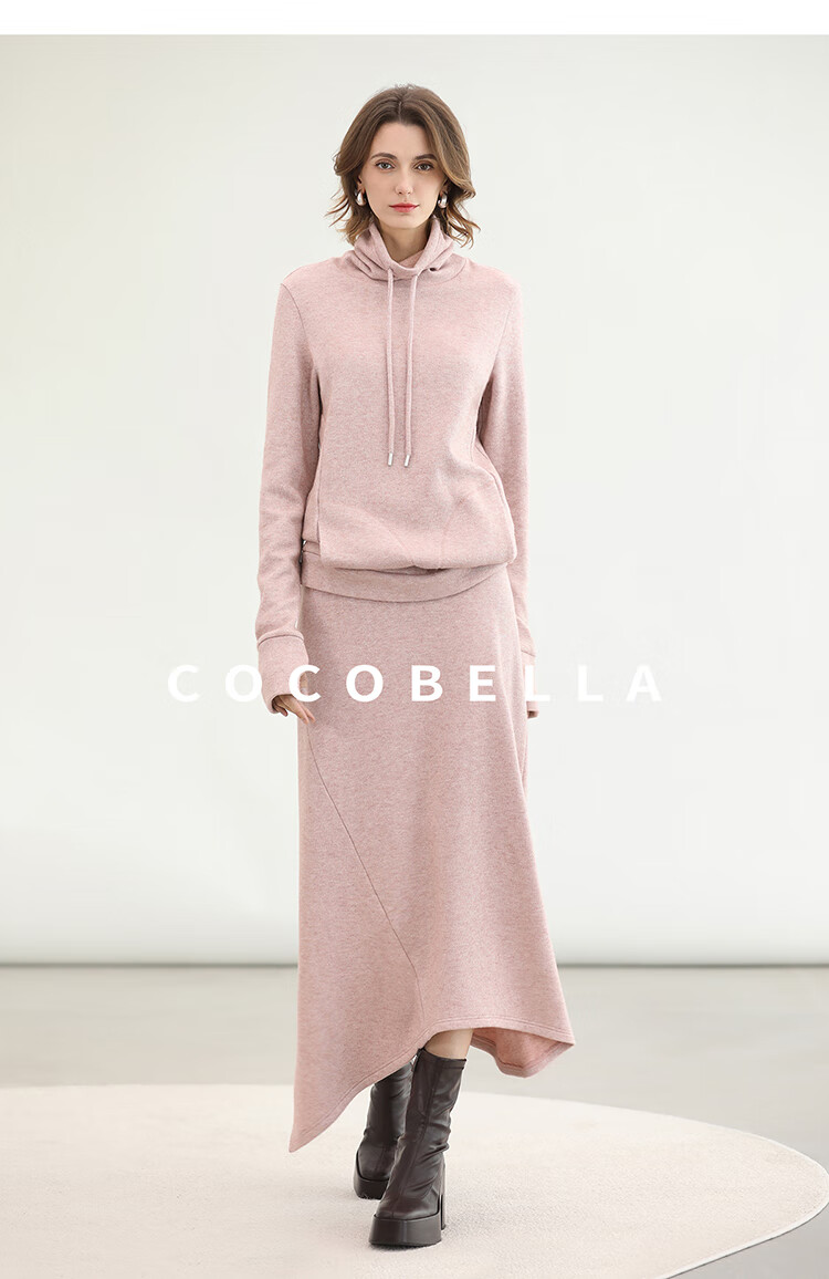 COCOBELLA粉色休闲A字半身裙女弧形下摆25秋冬针织长裙HS3163