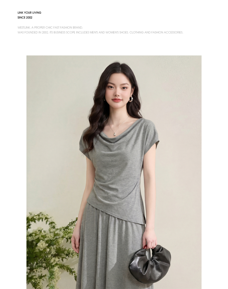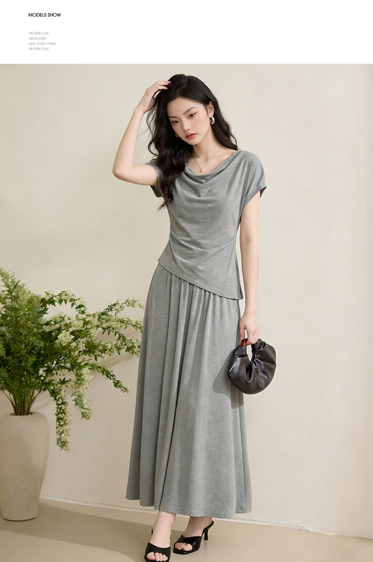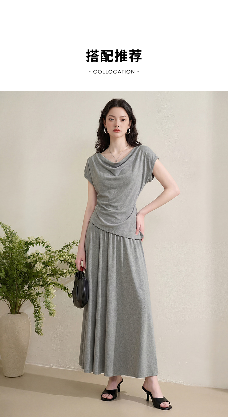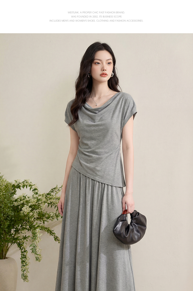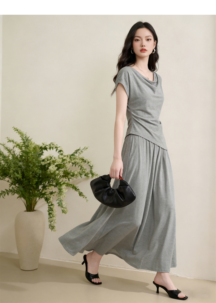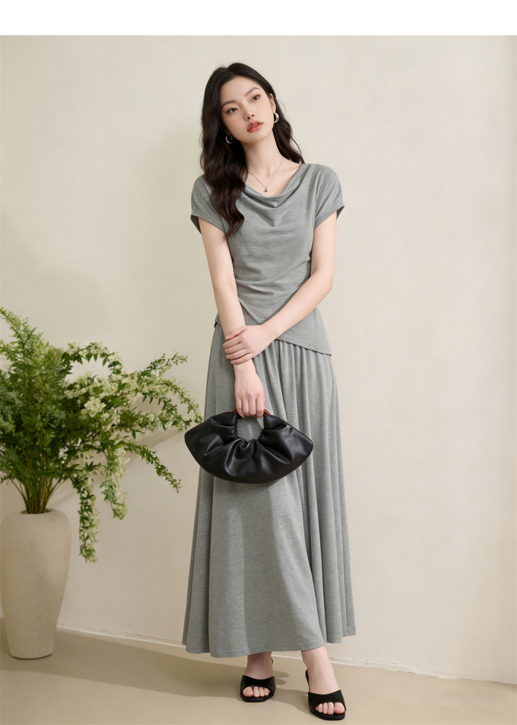 【限时秒杀】西遇法式慵懒风2026春夏新款气质短袖收腰显瘦裙子灰色T恤连衣裙H0060215