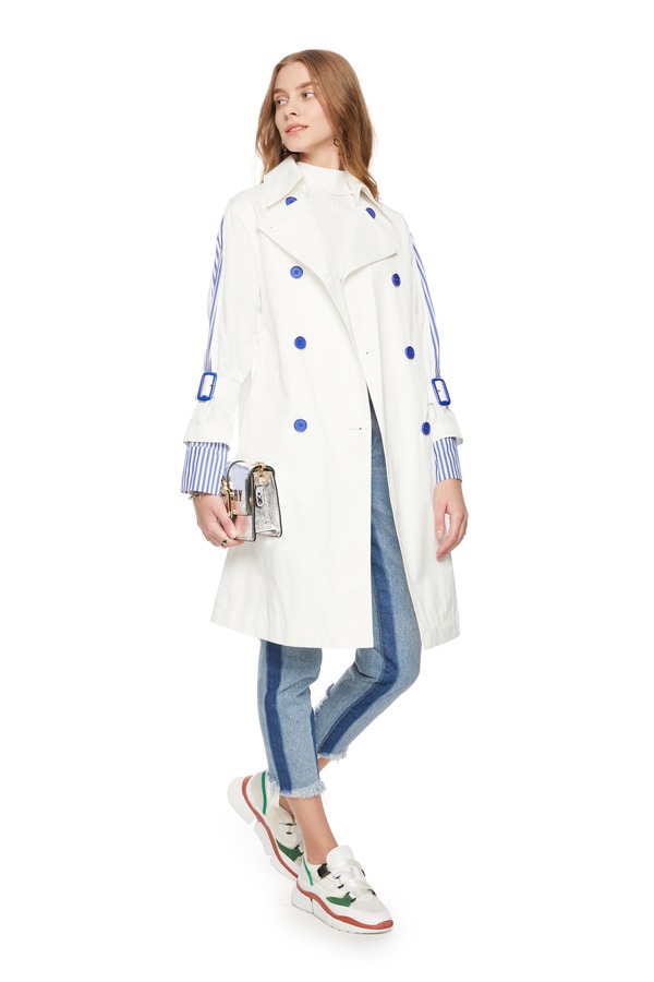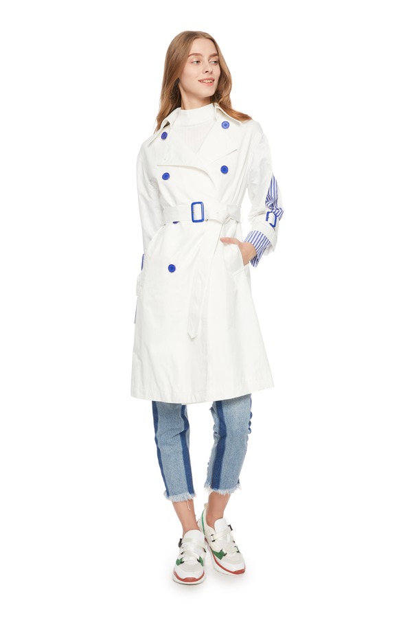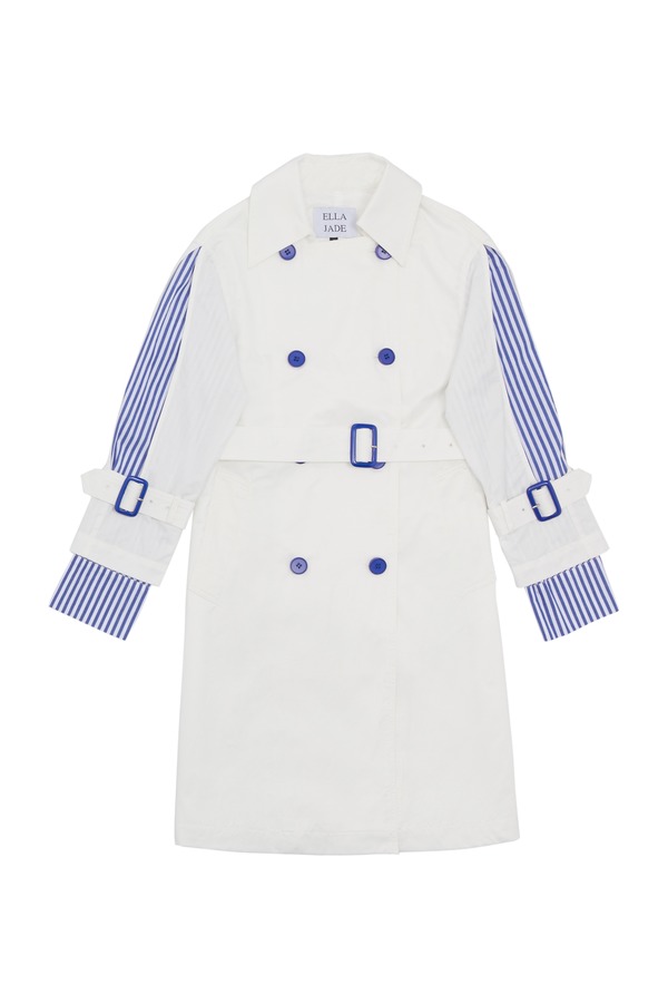 ELLA JADE 条纹拼接双排扣风衣 6146