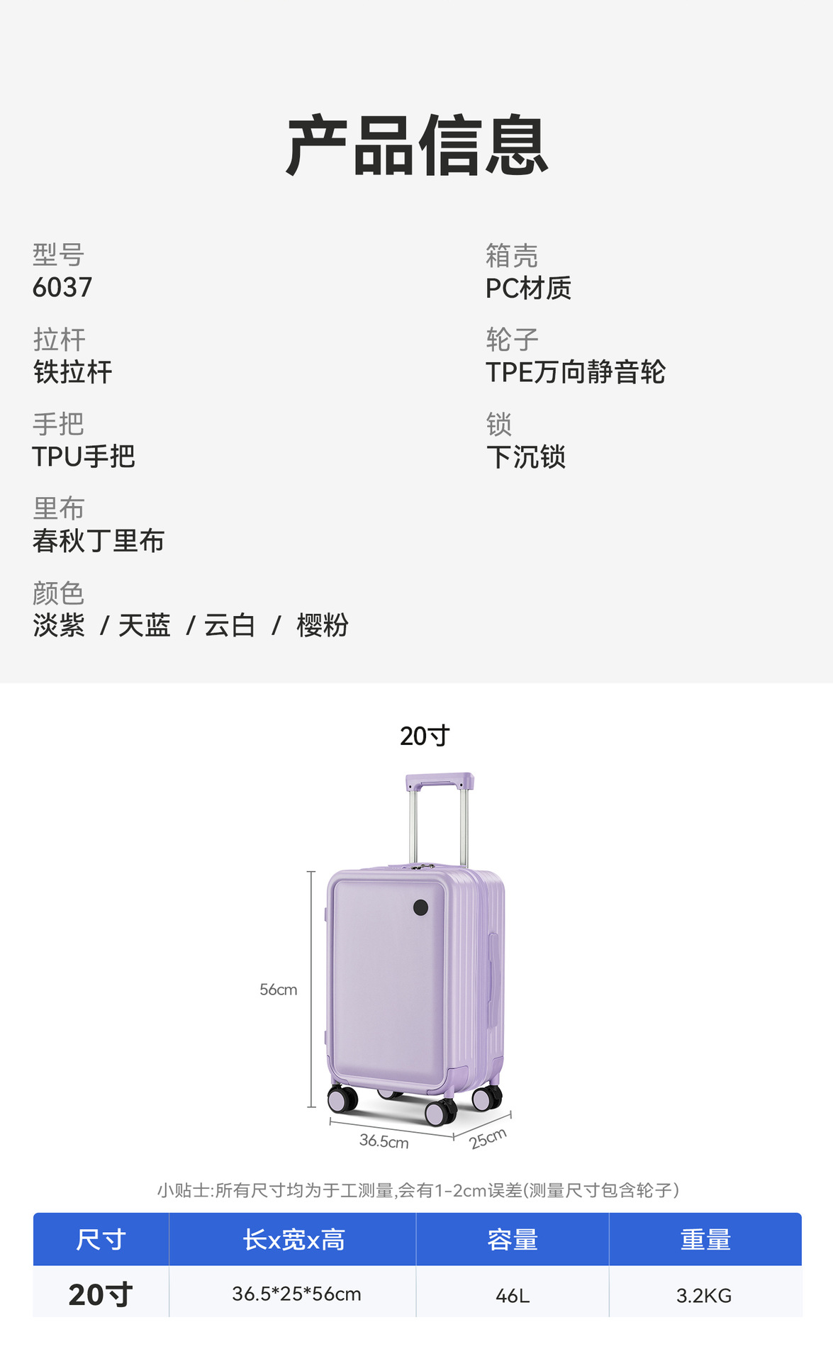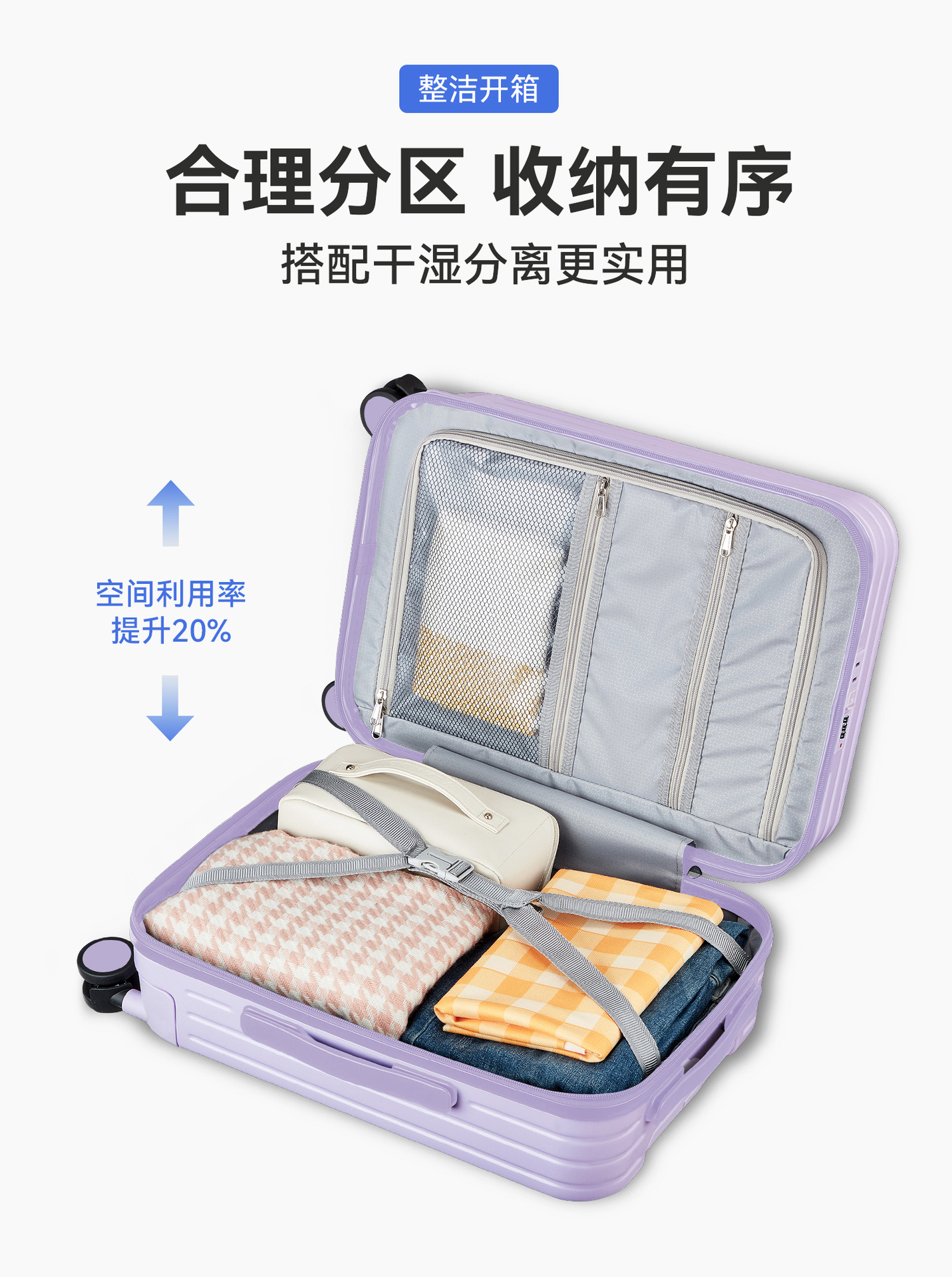 自然醒PC行李箱20寸静音万向轮登机箱大容量抗摔旅行箱YS6037