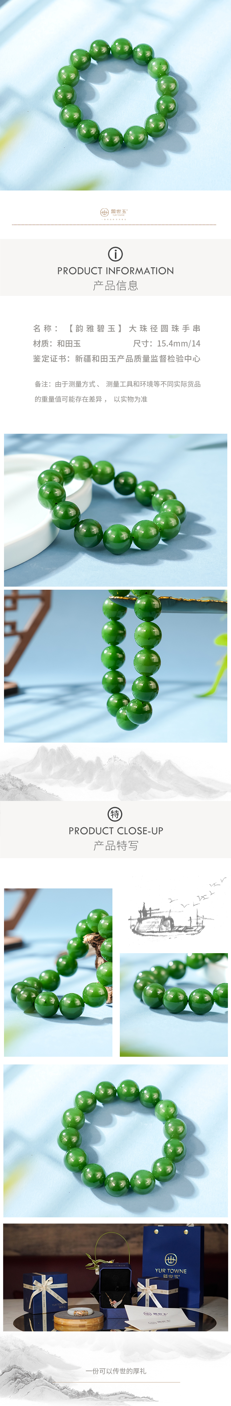 「一口价」新疆国玉盟世玉【凝翠硕珠】碧玉手链