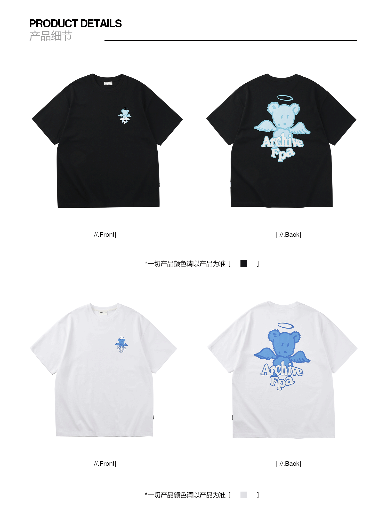 FPA(VENGETICE)小熊印花短袖T恤 国潮牌夏季纯棉宽松情侣装半袖男