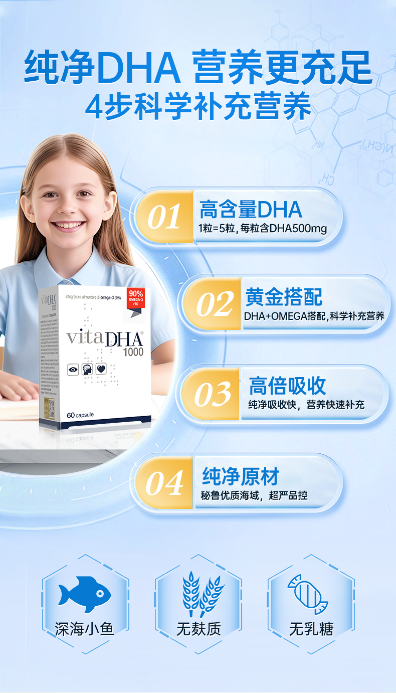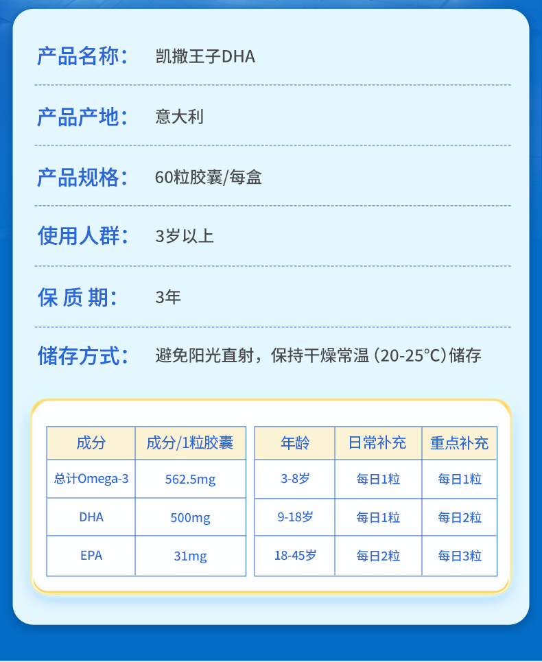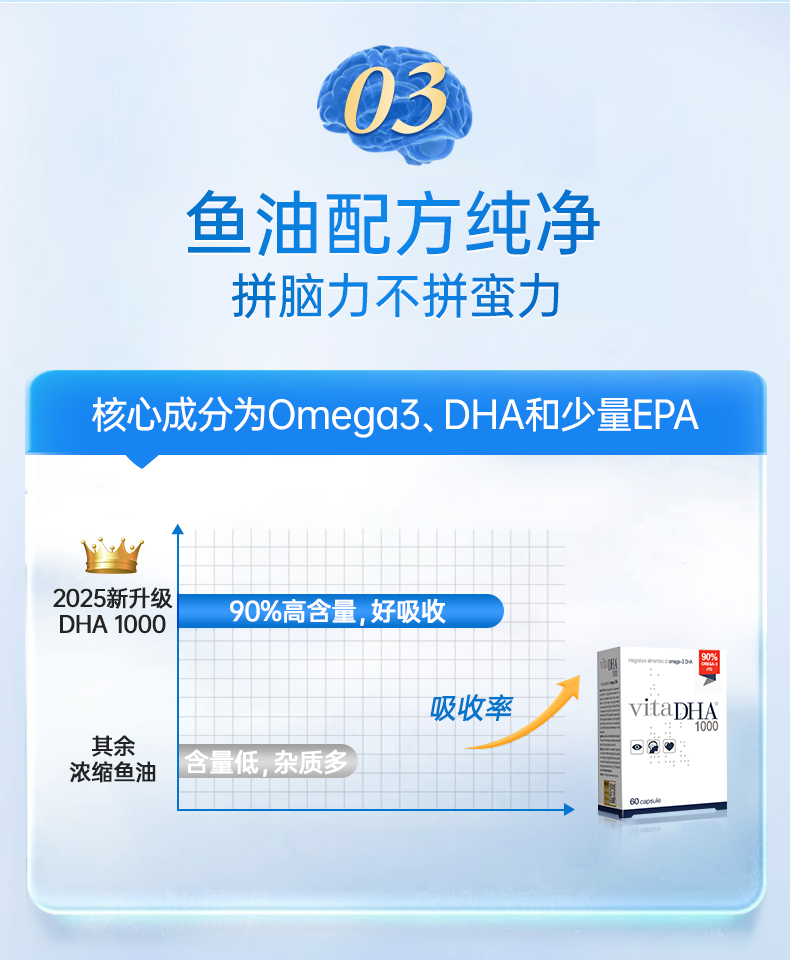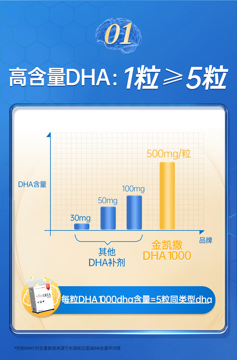 【团长专属】金凯撒王子90%纯度补脑记忆力鱼油vitaDHA1000初高中生考研60粒/盒