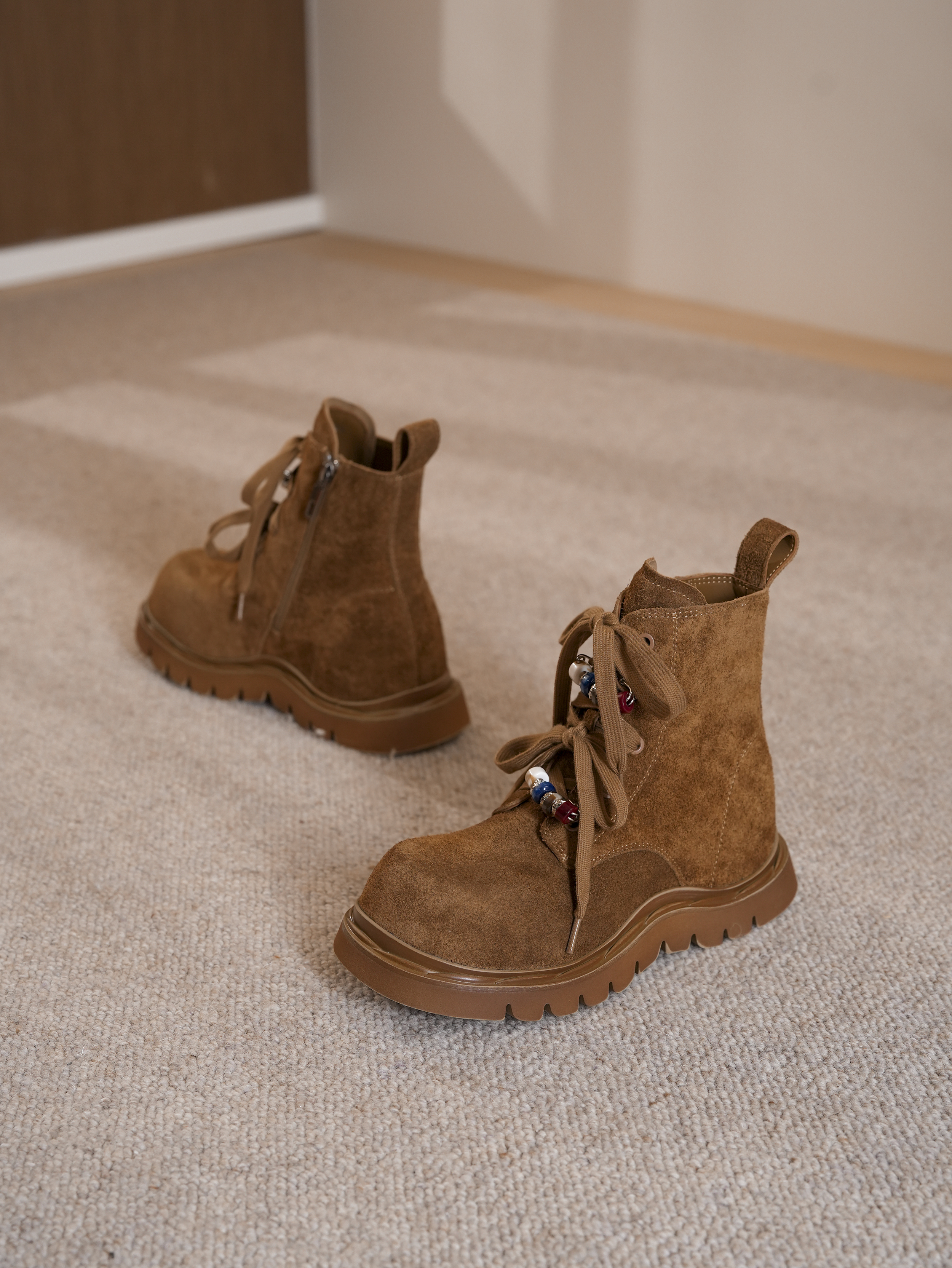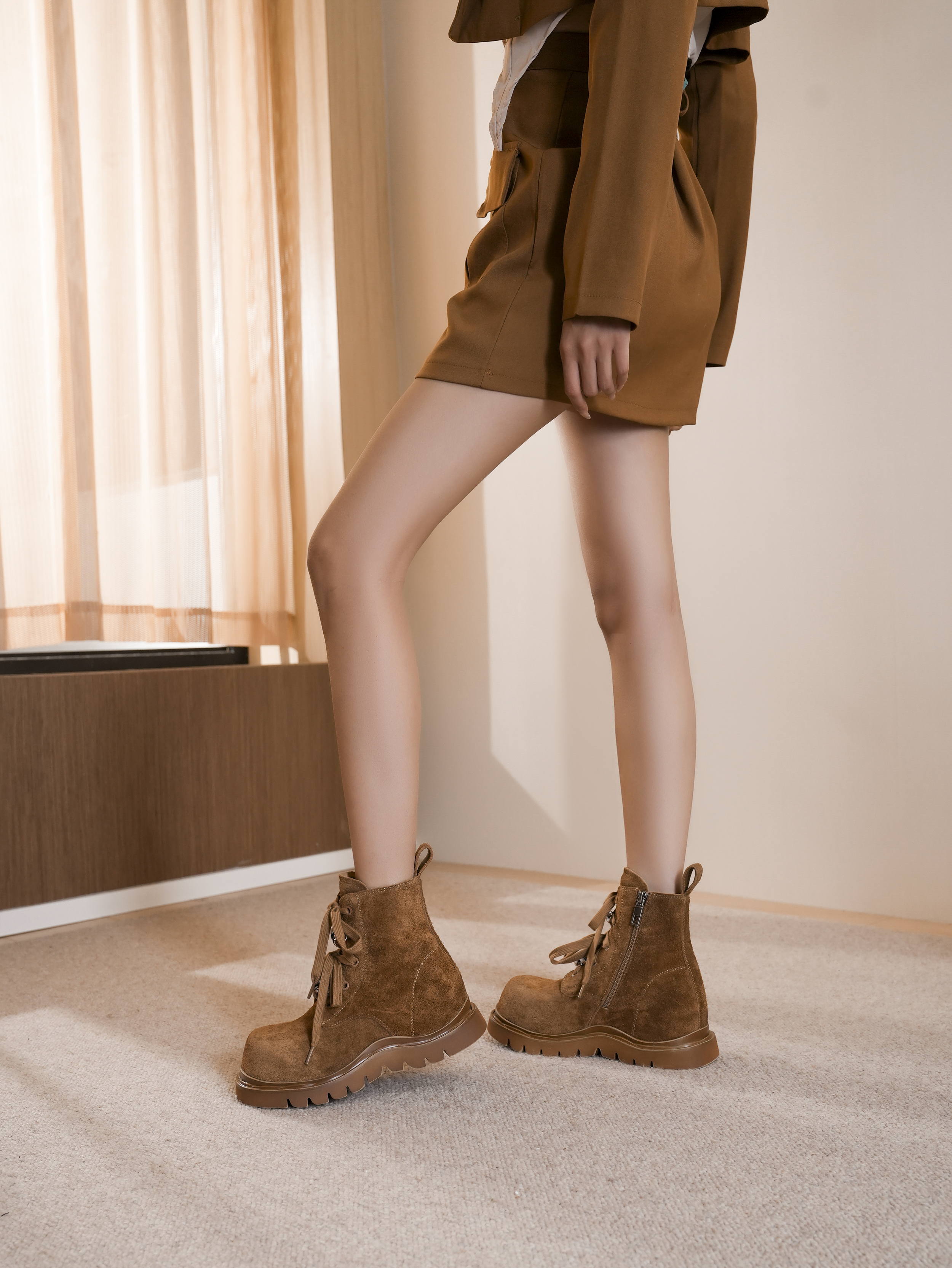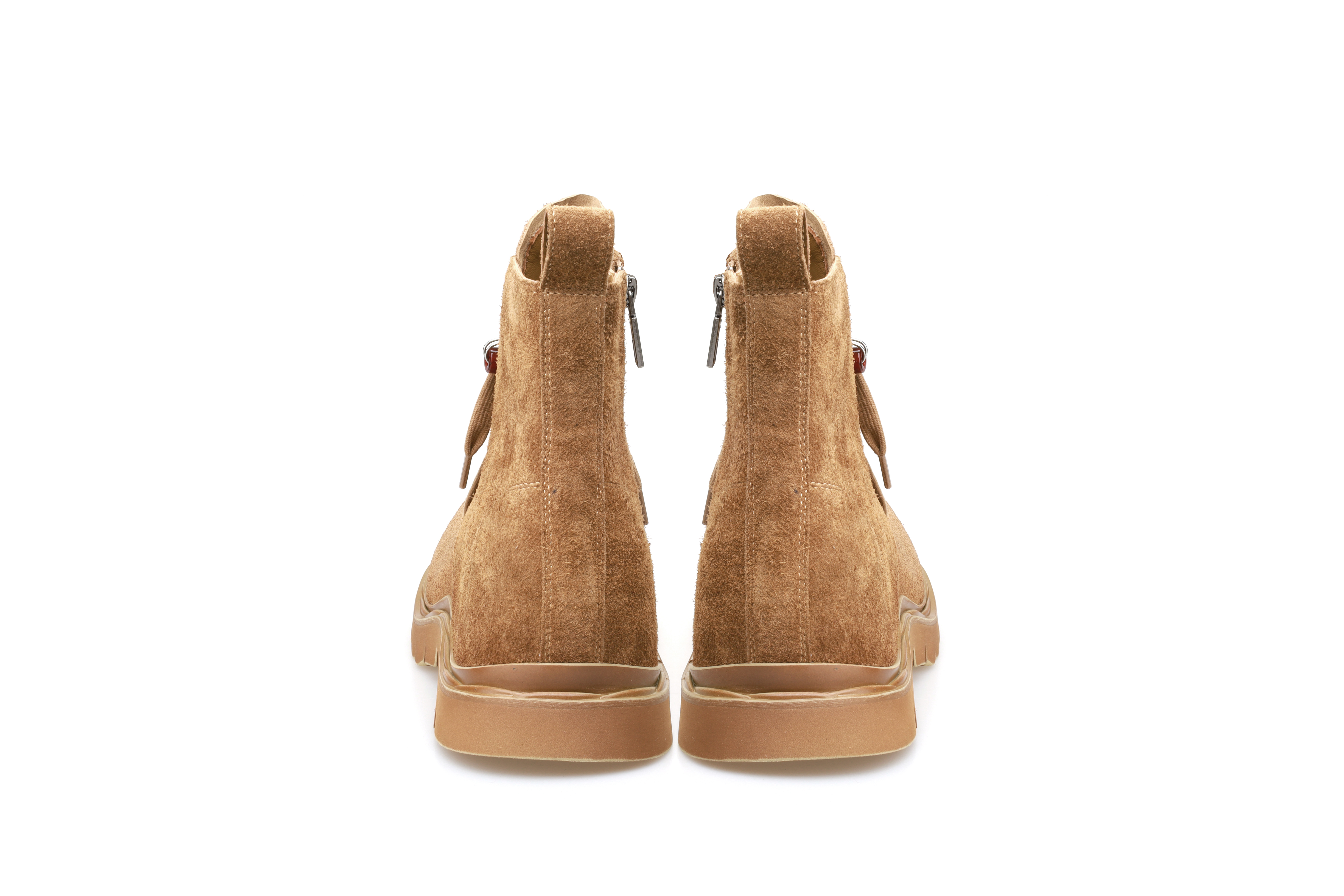 豪麟名鞋迪嘉女鞋马丁靴牛反绒面革DJHJA52WN011土黄色