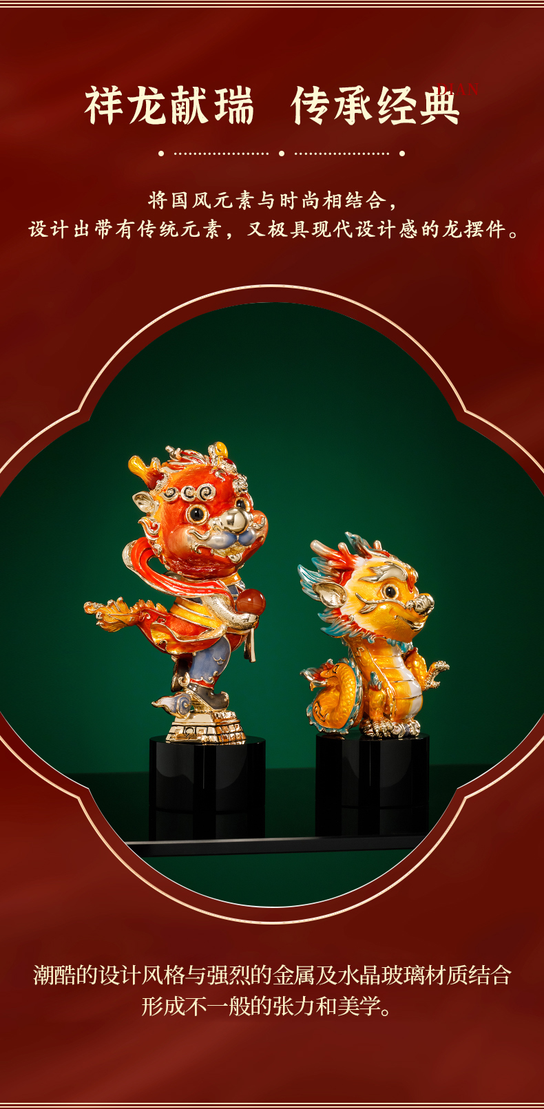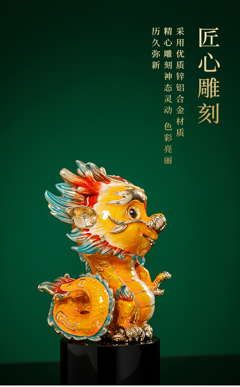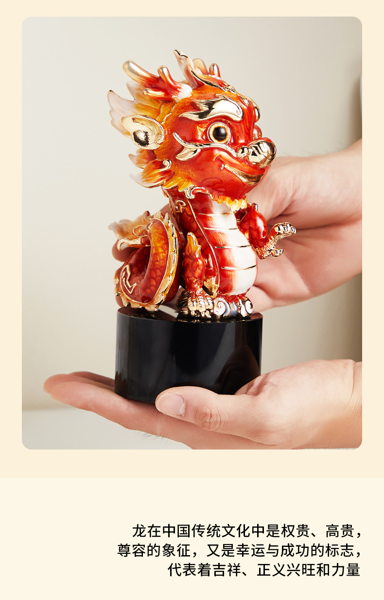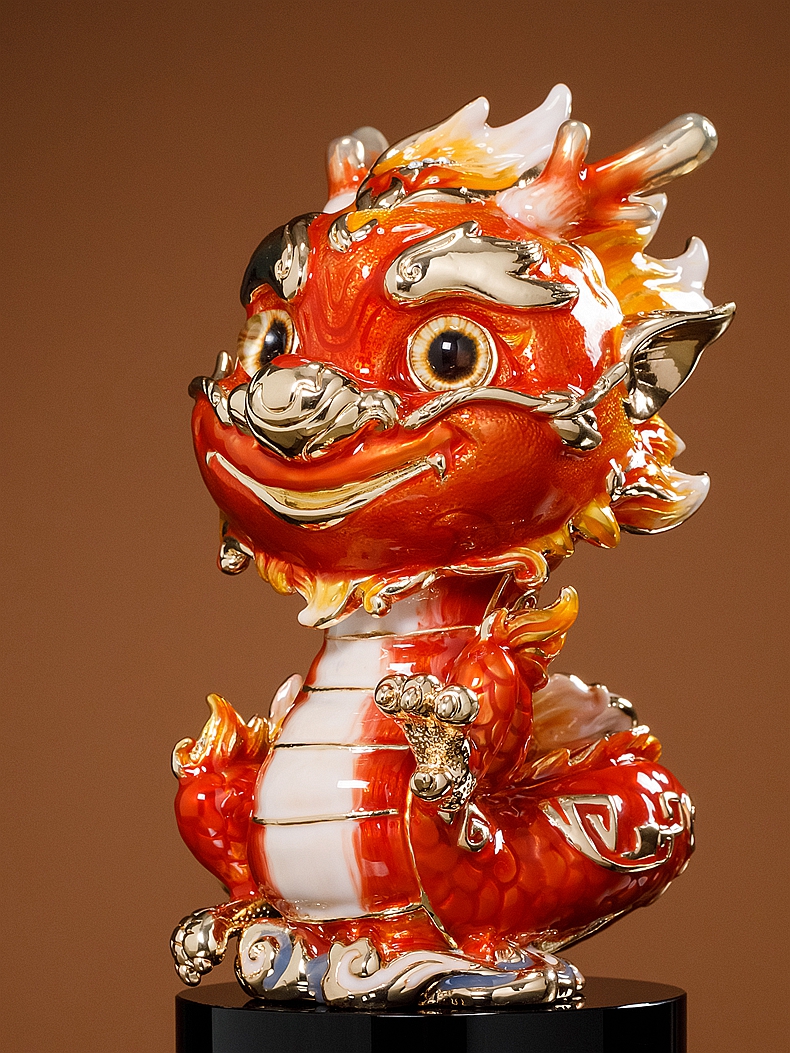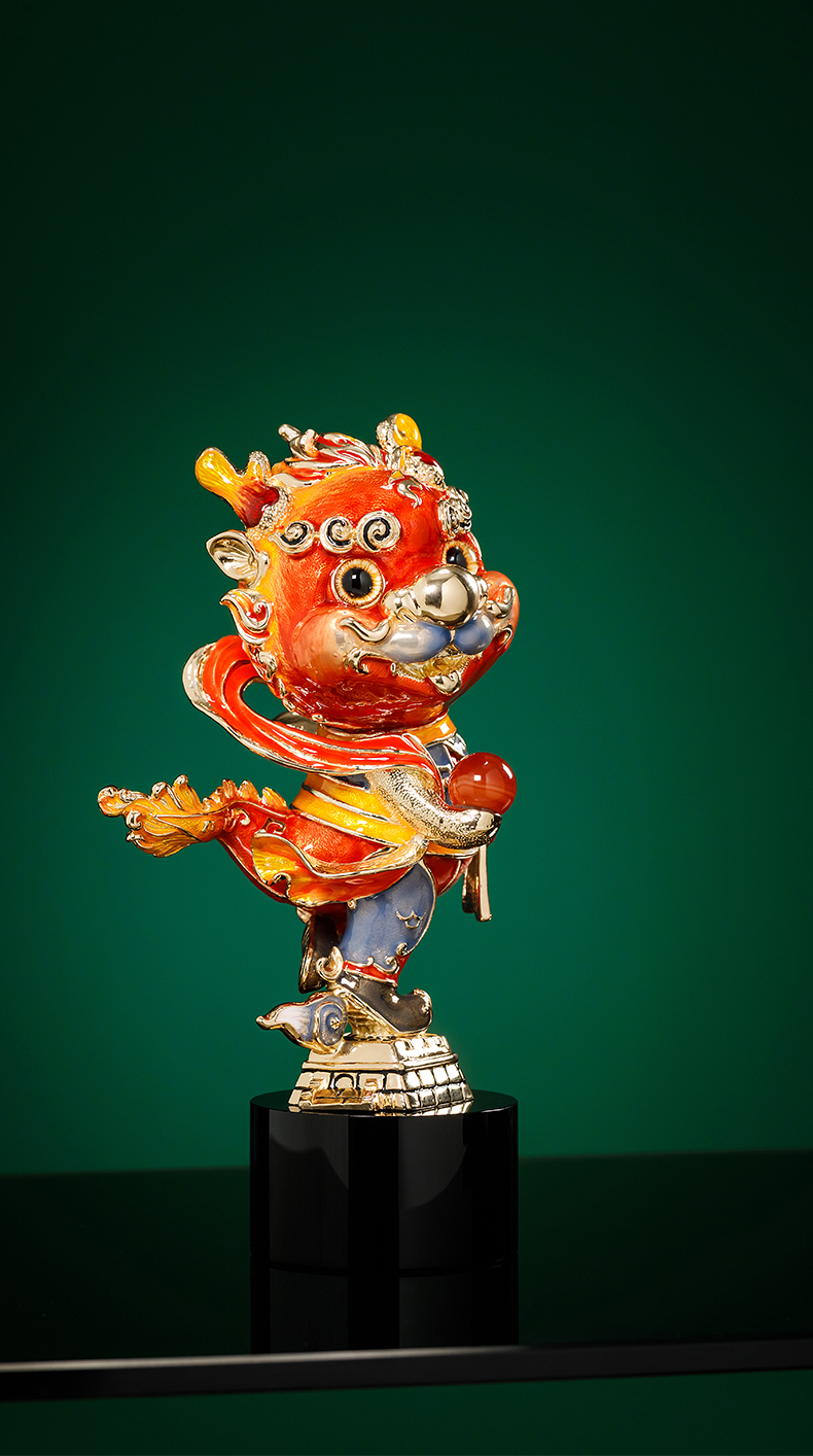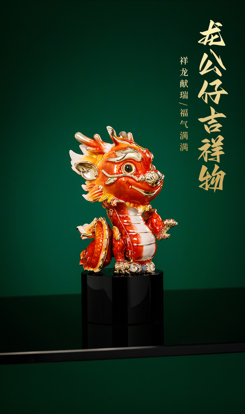 E-NSM-H0457/0458 祥龙纳福珐琅彩摆件 诺诗曼 金色/红色