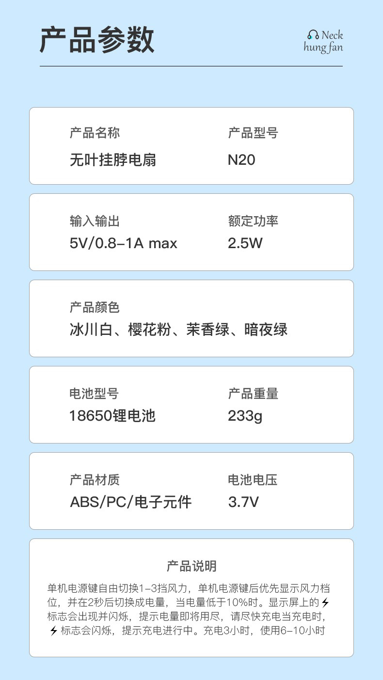 卡通无叶挂脖风扇