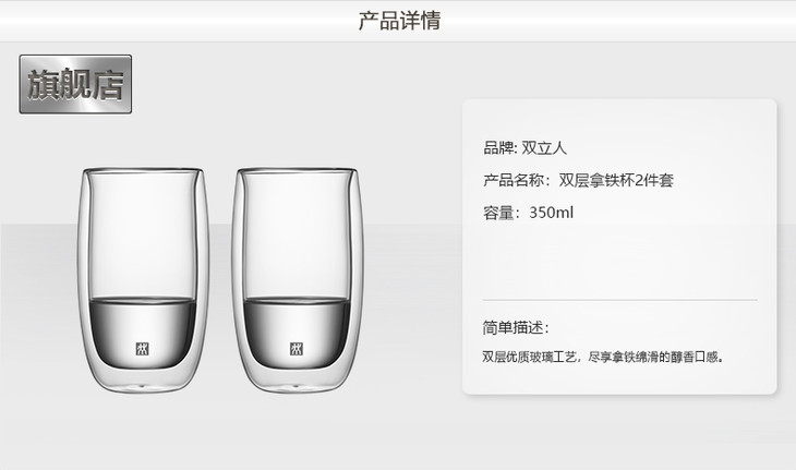 德国双立人双层拿铁杯透明玻璃杯家用咖啡杯牛奶杯2件套