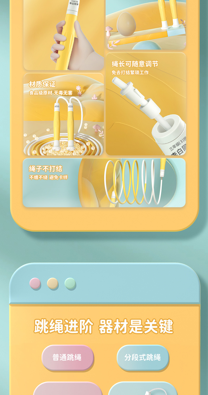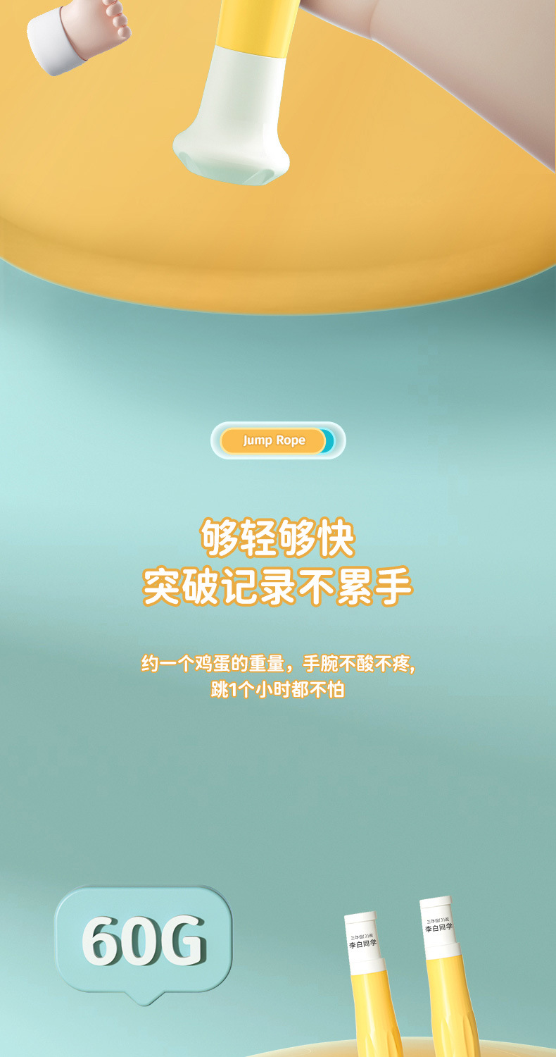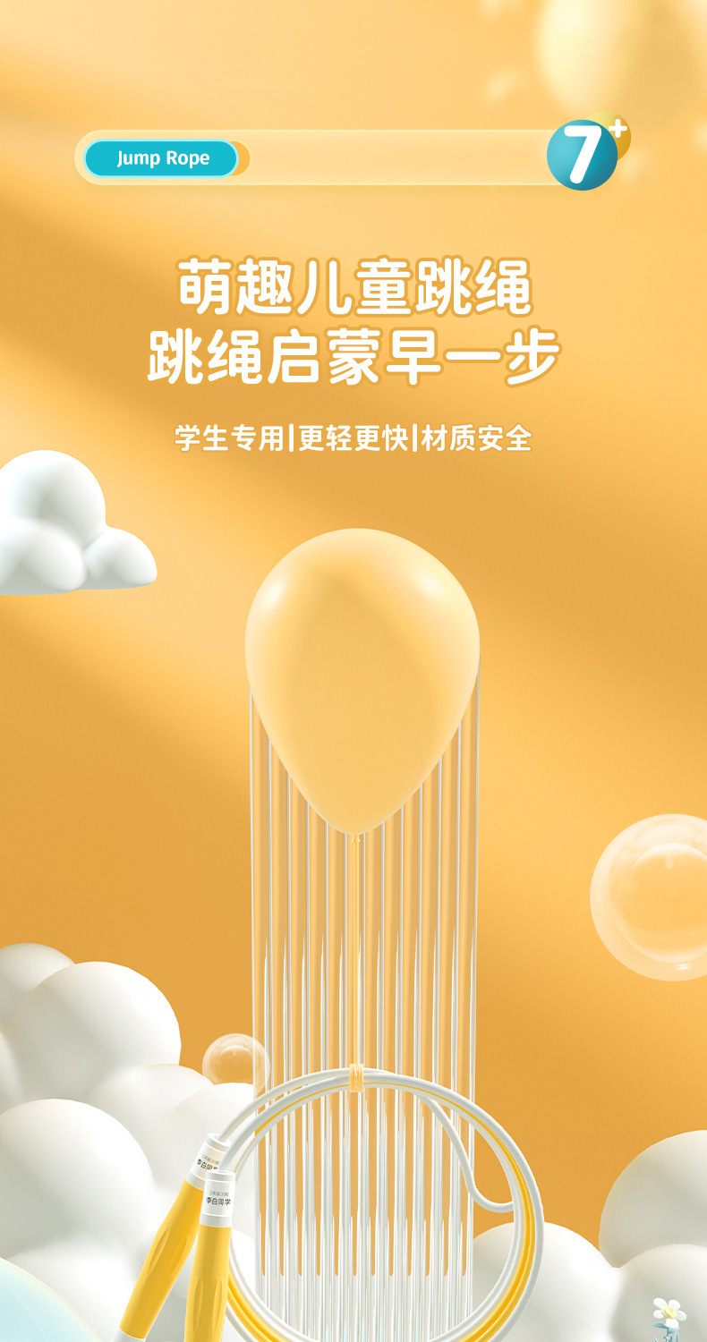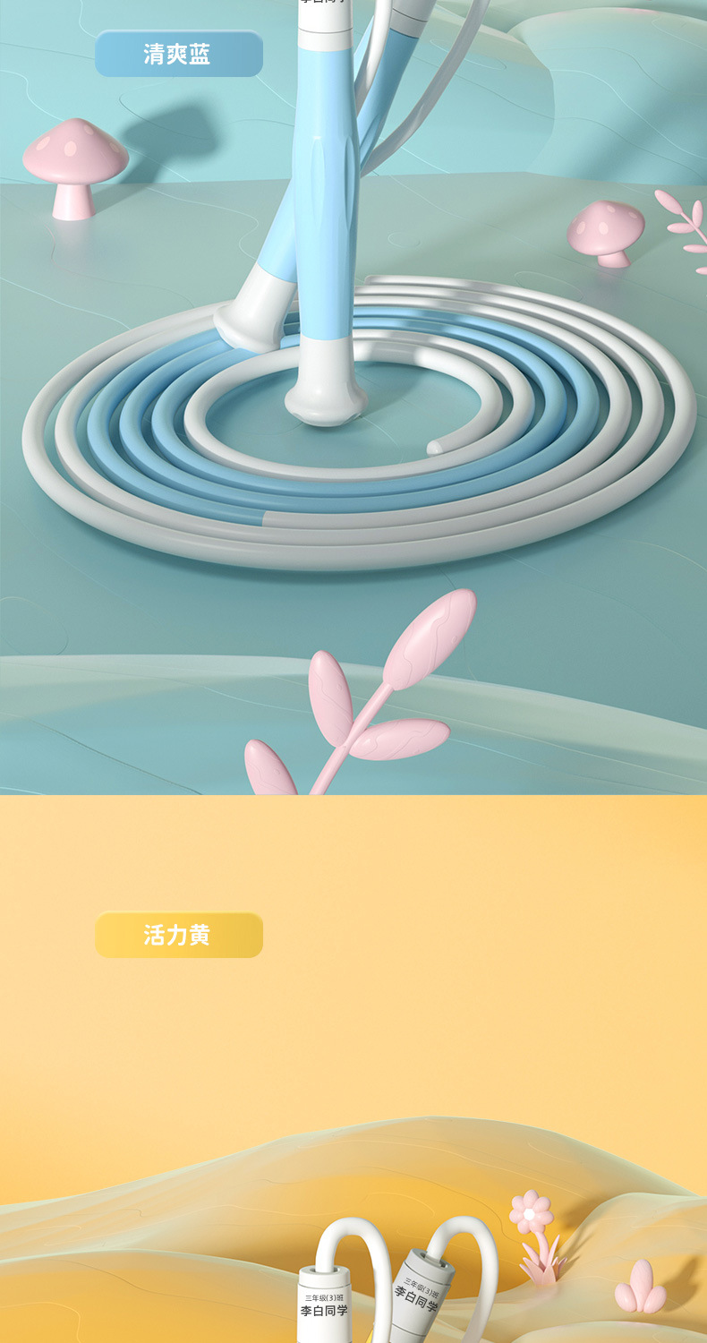 「防丢失名字贴款」儿童跳绳小学幼儿园一年级中考用可调节小孩沙式跳绳子体育用品